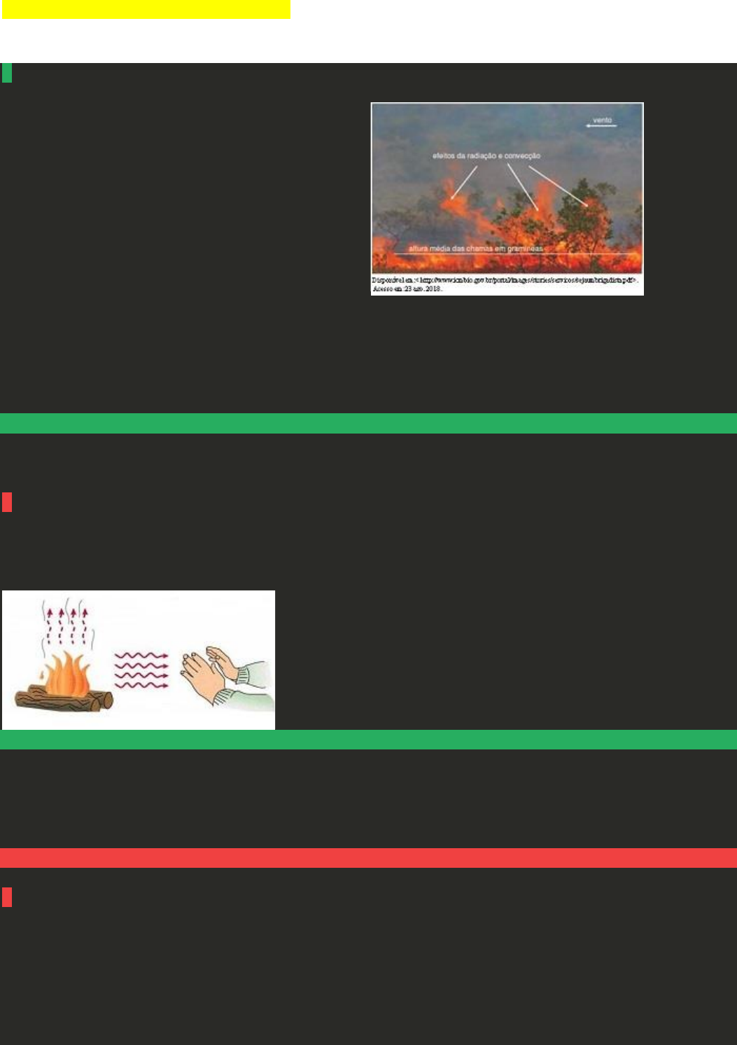Combate a Sinistros - Prevenção / Avaliação I – parte 2 6A figura anexa apresenta a visão do comportamento de uma frente de fogo mostrando os efeitos da radiação e convecção no desenvolvimento de um incêndio florestal. Com relação à transferência de calor por radiação, assinale a alternativa CORRETA: A Na transmissão de calor por radiação, o ar quente e os gases liberados pela combustão tendem a se elevar por sua menor densidade com relação ao ar frio. B Na transmissão de calor por radiação, o calor é transmitido por meio de substâncias condutoras, por ondas e em todas as direções. C Na transmissão de calor por radiação, o calor é transmitido em ondas e em todas as direções. D Na transmissão de calor por radiação, o calor é transmitido por meio de substâncias condutoras. 7É preciso conhecer os processos de transferência de calor para agir da melhor forma em um combate a incêndio. A transferência de calor é um dos responsáveis pelo alastramento do fogo em um incêndio. A transmissão de calor pode correr por condução, convecção e radiação. Analisando a figura em anexo, quais são as formas de transmissão representadas pelas setas? FONTE DA IMAGEM: http://refrimaq.org/wp-content/uploads/2014/10/irradiacao50.jpg. Acesso em: 20 nov. 2016. A Radiação. B Convecção e condução. C Condução. D Condução e radiação. 8Objetos com maior temperatura tendem a transferir calor para aqueles com menor temperatura, promovendo o equilíbrio térmico. Existem materiais que necessitam de pouco calor para que ocorra a combustão e este processo de transferência de calor poderá causar o surgimento do fogo. A transferência de calor de um corpo para outro pode ocorrer por condução, convecção e radiação. Com base nesses processos de transferência de calor, classifique V para as sentenças verdadeiras e F para as falsas: ( ) Para a propagação de calor por condução, são necessários matéria e contato. ( ) A convecção é a transmissão de calor pelo deslocamento de fluidos (gases ou líquidos). ( ) Na radiação, as ondas de calor propagam-se em todas as direções através do espaço vazio. ( ) Convecção e radiação são processos de transferência de calor que não necessitam de contato. Assinale a alternativa que apresenta a sequência CORRETA: A V - V - V - F. B F - F - V - V. C F - V - V - V. D F - V - F - F. 9Para a extinção do fogo, é necessário romper um dos pilares que o sustenta. Existem quatro mecanismos de extinção: a retirada do material combustível, o resfriamento, o abafamento e o rompimento da reação em cadeia, cada qual com suas características. Sobre esses métodos, analise as sentenças a seguir: I- Na técnica de extinção do fogo através de resfriamento, pode-se utilizar água ou ventilação tática, por exemplo. II- No abafamento, o objetivo é eliminar a reação em cadeia, um dos pilares do tetraedro do fogo. III- A salvatagem é um método utilizado com a finalidade de resguardar os materiais que ainda não foram atingidos pelo fogo. IV- Para que ocorra o rompimento de uma reação em cadeia, é necessário utilizar substâncias capazes de neutralizar a reação entre o comburente e o combustível. Assinale a alternativa CORRETA: A As sentenças I, II e IV estão corretas. B As sentenças I, II e III estão corretas. C Somente a sentença II está correta. D As sentenças I, III e IV estão corretas. 10A eficiência no combate ao incêndio depende muito do conhecimento da fase em que o incêndio se encontra. Diante do reconhecimento de cada fase,o incêndio pode ser combatido com as técnicas e as ferramentas apropriadas. Sobre as fases do incêndio e suas principais características, associe os itens, utilizando o código a seguir: I- Fase inicial. II- Fase crescente. III- Fase totalmente desenvolvida. IV- Fase final. ( ) Aumento exponencial da temperatura; diminuição da quantidade de oxigênio; chamas se propagando para os materiais próximos. ( ) Grandes diferenças de temperatura entre o teto e o piso; oxigênio restrito e diminuindo; generalização do incêndio. ( ) Temperatura muito alta, diminuindo lentamente; baixa concentração de oxigênio; diminuição das chamas. ( ) Temperatura ambiente, oxigênio em abundância, chamas restritas ao foco inicial. Assinale a alternativa que apresenta a sequência CORRETA: A IV - III - II - I. B II - III - IV - I. C II - III - I - IV. D I - III - II - IV.