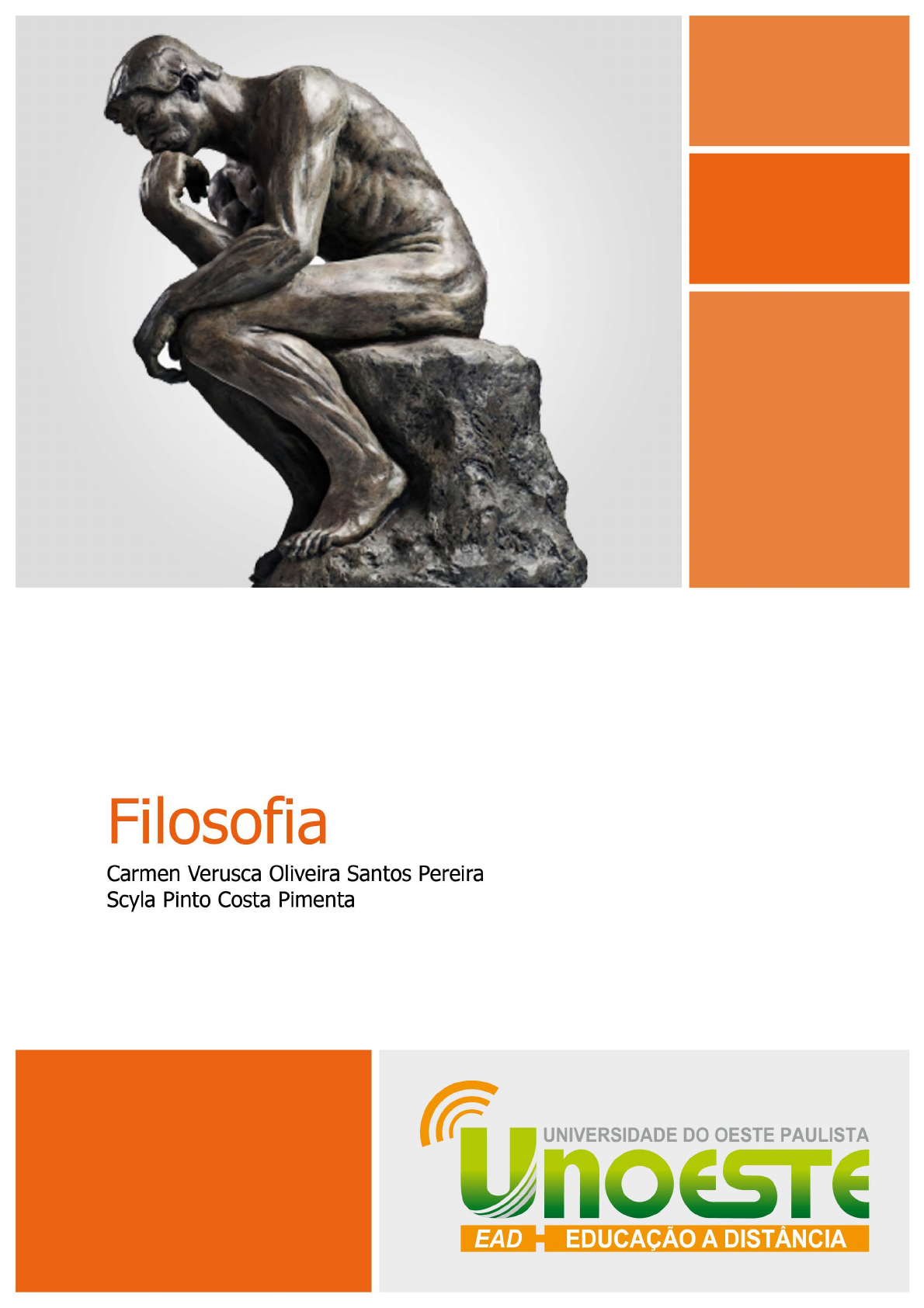 Filosofia Scyla Pinto Costa Pimenta Carmen Verusca Oliveira Santos Pereira Presidente Prudente Unoeste - Universidade do Oeste Paulista 2016 Pimenta, Scyla Pinto Costa. Filosofia. / Scyla Pinto Costa Pimenta, Carmem Verusca Oliveira Santos Pereira. - Presidente Prudente: Unoeste - Universidade do Oeste Paulista, 2016. 142 p.: il. Bibliografia. ISBN: 978-85-88755-09-3 1. Filosofia. 2. Organização. 3. Verdade. I. Pereira, Carmem Verusca Oliveira Santos. II. Título. CDD\22ª.ed 100 © Copyright 2016 Unoeste - Todos os direitos reservados Nenhuma parte desta publicação poderá ser reproduzida ou transmitida de qualquer modo ou por qualquer outro meio, eletrônico ou mecânico, incluindo fotocópia, gravação ou qualquer outro tipo de sistema de armazenamento e transmissão de informação, sem prévia autorização, por escrito, da Universidade do Oeste Paulista. Filosofia Scyla Pinto Costa Pimenta Carmem Verusca Oliveira Santos Pereira Reitora: Ana Cristina de Oliveira Lima Vice-Reitor: Brunno de Oliveira Lima Aneas Pró-Reitor Acadêmico: José Eduardo Creste Pró-Reitor Administrativo: Guilherme de Oliveira Lima Carapeba Pró-Reitor de Pesquisa, Pós-Graduação e Extensão: Adilson Eduardo Guelfi Diretor Geral: Augusto Cesar de Oliveira Lima Núcleo de Educação a Distância: Dayene Miralha de Carvalho Sano, Marcelo Vinícius Creres Rosa, Maria Eliza Nigro Jorge, Mário Augusto Pazoti e Sonia Sanae Sato Coordenação Tecnológica e de Produção: Mário Augusto Pazoti Projeto Gráfico: Luciana da Mata Crema Diagramação: Aline Miyamura Takehana e Luciana da Mata Crema Ilustração e Arte: Antônio Sérgio Alves de Oliveira, Fernanda Sutkus de Oliveira Mello e Luciana da Mata Crema Revisão: Renata Rodrigues dos Santos Colaboração: Vanessa Nogueira Bocal Direitos exclusivos cedidos à Associação Prudentina de Educação e Cultura (APEC), mantenerora da Universidade do Oeste Paulista Rua José Bongiovani, 700 - Cidade Universitária CEP: 19050-920 - Presidente Prudente - SP (18) 3229-3260 | www.eadunoeste.com.br P644f Catalogação na fonte: Rede de Bibliotecas Unoeste Scyla Pinto Costa Pimenta Mestre em Ciências Sociais pela Universidade Federal da Bahia (2008). Possui licen- ciatura em Filosofia pela Universidade Católica do Salvador (1996) e bacharelado em Sociologia pela Universidade Federal da Bahia (2002), onde foi bolsista do CNPQ/PIBIC, pelo ECSAS (Núcleo de Estudos em Ciências Sociais e Saúde). Atua como professora temporária da Universidade Federal do Vale do Rio São Francisco (UNIVASF). Carmen Verusca Oliveira Santos Pereira Bacharel em Filosofia pela Universidade Católica do Salvador (1998), especialista em Gestão Governamental pela Universidade do Estado da Bahia (2005). Atualmente, presta consultoria ao Serviço de Apoio às Micro e Pequenas Empresas (Sebrae), nos estados da Bahia e Sergipe, na área de promoção comercial, organização de feiras, eventos nacio- nais e internacionais. Sobre as autoras Carta ao aluno O ensino passa por diversas e constantes transformações. São mudanças importantes e necessárias frente aos avanços da sociedade na qual está inserido. A Educação a Distância (EAD) é uma das alternativas de estudo, que ganha cada vez mais espaço, por comprovadamente garantir bons referenciais de qualidade na formação pro- fissional. Nesse processo, o aluno também é agente, pois organiza o seu tempo confor- me suas atividades e disponibilidade. Maior universidade do oeste paulista, a Unoeste forma milhares de profissio- nais todos os anos, nas várias áreas do conhecimento. São 40 anos de história, sendo responsável pelo amadurecimento e crescimento de diferentes gerações. É com esse mesmo compromisso e seriedade que a instituição iniciou seus trabalhos na EAD em 2000, primeiramente com a oferta de cursos de extensão. Hoje, a estrutura do Nead (Núcleo de Educação a Distância) disponibiliza totais condições para você obter os co- nhecimentos na sua área de interesse. Toda a infraestrutura, corpo docente titulado e materiais disponibilizados nessa modalidade favorecem a formação em plenitude. E o mercado precisa e busca sempre profissionais capacitados e que estejam antenados às novas tecnologias. Agradecemos a confiança e escolha pela Unoeste e estamos certos de que suas expectativas serão atendidas, pois você está em uma universidade reconhecida pelo MEC, que oportuniza o desenvolvimento constante de Ensino, Pesquisa e Extensão. Aqui, além de graduação, existe pós-graduação lato e stricto sensu, com mestrados e doutorado recomendados pela Capes (Coordenação de Aperfeiçoamento de Pessoal de Nível Superior), prêmios conquistados em âmbito nacional por suas ações extensivas e pesquisas que colaboram com o desenvolvimento da cidade, região, estado e país; en- fim, são inúmeros os referenciais de qualidade. Com o fortalecimento da EAD, a Unoeste reforça ainda mais a sua missão que é “desenvolver a educação num ambiente inovador e crítico-reflexivo, pelo exercício das atividades de Ensino, Pesquisa e Extensão nas diversas áreas do conhecimento cien- tífico, humanístico e tecnológico, contribuindo para a formação de profissionais cidadãos comprometidos com a responsabilidade social e ambiental”. Seja bem-vindo e tenha bons estudos! Reitoria Sumário Capítulo 1 A FilosoFiA e umA NovA leiturA do muNdo Um Novo Olhar sobre o Mundo .....................................................................................12 Filosofia – Atitude e Reflexão ........................................................................................22 O Nascimento da Filosofia .............................................................................................26 Um Rápido Olhar sobre os Clássicos ..............................................................................30 Os Sofistas ..........................................................................................