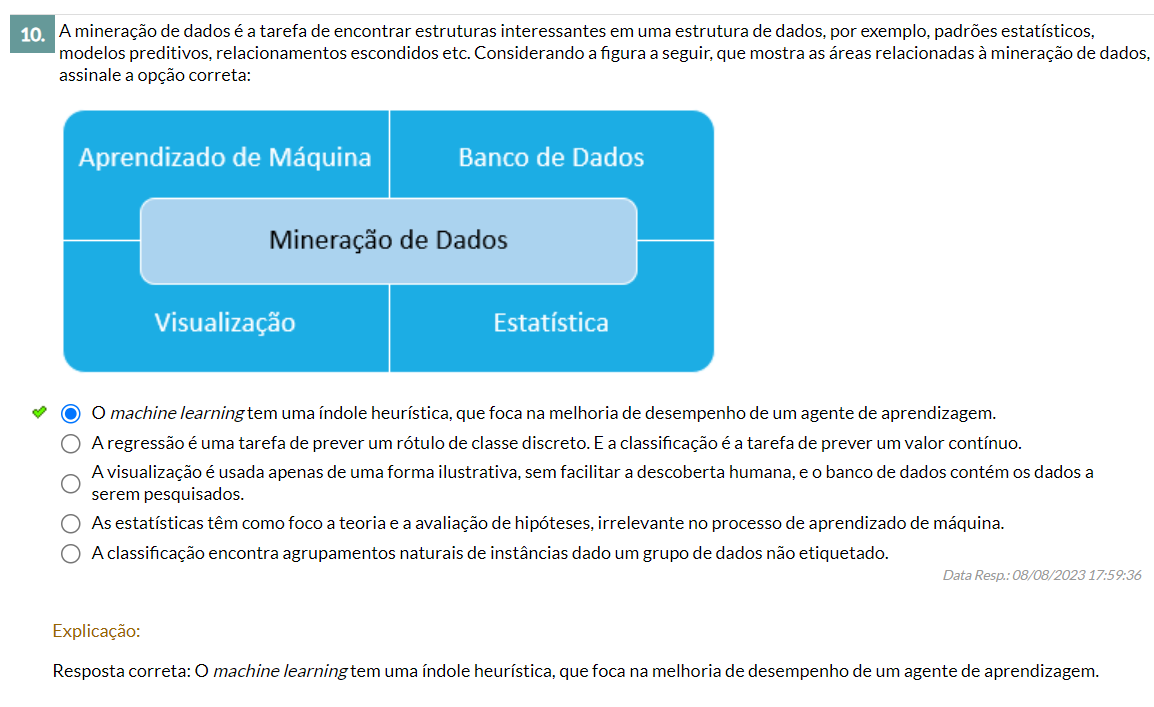 A mineração de dados é a tarefa de encontrar estruturas interessantes em uma estrutura de dados, por exemplo, padrões estatísticos, modelos preditivos, relacionamentos escondidos etc. Considerando a f
