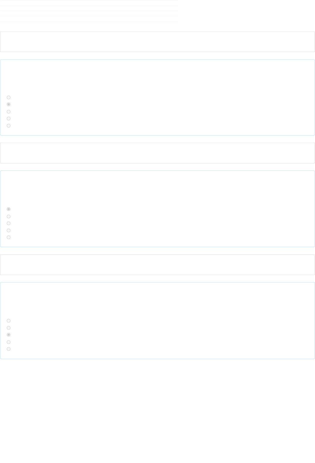 niciado em quarta, 31 mai 2023, 20:40 Estado Finalizada Concluída em quarta, 31 mai 2023, 20:53 Tempo empregado 12 minutos 37 segundos Avaliar 2,00 de um máximo de 2,00(100%) Questão 1 Correto Atingiu 0,20 de 0,20 Sabendo que a Gerência Projeto é dividida em várias áreas assinale a alternativa correta conforme a frase em destaque: “É a definição e controle do que considerar ou não no projeto.”. Escolha uma opção: a. Tempo. b. Escopo. c. Planejamento. d. Objetivo. e. Custos. Questão 2 Correto Atingiu 0,20 de 0,20 Sabendo que dentro dos Projetos podemos separar o pessoal em quatro grupos, assinale a alternativa em que representa o grupo correto para a afirmação em destaque: “Dá suporte ao desenvolvimento do projeto.”. Escolha uma opção: a. Pessoal de Apoio. b. Executores. c. Patrocinadores. d. Assessores. e. Gerência. Questão 3 Correto Atingiu 0,20 de 0,20 Sabendo que a Gerência Projeto é dividida em várias áreas assinale a alternativa correta conforme a frase em destaque: “São probabilidades de que ocorra algo que não foi desejado ou seja, que saia do planejamento.”. Escolha uma opção: a. Comunicação. b. Custos. c. Riscos. d. RH. e. Qualidade. Questão 4 Correto Atingiu 0,20 de 0,20 Quando falamos de comunicação, aprendemos a importância para o sucesso do projeto em que as mensagens seja recebidas com clareza. Dentro da gerencia de comunicações necessitamos de um planejamento prévio para que não haja problemas no projeto, segundo o PMI e Molinari (2010) devemos seguir alguns processos. Assinale a Alternativa correta que representa o processo conforme a afirmação em destaque: “Disponibilizar as informações necessárias dos stakeholders do projeto na forma adequada.”. Escolha uma opção: a. Relato de desempenho. b. Planejamento de comunicações. c. Distribuir informação. d. Término administrativo. e. Controlar comunicações. Questão 5 Correto Atingiu 0,20 de 0,20 Determinar o Fluxo de Caixa (VPL), para uma taxa efetiva de 10% ao ano no regime de juros composto. Ano Valor (RS) 0 (10.000,00) 1 2.000,00 2 1.000,00 3 5.000,00 4 4.000,00 5 2.000,00 Escolha uma opção: a. R$ 375,10. b. R$ 12.375,10. c. R$ 15.000,00. d. R$ 12.000,00. e. R$ 10.375,10. Questão 6 Correto Atingiu 0,20 de 0,20 O ______________ é vital para que o sucesso de qualquer projeto, estando destinado ao ____________ aqueles que não tiverem um bom_______________ dentro de suas ações. Assinale a alternativa que preenche a lacuna corretamente. Escolha uma opção: a. Objetivo, fracasso e objetivo. b. Planejamento, fracasso e planejamento. c. Objetivo, sucesso e planejamento. d. Planejamento, sucesso e planejamento. e. Objetivo, fracasso e planejamento. Questão 7 Correto Atingiu 0,20 de 0,20 Quando falamos de comunicação, aprendemos a importância para o sucesso do projeto em que as mensagens seja recebidas com clareza. Dentro da gerencia de comunicações necessitamos de um planejamento prévio para que não haja problemas no projeto, segundo o PMI e Molinari (2010) devemos seguir alguns processos. Assinale a Alternativa correta que representa o processo conforme a afirmação em destaque: “Coleção e disseminação de informação de desempenho. Isso inclui relatório de situação, medição de progresso e previsões.”. Escolha uma opção: a. Relato de desempenho. b. Distribuir informação. c. Planejamento de comunicações. d. Término administrativo. e. Controlar comunicações. Questão 8 Correto Atingiu 0,20 de 0,20 O planejamento tem uma hierarquia, na qual está baseada nos objetivos principais, ao topo da pirâmide encontramos o __________, seguido por _________, ____________ e ___________. Escolha uma opção: a. Operacionais, estratégicas, táticas e objetivo principal. b. Estratégicas, objetivo principal, táticas e operacionais. c. Objetivo Principal, estratégicas, táticas e operacionais. d. Objetivo principal, táticas, estratégicas e operacionais. e. Objetivo principal, estratégicas, operacionais e táticas. Questão 9 Correto Atingiu 0,20 de 0,20 Kerzner nos traz as fases do planejamento, conforme a frase destacada assinale a alternativa correta: “Uma meta, alvo ou quota a ser atingida em um determinado tempo.”. Escolha uma opção: a. Programa. b. Cronograma. c. Organização. d. Objetivo. e. Previsão. Questão 10 Correto Atingiu 0,20 de 0,20 A frase abaixo se refere a qual termo de projetos: “Antes de iniciar o projeto deve ser estabelecido todos os parâmetros, como pessoas envolvidas, custo total, tempo de execução, material necessário, equipamentos entre outros.”. Escolha uma opção: a. Objetivo Definido. b. Sequência Clara. c. Início, Meio e Fim. d. Parâmetros Definidos. e. Empreendimento único.