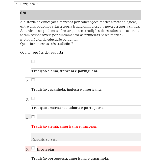 1. Tradição francesa e portuguesa. 2. Tradição espanhola, inglesa e americana. 3. Tradição americana e portuguesa. 4. Tradição americana e francesa.