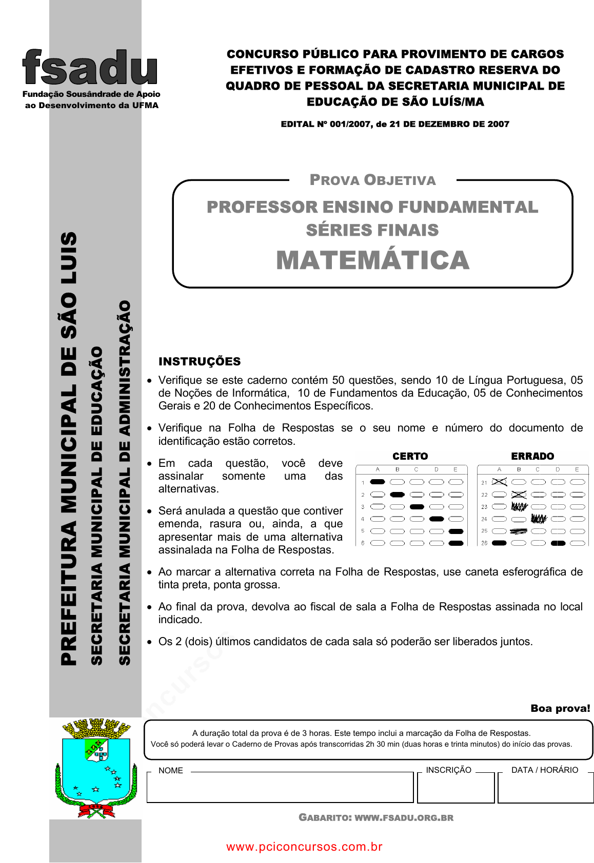 Concurso Público para Prefeitura Municipal de São Luís Professor EF - Séries Finais - Matemática