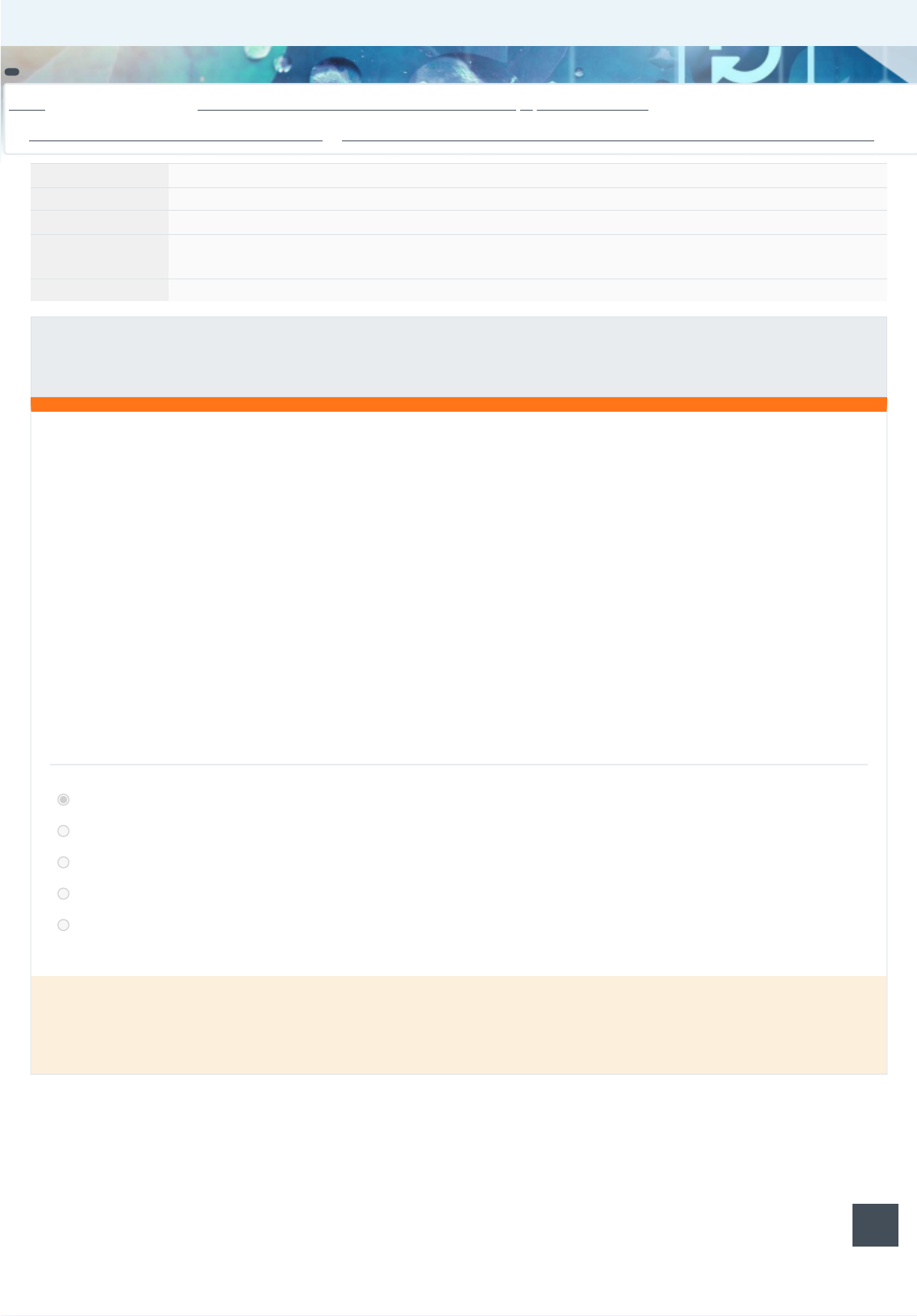 Iniciado em terça, 15 ago 2023, 12:16 Estado Finalizada Concluída em terça, 15 ago 2023, 12:50 Tempo empregado 34 minutos 31 segundos Avaliar 0,45 de um máximo de 0,50(90%) Questão 1 Correto Atingiu 0,05 de 0,05 A química é o ramo da ciência que estuda a composição, a estrutura e a interação da matéria e os princípios químicos são fundamentais nos mais diversos segmentos de nossas vidas, não apenas em questões científicas. Usando a massa atômica e a massa molar, podemos calcular a massa em gramas de um único átomo de carbono-12. Analise as assertivas a seguir a respeito da massa molar: I. Esta unidade de medida é tão grande, que seu uso compensa os valores de massas atômicas tão baixas; II. No sistema internacional, o mol foi definido como a sétima grandeza de base para caracterizar quantidade de matéria; III. Um mol é a quantidade de uma substância que contém tantas partículas quanto há átomos em exatamente 12 g do isótopo carbono 12; IV. Se convertermos a constante em quilômetros e transformarmos o resultado em anos-luz, ela equivaleria a cerca de 63,6 milhões de anos-luz. Assinale a alternativa correta: a. Apenas I, II e III estão corretas. b. Apenas III está correta. c. Apenas I e II estão corretas. d. Apenas I e III estão corretas. e. Apenas I e IV estão corretas. Sua resposta está correta. A resposta correta é: Apenas I, II e III estão corretas. Painel / Minhas Disciplinas / TECNOLOGIA EM GESTÃO AMBIENTAL EAD-disc. 5.2(23)- QUÍMICA GERAL / ATIVIDADE DE ESTUDO 02 - VALOR 0,5 PONTOS / CLIQUE AQUI PARA REALIZAR A ATIVIDADE DE ESTUDO 02 - PRAZO FINAL: 03/09/2023 https://www.eadunifatecie.com.br/course/view.php?id=19972 https://www.eadunifatecie.com.br/my/ https://www.eadunifatecie.com.br/course/view.php?id=19972 https://www.eadunifatecie.com.br/course/view.php?id=19972#section-7 https://www.eadunifatecie.com.br/mod/quiz/view.php?id=635397 Questão 2 Correto Atingiu 0,05 de 0,05 Se um sistema químico está em equilíbrio e se juntarmos ao sistema uma substância, um reagente ou um produto, o sistema reage no sentido de restabelecer o equilíbrio, consumindo parte da substância adicionada. Se houver remoção de substâncias, a reação avança no sentido de formar a substância removida. Assinale a alternativa correta que indique como é conhecido esse fenômeno: a. Princípio de Mol. b. Princípio de Le Chatelier. c. Princípio da massa molecular. d. Princípio das reações diretas. e. Princípio do reagente químico. Sua resposta está correta. A resposta correta é: Princípio de Le Chatelier. Questão 3 Correto Atingiu 0,05 de 0,05 Questão 4 Correto Atingiu 0,05 de 0,05 De acordo com os conteúdos abordados na disciplina, analise as assertivas a seguir: I. A Conferência Geral de Pesos e Medidas, autoridade internacional em unidades, propôs um sistema métrico revisto denominado Sistema Internacional de Unidades; II. Massa é uma medida da quantidade de matéria em um objeto. Os termos “massa” e “peso” são utilizados indistintamente, embora, estritamente falando, se refiram a grandezas diferentes; III. Volume é o comprimento (m) elevado ao cubo, assim a unidade SI correspondente é o metro cúbico (m ); IV. Densidade é a massa de um objeto dividida pelo seu volume. Assinale a alternativa que corresponde a resposta correta. a. Apenas I e IV estão corretas. b. Apenas IV está correta. c. Todas as alternativas estão corretas. d. Apenas I e II estão corretas. e. Todas as alternativas estão incorretas. 3 Sua resposta está correta. A resposta correta é: Todas as alternativas estão corretas. Assinale a alternativa que indica o nome dado a relação entre a quantidade de reagentes químicos e produtos. a. Balanceamento químico. b. Coeficiente da reação química. c. Fórmula estrutural química. d. Estequiometria da reação química. e. Proporção da reação química. Sua resposta está correta. A resposta correta é: Estequiometria da reação química. Questão 5 Incorreto Atingiu 0,00 de 0,05 Na opinião de Fonseca (2004) com exceção dos casos em que todos os números são inteiros (por exemplo quando se conta o número de alunos em uma sala de aula), muitas vezes é impossível obter o valor exato da quantidade em estudo. Por isso, é importante apontar a margem de erro em uma medida indicando claramente o número de algarismos significativos, ou seja, os dígitos que tem significado em uma quantidade medida ou calculada. I. Qualquer numeral diferente de zero é significativo. O algarismo zero entre dígitos diferentes de zero são considerados significativos; II. O zero quando localizado à esquerda do primeiro dígito diferente de zero não são significativos. A função deles é indicar a posição da vírgula decimal; III. Se um numeral for superior a 1, todos os zeros à direita da vírgula contam como algarismos significativos; IV. Para os numerais que não possuem vírgulas, os zeros finais (isto é, os zeros que estão depois do último dígito diferente de zero) podem ou não ser significativos. Analise as assertivas a seguir. Em atividades de cunho científico, devemos nos atentar para escrever o número correto de algarismos significativos. Em geral, é bastante fácil determiná-lo levando em consideração algumas regras. Assinale a alternativa que indique as respectivas regras. a. Apenas II e IV estão corretas. b. Todas as alternativas estão corretas. c. Apenas II e III estão corretas. d. Todas as alternativas estão incorretas. e. Apenas I e II estão corretas. Sua resposta está incorreta. A resposta correta é: Todas as alternativas estão corretas. Questão 6 Correto Atingiu 0,05 de 0,05 A respeito da alteração da concentração de reagentes ou de produtos, analise as assertivas a seguir: I. Um sistema em equilíbrio encontra-se em estado dinâmico; II. As reações diretas e inversas ocorrem com velocidades iguais, e o sistema está em equilíbrio dinâmico; III. Para amenizar uma poss