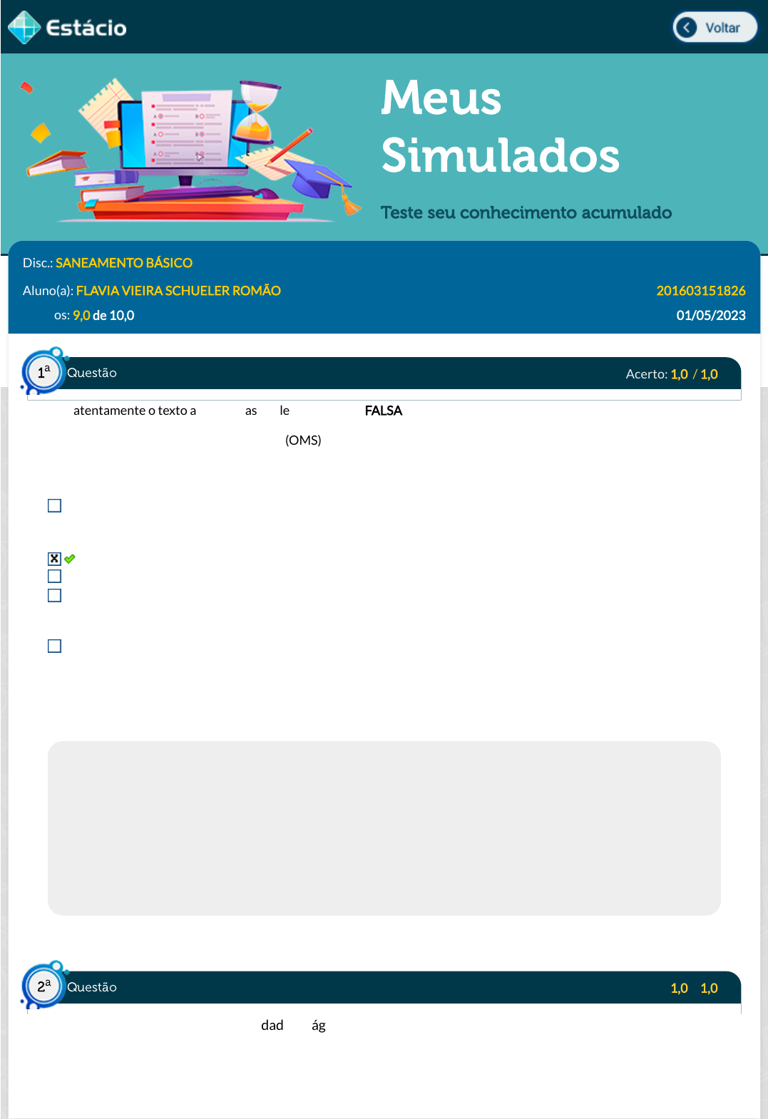 Aluno(a): FLAVIA VIEIRA SCHUELER ROMÃO 201603151826