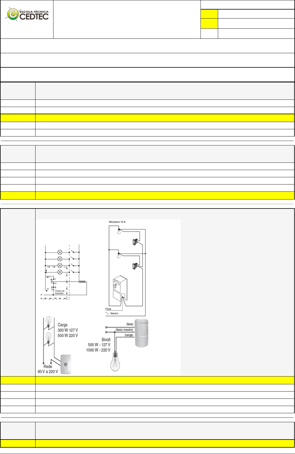 Pincel Atômico - 18/08/2023 23:34:05 1/2 TARCISIO SOUZA DA SILVA Exercício Caminho do Conhecimento - Etapa 4 (26232) Atividade finalizada em 14/02/2023 20:00:08 (628448 / 2) LEGENDA Resposta correta na questão # Resposta correta - Questão Anulada X Resposta selecionada pelo Aluno Disciplina: AUTOMAÇÃO ELÉTRICA [433370] - Avaliação com 4 questões, com o peso total de 4,33 pontos [capítulos - 112] Turma: Curso Técnico: Eletrotécnica - Grupo: JANEIRO/22 PRES - N.ELET.Jan.22 [64344] Aluno(a): 91153894 - TARCISIO SOUZA DA SILVA - Respondeu 4 questões corretas, obtendo um total de 4,33 pontos como nota [350019_180098] Questão 001 O dispositivo de proteção que se constitui de um condutor que funde, interrompendo a corrente, toda vez que ela ultrapassa a intensidade para a qual foi dimensionada é chamado de: Contator Dispositivo DR X Fusível Disjuntor Interruptor [350019_180097] Questão 002 O transdutor que converte variação de temperatura em variação de tensão é o: Sensor capacitivo Pressostato PTC NTC. X Termopar [350018_180101] Questão 003 Em prédios residenciais e comerciais são utilizados dispositivos elétricos que acionam, automaticamente, circuito de serviço visando economia de energia e custo para o usuário. As figuras a seguir mostram os diagramas de minuteria e um sensor de presença. X Detectar movimento de pessoas e veículos, acionando lâmpadas para iluminar ambientes. Embutir apenas em parede. Ser alimentado por fonte de corrente contínua. Acionar lâmpadas ligadas em série conforme mostrado na figura. Embutir apenas em teto ou telhado. [350018_180103] Questão 004 Os indicadores luminosos e sonoros, e os solenoides aplicados no acionamento eletromagnético de válvulas hidráulicas e pneumáticas são caracterizados como: X Elementos de Saída de Sinais Elétricos. Pincel Atômico - 18/08/2023 23:34:05 2/2 Elementos automáticos. Elementos de Entrada de Sinais. Elementos de Processamento de Sinais Elementos pneumáticos.