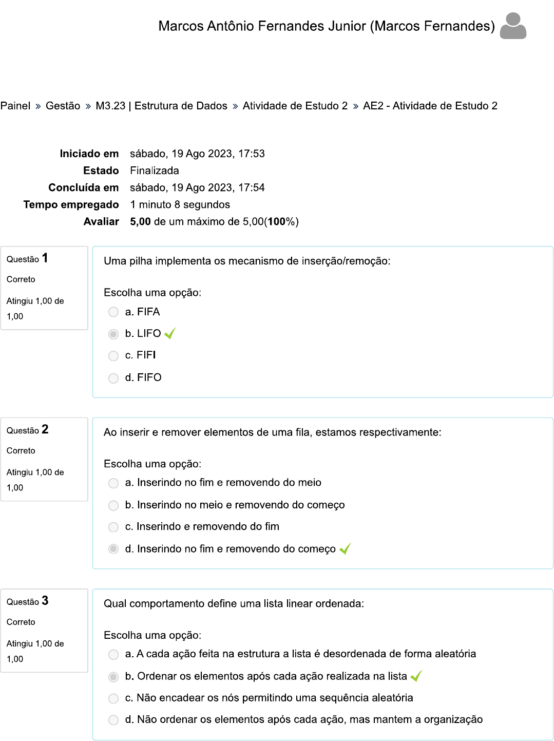 UNIMAR EAD - Estrutura de Dados - Atividade de Estudo 2