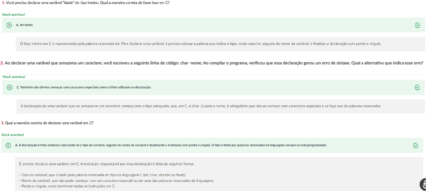 Questão 4 Respondida Variáveis são usadas para armazenar dados na memória de trabalho e que esses dados podem ser de diferentes tipos (inteiro, dec...