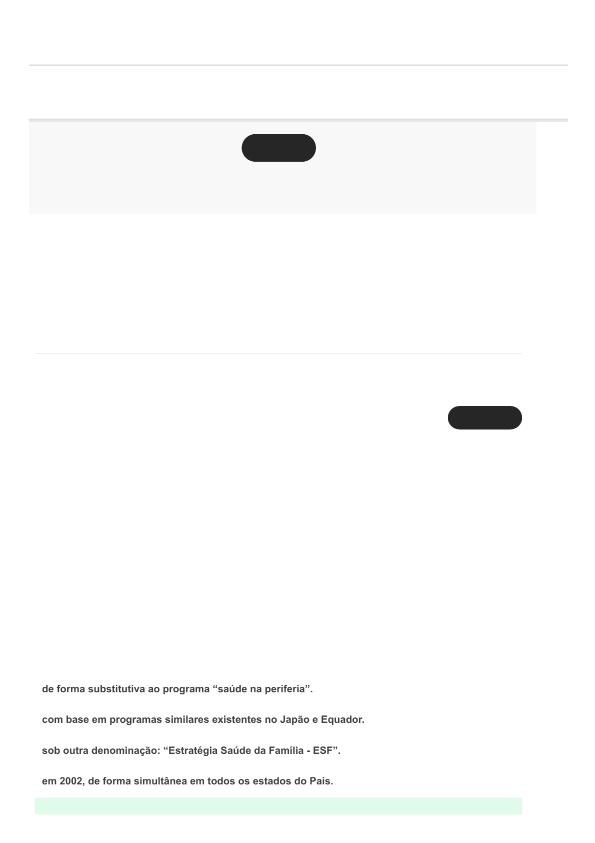 20/07/2021 Comentários https://sereduc.blackboard.com/ultra/courses/_58993_1/outline/assessment/_3825437_1/overview/attempt/_13395011_1/review/inline-feedback?… 1/8 Conteúdo do exercício Ocultar opções de resposta Avaliação On-Line 4 (AOL 4) - Questionário Margarida de Lourdes Melo Nelson dos Santos Maia Pergunta 1 -- /1 Leia o trecho do texto a seguir: “O Programa Saúde da Família (PSF) surge no Brasil como uma estratégia de reorientação do modelo assistencial a partir da atenção básica, em conformidade com os princípios do SUS. O PSF se apresenta como uma nova maneira de trabalhar a saúde, tendo a família como centro de atenção, e não somente o indivíduo doente.” Fonte: ROSA, W. A. G. Programa saúde da família: a construção de um novo modelo de assistência. Rev. Latino-Am. Enfermagem, v. 13, n. 6, p. 1027-34, nov/dez. 2005. Considerando essas informações e o conteúdo estudado sobre o PSF, pode-se afirmar que a criação e a implantação deste no território brasileiro aconteceu: de forma substitutiva ao programa “saúde na periferia”. com base em programas similares existentes no Japão e Equador. sob outra denominação: “Estratégia Saúde da Família - ESF”. em 2002, de forma simultânea em todos os estados do País. 10/10 Nota final Enviado: 20/07/21 16:03 (BRT) 20/07/2021 Comentários https://sereduc.blackboard.com/ultra/courses/_58993_1/outline/assessment/_3825437_1/overview/attempt/_13395011_1/review/inline-feedback?… 2/8 Ocultar opções de resposta Resposta corretasob grandes desafios, já que este era um programa sem precedentes no Brasil. Pergunta 2 -- /1 Leia o trecho a seguir: “A Estratégia Saúde da Família (ESF) é considerada um modelo de atenção à saúde, ou seja, um modo de organizar as ações e de dispor os meios técnico-científicos para intervir sobre os problemas e necessidades de saúde. A ESF tem a capacidade de orientar a organização do sistema de saúde, buscar respostas para as necessidades de saúde da população e contribuir na mudança do modelo assistencial vigente.” Fonte: ARANTES, L. J. et al. Contribuições e desafios da Estratégia Saúde da Família na Atenção Primária à Saúde no Brasil: revisão da literatura. Ciênc. Saúde Coletiva, Rio de Janeiro, v. 21, n. 5, p. 1499-1510, maio 2016. Considerando essas informações e o conteúdo estudado sobre a ESF, analise as asserções a seguir e a relação proposta entre elas. I. O estabelecimento de responsabilidades mútuas é fundamental na Estratégia Saúde da Família. Porque: II. Serve como guia para as equipes de trabalho em todo o país, evitando, desse modo, que algumas atividades sejam realizadas e outras não. A seguir, assinale a alternativa correta: As asserções I e II são proposições falsas. As asserções I e II são proposições verdadeiras, mas a II não é uma justificativa correta da I. Resposta correta As asserções I e II são proposições verdadeiras, e a II é uma justificativa correta da I. A asserção I é uma proposição verdadeira, e a II é uma proposição. A asserção I é uma proposição falsa, a II é uma proposição verdadeira. Pergunta 3 -- /1 20/07/2021 Comentários https://sereduc.blackboard.com/ultra/courses/_58993_1/outline/assessment/_3825437_1/overview/attempt/_13395011_1/review/inline-feedback?… 3/8 Ocultar opções de resposta Leia o excerto a seguir: “A equipe de saúde da família deve conhecer as famílias do território de abrangência, identificar os problemas de saúde e as situações de risco existentes na comunidade, elaborar um plano e uma programação de atividades para enfrentar os determinantes do processo saúde/doença, desenvolver ações educativas e intersetoriais relacionadas com os problemas de saúde identificados e prestar assistência integral às famílias sob sua responsabilidade no âmbito da atenção básica.” Fonte: SILVA, I. Z. Q. J. et al. O trabalho em equipe no PSF: investigando a articulação técnica e a interação entre os profissionais. Comunic., Saúde, Educ., v. 9, n.16, p. 25-38, set. 2004/fev. 2005. A população assistida por cada equipe da ESF deve respeitar um número máximo de pessoas, mas cabe ressaltar que podem existir exceções, levando em consideração as características da comunidade, seus riscos e vulnerabilidades. Considerando essas informações e o conteúdo estudado a respeito da ESF, pode-se afirmar que, de modo geral, cada equipe deve ser responsável por, no máximo: Resposta correta4 mil pessoas. mil pessoas. 500 pessoas. 10 mil pessoas. 6 mil pessoas. Pergunta 4 -- /1 Leia o excerto a seguir: “O Núcleo Ampliado de Saúde da Família (NASF) atua de maneira integrada para dar suporte aos profissionais das equipes de Saúde da Família (ESF) e da Atenção Básica (AB) a partir dos problemas, demandas e necessidades de saúde dos grupos sociais em seus territórios.” Fonte: SILVA, N. C. et al. Community health agent: environmental issues and promoting health in riverside communities. Trab. Educ. Saúde, Rio de Janeiro, v. 11, n. 1, p. 113-128, abr. 2013. Considerando essas informações e o conteúdo estudado sobre as áreas dos problemas identificados pelo NASF, analise as afirmativas a seguir. I. A área escolar é assistida pelo NASF. II. A área ambiental é assistida pelo NASF. III. A área sanitária é assistida pelo NASF. IV. A área de segurança/criminalidade é assistida pelo NASF. Está correto apenas o que se afirma em: 20/07/2021 Comentários https://sereduc.blackboard.com/ultra/courses/_58993_1/outline/assessment/_3825437_1/overview/attempt/_13395011_1/review/inline-feedback?… 4/8 Ocultar opções de resposta Ocultar opções de resposta Resposta corretaII e III. I, II e IV. I e II. I e IV. III e IV. Pergunta 5 -- /1 Leia o excerto a seguir: “Desde sua criação em 1994, o Programa Saúde Família (PSF) gradualmente foi se tornando a principal estratégia para a ampliação do acesso de pri