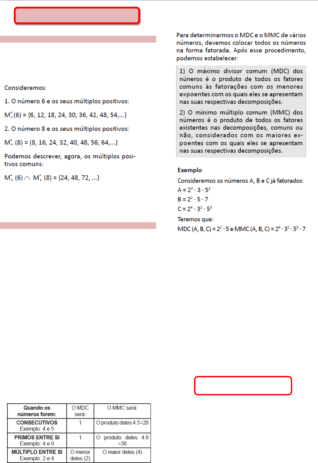 Considerando-se vários números naturais, eles possuem uma infinidade de múltiplos comuns e o menor deles é denominado mínimo múltiplo comum (o zero está excluído).
