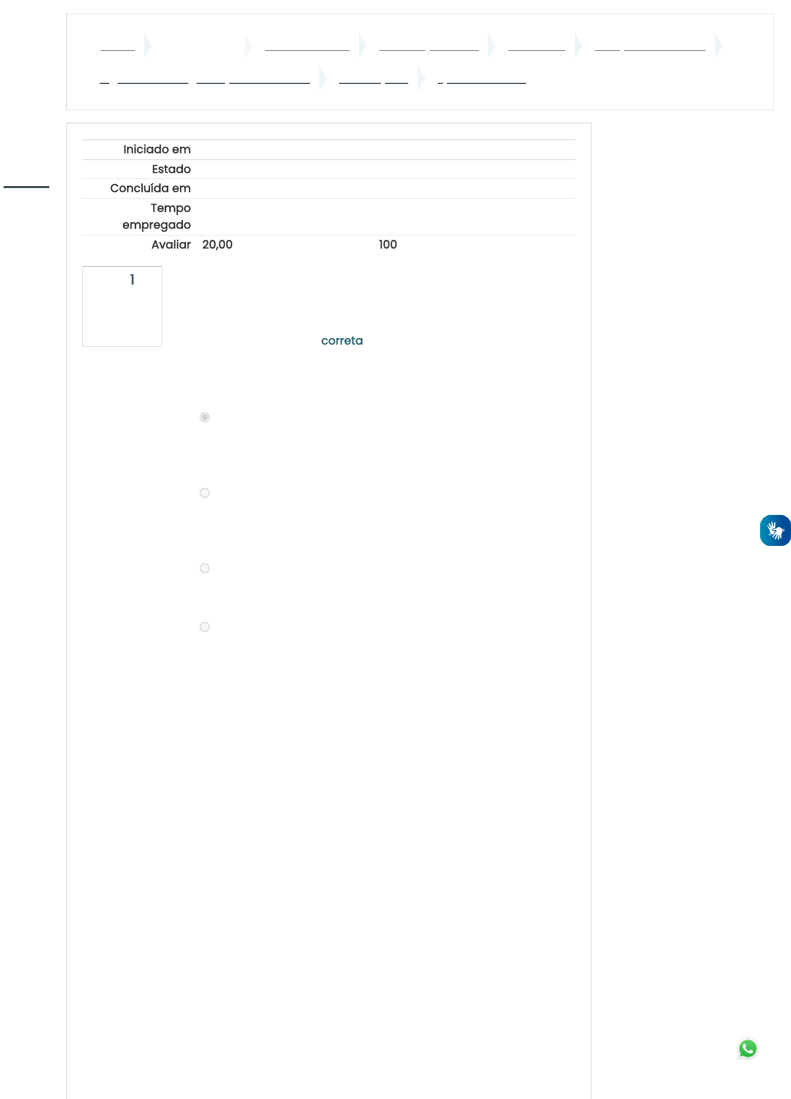 22/08/2023, 17:28 QUESTIONÁRIO 1 https://ava.funec.br/mod/quiz/review.php?attempt=483437&cmid=16147 1/5 Painel Meus cursos CURSOS FUNEC Graduação - EAD Aluno EAD JUNÇÕES DE TURMA Ergonomia e Segurança do Trabalho AVALIAÇÕES QUESTIONÁRIO 1 Questão 1 Completo Atingiu 2,00 de 2,00 Iniciado em Tuesday, 22 Aug 2023, 17:23 Estado Finalizada Concluída em Tuesday, 22 Aug 2023, 17:28 Tempo empregado 4 minutos 42 segundos Avaliar 20,00 de um máximo de 20,00(100%) No que se refere aos Serviços Especializados em Engenharia de Segurança e em Medicina do Trabalho (SESMT), regulamentados pela Norma Regulamentadora no 4 (NR 4), assinale a alternativa correta. Escolha uma opção: a. As empresas que possuem mais de 50% dos empregados em setores com grau de risco superior ao da atividade principal devem dimensionar o SESMT sem função do maior grau de risco. b. Os SESMT de empresas que funcionem em regime sazonal devem ser dimensionados tomando por base a estimativa do número de trabalhadores a serem contratados no ano corrente. c. O dimensionamento do SESMT vincula-se à gradação de risco da atividade principal e à estatística de ocorrência de acidentes de trabalho. d. Os SESMT devem ser integrados por Médico do Trabalho, Engenheiro de Segurança do Trabalho, Ergonomista, Técnico de Segurança do Trabalho e Técnico de Enfermagem do Trabalho. https://ava.funec.br/my/ https://ava.funec.br/course/index.php?categoryid=10 https://ava.funec.br/course/index.php?categoryid=17 https://ava.funec.br/course/index.php?categoryid=19 https://ava.funec.br/course/index.php?categoryid=77 https://ava.funec.br/course/view.php?id=1264 https://ava.funec.br/course/view.php?id=1264#section-6 https://ava.funec.br/mod/quiz/view.php?id=16147 javascript:void(0); https://ava.funec.br/user/index.php?id=1264 https://ava.funec.br/badges/view.php?type=2&id=1264 https://ava.funec.br/admin/tool/lp/coursecompetencies.php?courseid=1264 https://ava.funec.br/grade/report/index.php?id=1264 https://ava.funec.br/my/ https://ava.funec.br/?redirect=0 https://ava.funec.br/calendar/view.php?view=month&course=1264 javascript:void(0); https://ava.funec.br/user/files.php https://ava.funec.br/course/view.php?id=757 https://ava.funec.br/course/view.php?id=1275 https://ava.funec.br/course/view.php?id=1252 https://ava.funec.br/course/view.php?id=958 https://ava.funec.br/course/view.php?id=1295 https://ava.funec.br/course/view.php?id=1264 https://ava.funec.br/course/view.php?id=1299 https://ava.funec.br/course/view.php?id=741 22/08/2023, 17:28 QUESTIONÁRIO 1 https://ava.funec.br/mod/quiz/review.php?attempt=483437&cmid=16147 2/5 Questão 2 Completo Atingiu 2,00 de 2,00 Questão 3 Completo Atingiu 2,00 de 2,00 De acordo com a Norma Regulamentadora NR 03 (Embargo e Interdição) elaborada pelo Ministério do Trabalho e Emprego, analise as afirmativas abaixo: I. Embargo e interdição são medidas de urgência adotadas a partir da constatação de condição ou situação de trabalho que caracterize grave e iminente risco ao trabalhador. II. O embargo e a interdição são medidas de proteção emergencial à segurança e à saúde do trabalhador, não se caracterizando como medidas punitivas. III. Durante a paralisação do serviço, em decorrência da interdição ou do embargo, os trabalhadores receberão 1/3 dos salários como bonificação. Assinale a alternativa correta. Escolha uma opção: a. Apenas as afirmativas I e II estão corretas b. Apenas a afirmativa I está correta c. Apenas as afirmativas I e III estão corretas d. Apenas as afirmativas II e III estão corretas Sobre o disposto na Norma Regulamentadora (NR) 1 – Disposições Gerais, analise as assertivas abaixo e assinale a falsa. Escolha uma opção: a. Os certificados, referentes as capacitações, não devem ser disponibilizados ao trabalhador, apenas arquivado na organização. b. O tempo despendido em treinamentos previstos nas NR’s é considerado como de trabalho efetivo. c. A capacitação deve incluir: a) treinamento inicial; b) treinamento periódico; e c) treinamento eventual. d. A observância das NR não desobriga as organizações do cumprimento de outras disposições que, com relação à matéria, sejam incluídas em códigos de obras ou regulamentos sanitários dos Estados ou Municípios, bem como daquelas oriundas de convenções e acordos coletivos de trabalho. javascript:void(0); https://ava.funec.br/user/index.php?id=1264 https://ava.funec.br/badges/view.php?type=2&id=1264 https://ava.funec.br/admin/tool/lp/coursecompetencies.php?courseid=1264 https://ava.funec.br/grade/report/index.php?id=1264 https://ava.funec.br/my/ https://ava.funec.br/?redirect=0 https://ava.funec.br/calendar/view.php?view=month&course=1264 javascript:void(0); https://ava.funec.br/user/files.php https://ava.funec.br/course/view.php?id=757 https://ava.funec.br/course/view.php?id=1275 https://ava.funec.br/course/view.php?id=1252 https://ava.funec.br/course/view.php?id=958 https://ava.funec.br/course/view.php?id=1295 https://ava.funec.br/course/view.php?id=1264 https://ava.funec.br/course/view.php?id=1299 https://ava.funec.br/course/view.php?id=741 22/08/2023, 17:28 QUESTIONÁRIO 1 https://ava.funec.br/mod/quiz/review.php?attempt=483437&cmid=16147 3/5 Questão 4 Completo Atingiu 2,00 de 2,00 Questão 5 Completo Atingiu 2,00 de 2,00 A NR 1 estabelece que as medidas de prevenção, ouvidos os trabalhadores, sejam adotadas considerando uma determinada ordem de prioridade, que é: Escolha uma opção: a. eliminação dos fatores de risco, minimização e controle dos fatores de risco, com adoção de medidas de proteção coletiva, medidas administrativas ou de organização do trabalho para minimização dos fatores de risco e adoção de medidas de proteção individual. b. medidas administrativas para redução dos fatores de risco, eliminação dos fatores de risco, utilização de medidas individuais de proteção e ampliação da percepção de risco a partir da adoção d