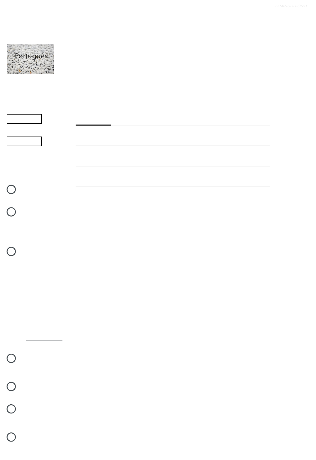 Português 28% 93% Andamento Geral Andamento do Tópico MEU DESEMPENHO MENU PÁGINA INICIAL / MEUS CURSOS / PORTUGUÊS / ATIVIDADE AVALIATIVA / QUESTÕES DE AVALIAÇÃO Iniciado em quarta, 23 ago 2023, 14:47 Estado Finalizada Concluída em quarta, 23 ago 2023, 14:55 Tempo empregado 8 minutos 22 segundos Avaliar 10,00 de um máximo de 10,00(100%) Questões de Avaliação Orientações Período Composto, Pontuação e Concordância Classe de palavras Questões de Fixação Atividade Avaliativa Classe de Palavras Ortografia e Gramática Linguística Comunicação Oral e Escrita Leitura e Construção Minhas Mensagens Avaliação de aula Minhas Notas Contatos do curso Prova digital [ 1 ] IR PARA O CONTEÚDO [ 2 ] IR PARA O MENU SOBRE A ACESSIBILIDADE ALTO-CONTRASTE AUMENTAR FONTE DIMINUIR FONTE https://www.avaeduc.com.br/ https://www.avaeduc.com.br/course/view.php?id=7138 https://www.avaeduc.com.br/mod/quiz/view.php?id=499494 https://www.avaeduc.com.br/course/view.php?id=7138&topic=115013 https://www.avaeduc.com.br/course/view.php?id=7138&topic=115017 https://www.avaeduc.com.br/course/view.php?id=7138&topic=115018 https://www.avaeduc.com.br/course/view.php?id=7138&topic=115019 https://www.avaeduc.com.br/local/mail/view.php?t=inbox javascript:void(0); javascript:void(0); javascript:void(0); javascript:void(0); https://www.avaeduc.com.br/mod/page/view.php?id=1 https://www.avaeduc.com.br/mod/page/view.php?id=1 Questão 1 Correto Atingiu 1,00 de 1,00 a. cavalos. b. ciência. c. condão. d. órgãos. e. sabiá. Leia o poema a seguir para responder à questão: Os sabiás divinam A ciência pode classificar e nomear os órgãos de um sabiá, mas não pode medir seus encantos. A ciência não pode calcular quantos cavalos de força existem nos encantos de um sabiá. Quem acumula muita informação perde o condão de adivinhar: divinare. Os sabiás divinam. BARROS, Manoel de. Disponível em: <http://www.revistasabia.com.br/pt/conceito>. Acesso em: 23/2/2013. (Adaptado) Divinare – (italiano) tr. Adivinhar, pressentir. Condão – s.m. – Dom, virtude, poder. No terceiro verso “mas não pode medir seus encantos”, o termo destacado refere-se a Escolha uma: dos Sentidos Tipos e Gêneros Textuais Leitura de Diferentes Linguagens Coesão e Coerência Análise do Discurso [ 1 ] IR PARA O CONTEÚDO [ 2 ] IR PARA O MENU SOBRE A ACESSIBILIDADE ALTO-CONTRASTE AUMENTAR FONTE DIMINUIR FONTE https://www.avaeduc.com.br/mod/page/view.php?id=1 https://www.avaeduc.com.br/mod/page/view.php?id=1 Questão 2 Correto Atingiu 1,00 de 1,00 a. As sentenças I e II estão corretas. b. As sentenças I, II, III e IV estão corretas. c. As sentenças I e III estão corretas. d. As sentenças I e IV estão corretas. e. As sentenças II e III estão corretas. Analise nas sentenças abaixo as formas verbais em destaque: I – A moeda estava imersa no aquário. II – O bebê havia rompido a bolsa gestacional. III – Ele havia soltado a corda antes de ser puxado. IV – O padre havia benzido a criança na missa. Assinale a alternativa que apresenta as sentenças com as formas verbais corretas: Escolha uma: [ 1 ] IR PARA O CONTEÚDO [ 2 ] IR PARA O MENU SOBRE A ACESSIBILIDADE ALTO-CONTRASTE AUMENTAR FONTE DIMINUIR FONTE https://www.avaeduc.com.br/mod/page/view.php?id=1 https://www.avaeduc.com.br/mod/page/view.php?id=1 Questão 3 Correto Atingiu 1,00 de 1,00 a. indicar a posse do espaço considerado predileto do eu lírico. b. sugerir a forma de tratamento como o quarto deve ser mencionado. c. mostrar os objetos que o eu lírico possui em seu quarto. d. evitar a repetição da palavra "quarto", lugar de aconchego para o eu lírico. Leia o poema e responda. Pânico Aquele é o meu quarto, Meu canto, meu pouso e meu aconchego. Meu sonho, meu eu, meu sossego, Meu invólucro, meu risso, meu siso, Razão, erro, fogo e brasas. E eu aqui, no ar, sem ter asas! Sérgio Capparelli. In: Duelo do Batman contra a MTV. Porto Alegre: L&PM, 2004. Disponível em: < http://linguarecordacoesdasaladeaula.blogspot.com.br/> Acesso em: 06 maio 2015. O pronome “meu” aparece várias vezes no poema com o objetivo de Escolha uma: [ 1 ] IR PARA O CONTEÚDO [ 2 ] IR PARA O MENU SOBRE A ACESSIBILIDADE ALTO-CONTRASTE AUMENTAR FONTE DIMINUIR FONTE https://www.avaeduc.com.br/mod/page/view.php?id=1 https://www.avaeduc.com.br/mod/page/view.php?id=1 Questão 4 Correto Atingiu 1,00 de 1,00 a. Estaríeis – era – fostes – foi. b. Estava – é – foi – foi. c. Estariam – é – foi – era. d. Estaria – é – foi – foi. e. Estaria – era – é – foi. Leia o trecho a seguir: “_______ mentindo se dissesse que não sinto mais sua falta, a saudade ______ um lembrete de que nossa história ______ intensa, vívida e bela. Aquele beijo ______ o último, acabou.” Assinale a alternativa que completa corretamente as lacunas: Escolha uma: [ 1 ] IR PARA O CONTEÚDO [ 2 ] IR PARA O MENU SOBRE A ACESSIBILIDADE ALTO-CONTRASTE AUMENTAR FONTE DIMINUIR FONTE https://www.avaeduc.com.br/mod/page/view.php?id=1 https://www.avaeduc.com.br/mod/page/view.php?id=1 Questão 5 Correto Atingiu 1,00 de 1,00 a. os dois exemplos apresentam problemas de coerência e de coesão. b. o segundo exemplo é uma construção típica da língua escrita formal. c. os dois exemplos estão de acordo com o uso coloquial da língua. Leia o fragmento de uma notícia. 'Prefiro ser mal-educado a acusado de achaque', diz Cid Gomes a Cunha Bruna Borges. Do UOL, em Brasília - 18/03/2015 16h35 O ministro Cid Gomes (Educação) pediu desculpas nesta quarta-feira (18) por uma declaração contra deputados federais, mas atacou o presidente da Câmara, deputado Eduardo Cunha (PMDB-RJ). "Prefiro ser acusado por ele de mal-educado do que ser acusado como ele de achaque", disse Cid, apontado para a Mesa Diretora onde estava Cunha. [...] Disponível em: <http://noticias.uol.com.br/politica/ultimas- noticias/2015/03/18/deputado-da-base- contrario-ao-governo-deve-largar-o-osso-diz- cid-gomes.htm>. 