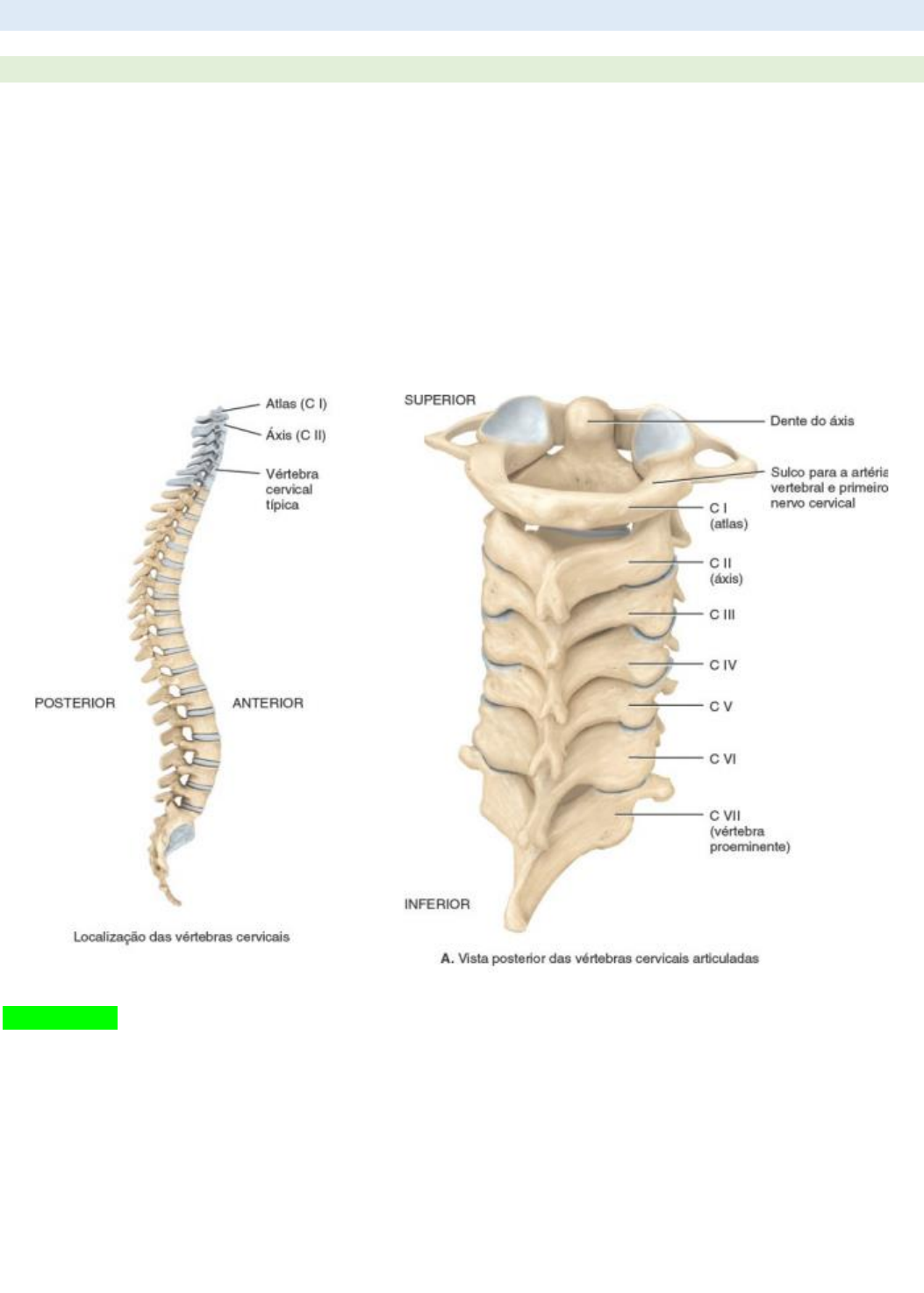 IANI SOARES LUZ XIII – MED APG 28 – CERVICALGIA Coluna vertebral Vértebras cervicais: Os corpos das vértebras cervicais (C I a C VII) são menores que os das outras vértebras, exceto aquelas que formam o cóccix. - Seus arcos vertebrais, no entanto, são maiores. - Todas as vértebras cervicais apresentam 3 forames: 1 forame vertebral (largo, pois aloja a intumescência cervical da medula espinal) e 2 forames transversos. - Cada processo transverso cervical contém um forame transversal, através do qual passam a artéria vertebral e sua veia acompanhante, além de fibras nervosas. - C I (atlas): Referência à figura mitológica de Atlas. - É um anel ósseo com arco anterior e arco posterior e grandes massas laterais. - Não apresenta corpo nem processo espinhoso. - As superfícies superiores das massas laterais (faces articulares superiores) são côncavas e se articulam com os côndilos occipitais do occipital para formar o par de articulações atlantoccipitais (movimento de anuência). - As superfícies inferiores das massas laterais (faces articulares inferiores) se articulam com a C II. IANI SOARES LUZ XIII – MED - Os processos transversos e os forames transversos do atlas são bastante grandes. - C II (áxis): Apresenta corpo vertebral. Um processo chamado dente/processo odontoide se projeta superiormente pela porção anterior do forame vertebral do atlas. - O dente serve de eixo em torno do qual a cabeça faz rotação. - Em algumas situações de trauma, o dente do áxis pode ser projetado contra o bulbo, sendo esse tipo de lesão a causa usual de morte das lesões por mecanismo de chicote (lesão por flexão- extensão súbitas). – C III a C VI: Correspondem ao padrão estrutural de uma vértebra cervical típica. - C VII (vértebra proeminente) é um tanto diferente, revelando um processo espinhoso grande e não bífido que pode ser percebido e palpado na base do pescoço, mas, sob outros aspectos, é típica. IANI SOARES LUZ XIII – MED Vértebras torácicas - As vértebras torácicas (T I a T XII) são maiores e mais fortes que as vértebras cervicais. - Os processos espinhosos de T I a T X são longos, achatados lateralmente e direcionados para baixo. Em contraste, os processos espinhosos de T XI e T XII são mais curtos, mais largos e direcionados mais posteriormente. - As vértebras torácicas são identificadas com facilidade por suas fóveas costais, que são superfícies que se articulam com as costelas. - As vértebras torácicas se articulam com as costelas. • Com exceção de T XI e T XII, os processos transversos das vértebras torácicas possuem fóveas costais que se articulam com os tubérculos das costelas. - Os corpos vertebrais das vértebras torácicas apresentam superfícies articulares que formam articulações com as cabeças das costelas. • As superfícies articulares nos corpos vertebrais são chamadas de fóveas costais. • Uma fóvea é formada quando a cabeça de uma costela se articula com o corpo de uma vértebra. • Uma hemifóvea é formada quando a cabeça de uma costela se articula com 2 corpos vertebrais adjacentes. - Os movimentos da região torácica são limitados pela fixação das costelas ao esterno. IANI SOARES LUZ XIII – MED Cervicalgia Epidemiologia - A dor cervical ou cervicalgia é um distúrbio musculoesquelético comum, com uma prevalência na população geral de aproximadamente 10%. - Ocorre em 70% dos indivíduos em algum momento de suas vidas, porém menos de 1% dos afetados desenvolverão déficits neurológicos. Etiologia, fisiopatologia e manifestações clínicas Fatores de risco para dor cervical: • Posturas fixas e prolongadas; • Curvatura aumentada do tronco; • Flexão cervical acentuada por longos períodos durante atividades; • Inadequação de aspectos ergonômicos e atividades que envolvam vibração contínua das mãos e dos braços; características psicossociais e relacionadas com a carga de trabalho; • Lesão prévia da região cervical; • Situações de litígio e requerimento de benefícios trabalhistas; etc. - A dor cervical pode originar-se de várias estruturas anatômicas, incluindo tecidos moles paraespinhais, articulações intervertebrais e discos, compressão medular e de raízes nervosas e dor referida. Divisão dos distúrbios que afetam a coluna cervical: Aqueles que cursam predominantemente com dor cervical: • Distensão cervical • Espôndilos • Discopatia degenerativa • Síndrome do chicote • Síndrome miofascial Aqueles que causam com mais frequência dor em extremidades superiores e disfunção neurológica: • Hérnias discais com radiculopatia • Mielopatia IANI SOARES LUZ XIII – MED Atentar-se aos sinais de alerta na cervicalgia: IANI SOARES LUZ XIII – MED SÍNDROME DO CHICOTE (TRAUMATISMO DA COLUNA VERTEBRAL) - O traumatismo da coluna cervical (fraturas, subluxação) submete a medula espinal ao risco de compressão. Etiologia Acidentes automobilísticos, crimes violentos ou quedas são responsáveis por 87% das lesões de medula espinal cervical. • A imobilização imediata do pescoço é essencial para minimizar qualquer lesão adicional da medula espinal em consequência do movimento de segmentos instáveis da coluna cervical. Fisiopatologia - Lesão em chicote é causada, em geral, por impactos indiretos traumáticos com mecanismo de aceleração-desaceleração, determinando transferência de força para a região cervical que leva à flexão e extensão abruptas e rápidas do pescoço. • Múltiplas estruturas podem ser lesadas, incluindo tecidos moles, nervos espinhais, discos intervertebrais, ligamento longitudinal posterior, ligamentos interespinhosos, articulações facetarias e outras estruturas ósseas. Manifestações clínicas • Dor severa • Espasmo • Perda de mobilidade • Dor occipital, que tendem a ser autolimitados. - A dor pode persistir mesmo nos casos em que poucas anormalidades são identificadas nos exames de