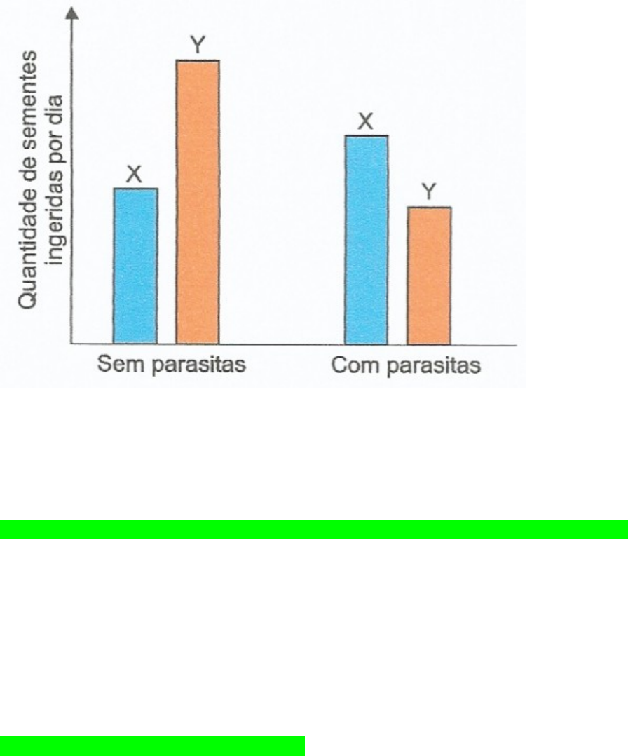 01. (FAMERP) Indivíduos de duas espécies de roedores (X e Y) competem entre si por sementes de girassol, podendo, além disso, apresentar os mesmos parasitas intestinais. Em um experimento, um pesquisador manteve a mesma quantidade de indivíduos dessas duas espécies no mesmo ambiente, com sementes de girassol como alimento. A análise foi feita com as espécies de roedores parasitadas e, depois de um tratamento, com as mesmas espécies sem os parasitas. O gráfico ilustra o resultado obtido. Os resultados mostrados no gráfico permitem concluir que: a) quando os parasitas estão ausentes, as espécies X e Y não competem entre si. b) quando os parasitas estão ausentes, a espécie X é melhor competidora do que a espécie Y. c) quando os parasitas estão presentes, a espécie X é melhor competidora do que a espécie Y. d) os parasitas não influenciam a competição entre as duas espécies de roedores. e) quando os parasitas estão presentes, a espécie Y é melhor competidora do que a espécie X. 02. (ETEC-SP) Fazer uma trilha é muito divertido, desde que o passeio seja realizado com a presença de um guia, com roupas e calçados adequados e muita água potável. Em uma trilha pela Mata Atlântica, o ambiente observado se caracteriza principalmente por: a) vegetação densa, latifoliada e heterogênea. b) floresta aciculifoliada homogênea e densa. c) selva de tundra com cactáceas esparsas. d) arbustos esparsos com galhos retorcidos. e) plantas esparsas, caducifólias e xerófitas. 03. (UFRN) As dioxinas são substâncias emitidas durante os procedimentos de incineração de resíduos industriais, podendo contaminar diretamente as pessoas por inalação de emissões atmosféricas. Contudo, mais de 90% da exposição humana às dioxinas é atribuída à ingestão de alimentos contaminados. Segundo a Organização Mundial da Saúde (OMS), uma vez que as dioxinas penetram no corpo, elas perduram por muito tempo devido à sua estabilidade química e à capacidade de serem absorvidas pelo tecido adiposo. Esse fato se relaciona ao conceito ecológico de magnificação trófica, que significa: a) bioacumulação de dioxina nos animais de menor porte, porque estes consomem maior quantidade de alimento. b) aumento gradativo da concentração de dioxina a cada nível trófico da cadeia alimentar. c) eutrofização pela dioxina biodegradável nos níveis tróficos superiores da cadeia alimentar. d) maior resistência de animais de níveis tróficos inferiores à toxidade da dioxina em comparação com animais de níveis tróficos superiores. 04. (UEMA) Os mangues, representados na Figura pelo número 1, são a espinha dorsal das costas dos oceanos tropicais, sendo muito mais importantes para o equilíbrio da Biosfera do que anteriormente se supunha. Embora essa floresta lamacenta e de cheiro característico não tenha o encantamento de florestas tropicais ou recifes de corais, elas formam um importante hábitat, berçário para inúmeras espécies permanentes (2) ou temporárias (3) de peixes, crustáceos, aves, insetos e mamíferos. Os fragmentos da vegetação (4), a energia solar (5) e a chuva (6) favorecem uma ciclagem de nutrientes muito eficientes e cadeias alimentares extremamente complexas. A figura, a seguir, representa o ecossistema manguezal. Tomando como base o texto verbal e a figura, é correto afirmar, em relação ao ecossistema manguezal, que: a) os manguezais, com condições que limitam bastante a variedade de vegetação, como alagamento periódico, fundo lodoso, salobro e mal arejado, não apresentam espécies típicas de plantas. b) o status do manguezal como Área de Preservação Permanente (APP) é suficiente para garantir sua proteção contra os impactos causados pelo homem. c) as cadeias alimentares e os ciclos de nutrientes que ocorrem nos manguezais são exclusivamente marinhos. d) a fauna, a exemplo do caranguejo, vive permanentemente no manguezal, embora a maioria seja migratória. e) o fluxo e o refluxo da maré provocam assoreamento do manguezal, independente da presença do mangue. 05. (FCMSCSP) Ao lado de uma área de pastagem existe uma mina abandonada há mais de um século, cujos rejeitos de mineração estão contaminados por cobre. O gráfico mostra o índice de tolerância ao cobre das plantas adultas e das sementes de uma espécie de gramínea. As plantas e sementes dessa espécie foram encontradas tanto em áreas de pastagens não contaminadas quanto em áreas contaminadas pelo cobre presente nos rejeitos. Sobre as diferentes tolerâncias desta espécie de gramínea ao cobre, é correto afirmar que: a) houve seleção de plantas mais tolerantes ao metal e melhor adaptadas às condições dos rejeitos. b) plantas com baixa tolerância ao metal colonizaram os rejeitos, se adaptaram e passaram a metabolizar o excesso de cobre. c) a baixa concentração natural de cobre no solo das pastagens induziu algumas plantas a serem mais tolerantes ao cobre. d) o limite da mina atuou como uma barreira geográfica, separando os indivíduos e adaptando aqueles mais tolerantes ao metal. e) o excesso de cobre nos rejeitos provocou mutações nas sementes que, ao germinarem, originaram adultos mais tolerantes ao metal. 06. (FIT) O gráfico relaciona o tamanho de uma população em função da intensidade de um determinado fator ambiental como, por exemplo, a temperatura. Com relação ao fator ambiental, a análise do gráfico permite concluir que a faixa: a) I situa-se acima do limite inferior de tolerância. b) II e a faixa IV correspondem à intensidade ótima do fator. c) III corresponde à população em desequilíbrio. d) II e a faixa IV correspondem à população sob estresse. e) V situa-se abaixo do limite superior de tolerância. 07. (UNITAU) Alguns animais podem apresentar a capacidade de se confundir com o meio em que vivem, obtendo disso alguma vantagem, tanto como predador, que pode atacar uma presa sem ser visto, ou mesmo enquanto presa, que pode se e