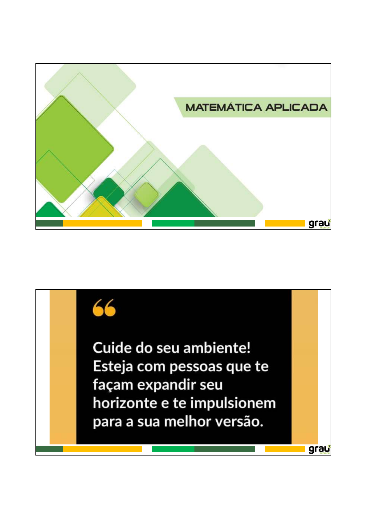 11/08/2023 1 11/08/2023 2 Proporção Proporção 11/08/2023 3 Proporção Proporção 11/08/2023 4 Proporção Segundo a direção do colégio, a razão entre o número total de alunos matriculados nas turmas do terceiro ano e o número de alunos não concluintes desse curso, nessa ordem, é de 9 para 7. A direção ainda indica que são 140 os alunos concluintes desse curso. Com base na informação, pode-se afirmar, corretamente, que o número total de alunos matriculados nesse curso é: (A) 180. (B) 260. (C) 490. (D) 520. (E) 630. Em uma pesquisa curta, foi obtido o seguinte resultado: de 30 alunos entrevistados na Faculdade Pitágoras, 10 gostam de Matemática, portanto também poderíamos supor que, se forem entrevistados 120 alunos da mesma faculdade, 40 deverão gostar de Matemática. Na verdade, ao falar de 40 alunos dos 120 alunos estamos afirmando que 10 estão representando em 30 o mesmo que 40 em 120. Escrevemos: 1 0 4 0 3 0 1 2 0 Uma propriedade fundamental das proporções é a seguinte: em toda proporção, o produto dos meios é igual ao produto dos extremos. 2 : 4 : : 9 : 18 2. 18 = 4. 9 36 = 36 2 9 4 1 8 Proporção 11/08/2023 5 Considera a razão . Se multiplicares ambos os termos da razão pelo mesmo número, por exemplo, por 3, obtemos uma nova razão: Quando escrevemos a igualdade temos uma proporção. Uma PROPORÇÃO é uma igualdade entre duas razões. 2 7 3 3 2 6 7 2 1 2 6 7 2 1 Proporção A proporção deve ler-se: “2 está para 7 assim como 6 está para 21”. Numa proporção, os números (termos) que lá aparecem têm um determinado nome de acordo com o sítio onde se encontram escritos. Os números 2 e 21 são chamados os extremos. Os números 7 e 6 são chamados os meios. 2 7 1 6 2 Proporção 11/08/2023 6 Multiplica os extremos da proporção Produto dos extremos: 2 x 21 = 42 Multiplica os meios da proporção Produto dos meios: 7 x 6 = 42 O produto dos extremos é igual ao produto dos meios. Chama-se à igualdade anterior a PROPRIEDADE FUNDAMENTAL DAS PROPORÇÕES. 2 7 1 6 2 2 7 1 6 2 Proporção