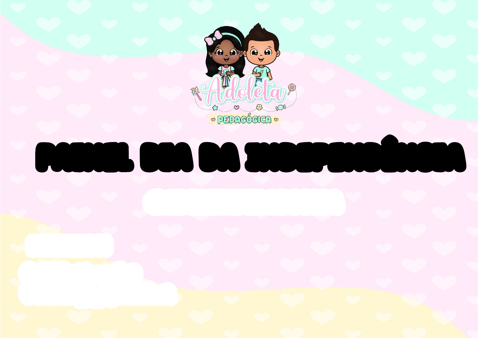 PAINEL DIA DA INDEPENDÊNCIA @adoletapedagogica PARCEIROS: @alfabetizando3 @crescer_e_aprender2 OBRIGADA PELA COMPRA!!! VOCÊ ACABA DE ADQUIRIR UM RECURSO PEDAGÓGICO. ESTE MATERIAL É DE USO PESSOAL, EXCLUSIVO DA PESSOA QUE ADQUIRIU, SENDO PROIBIDO ASSIM O SEU COMPARTILHAMENTO. NÃO É PERMITIDO QUALQUER USO COMERCIAL DESSE MATERIAL. MATERIAL PROTEGIDO PELA LEI DOS DIREITOS AUTORAIS CONFORME A LEI Nº 9.610 DE 19 DE FEVEREIRO DE 1998. EVITE PROBLEMAS JURÍDICOS. DIREITOS DE IMAGEM SUPORTE: (37) 9 9104-3435 SUPORTE: (37) 9 9104-3435 O MATERIAL CONTÉM: LETREIRO IMAGENS ILUSTRATIVAS ATENÇÃO TODO MATERIAL DESTA APOSTILA ESTÃO PROTEGIDOS POR DIREITOS AUTORAIS DE SEU CRIADOR: SENDO PROIBIDO TODA E QUALQUER FORMA DE USO, NÃO AUTORIZADA EXPRESSAMENTE, SEJA ELA ONEROSA OU NÃO, SUJEITANDO-SE O TRANSGRESSOR, AS PENALIDADES. PROIBIDO A DIVULGAÇÃO EM GRUPOS DE WHATSAPP, TELEGRAM, BLOGS, FACEBOOK... ENTRE OUTROS BB RR AA SS II LL SOMENTE COM: LI ERDADE, ESPEITO, EDUC ÇÃO, HONE TIDADE, JUST ÇA E IGUA DADE SEREMOS VERDADEIRAMENTE UMA NAÇÃO! B R A S I L SOMENTE COM: LI ERDADE, ESPEITO, EDUC ÇÃO, HONE TIDADE, JUST ÇA E IGUA DADE SEREMOS VERDADEIRAMENTE UMA NAÇÃO! B R A S I L I D P N Ê C A O R S LN E E D N I D B A I 7 DE SETEMBRO I D P N Ê C A O R S LN E E D N I D B A I 7 DE SETEMBRO SUGESTÃO DE MONTAGEM LEMBRAMOS QUE TANTO AS IMAGENS QUANTO AS PALAVRAS SÃO SOBREPOSTAS AO RECORTAR SOBREPONHA UMA FOLHA SOBRE A OUTRA ATÉ FAZER A JUNÇÃO PERFEITA. Página 1 Página 2 Página 3 Página 4 Página 5 Página 6 Página 7 Página 8 Página 9 Página 10 Página 11 Página 12 Página 13 Página 14 Página 15 Página 16 Página 17 Página 18 Página 19 Página 20 Página 21 Página 22 Página 23 Página 24 Página 25 Página 26 Página 27 Página 28 Página 29 Página 30 Página 31 Página 32 Página 33 Página 34 Página 35 Página 36 Página 37 Página 38 Página 39 Página 40 Página 41
