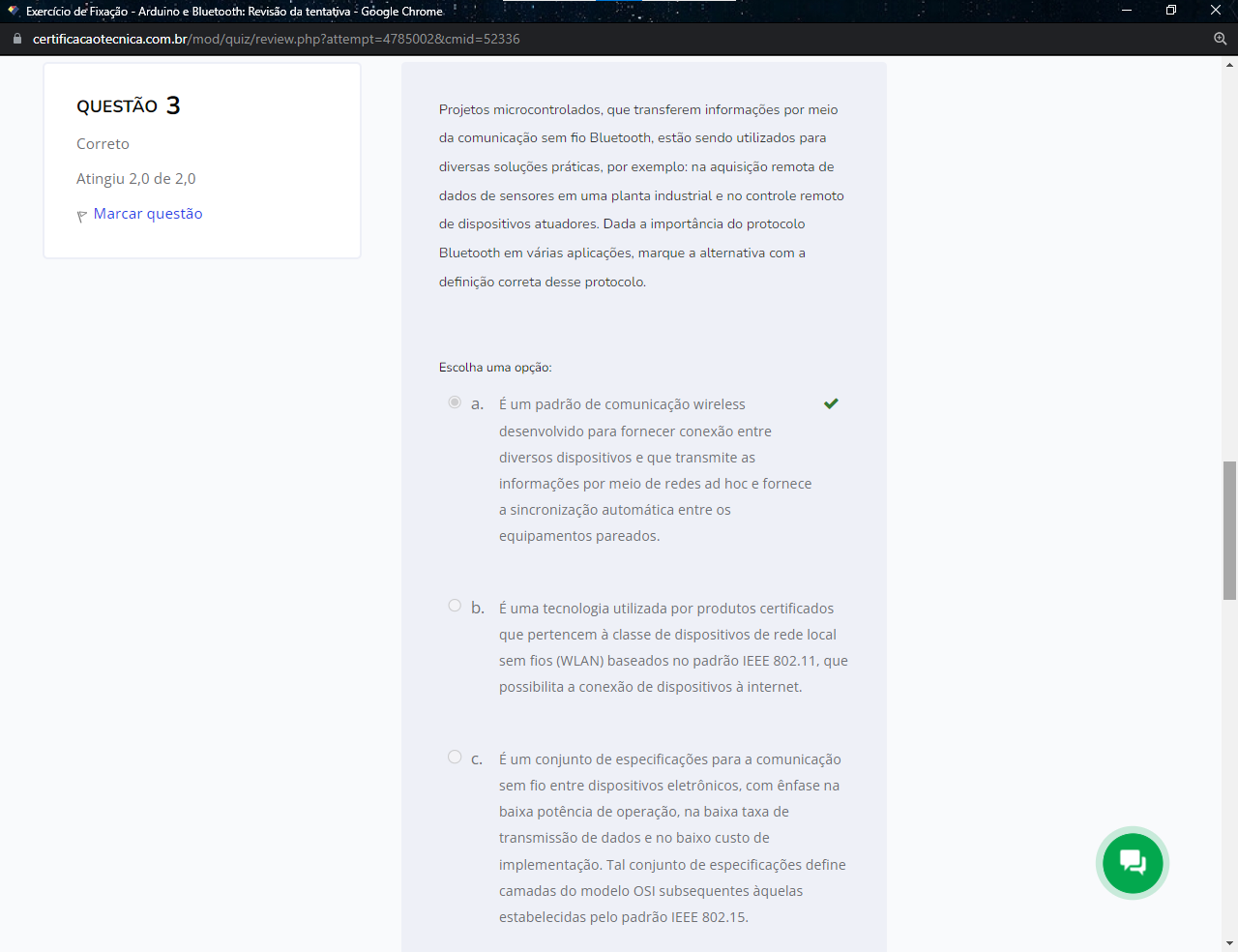 a. É um padrão de comunicação wireless desenvolvido para fornecer conexão entre diversos dispositivos e que transmite as informações por meio de redes ad hoc e fornece a sincronização automática entre os equipamentos pareados b. É uma tecnologia utilizada por produtos certificados que pertencem à classe de dispositivos de rede local sem fios (WLAN) baseados no padrão IEEE que possibilita a conexão de dispositivos à internet. c. É um conjunto de especificações para a comunicação sem fio entre dispositivos eletrônicos, com ênfase na baixa potência de na baixa taxa de transmissão de dados e no baixo custo de implementação. Tal conjunto de especificações define camadas do modelo OSI subsequentes estabelecidas pelo padrão IEEE 802.15.