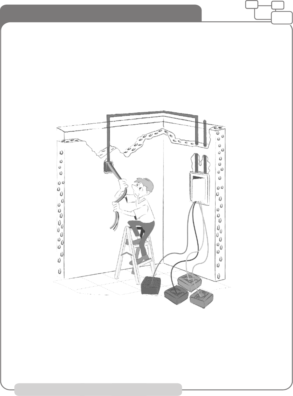 MinasMega Cursos OnLine | http://www.minasmega.com.br CURSO BÁSICO DE INSTALAÇÕES ELÉTRICAS RESIDENCIAIS | MÓDULO 01 INSTALAÇÕES INSTALAÇÕES INSTALAÇÕES INSTALAÇÕES ELÉTRICASELÉTRICASELÉTRICASELÉTRICAS Richard M Castro MinasMega Cursos OnLine | http://www.minasmega.com.br CURSO BÁSICO DE INSTALAÇÕES ELÉTRICAS RESIDENCIAIS | MÓDULO 01 ÍNDICEÍNDICEÍNDICEÍNDICE 1. INTRODUÇÃO1. INTRODUÇÃO1. INTRODUÇÃO1. INTRODUÇÃO ............................................................................................. 5555 2. 2. 2. 2. NOÇÕES GERAIS SOBRE A ELETRICIDADENOÇÕES GERAIS SOBRE A ELETRICIDADENOÇÕES GERAIS SOBRE A ELETRICIDADENOÇÕES GERAIS SOBRE A ELETRICIDADE ................................................ 6666 2.1 Histórico da ELETRICIDADE .................................................................. 6666 2.2. Energia ................................................................................................. 8888 2.2.1 Energia elétrica ........................................................................... 8888 2.3 Circuitos em Corrente Alternada ........................................................... 10101010 2.3.1 Circuito Monofásico ..................................................................... 10101010 2.3.2 Circuito Trifásico .......................................................................... 10101010 2.3.3 Potência em Corrente Alternada (CA) 12121212 2.3.4 Fator de Potência 14141414 3. 3. 3. 3. INFORMAÇÕES SOBRE a ANEEL, PROCEL, INFORMAÇÕES SOBRE a ANEEL, PROCEL, INFORMAÇÕES SOBRE a ANEEL, PROCEL, INFORMAÇÕES SOBRE a ANEEL, PROCEL, ABNT e INMETROABNT e INMETROABNT e INMETROABNT e INMETRO .................... 16161616 3.1 Agência Nacional de Energia Elétrica – ANEEL ...................................... 16161616 3.2 Programa Nacional de Conservação de Energia Elétrica – PROCEL ....... 17171717 3.3 Associação Brasileira de Normas Técnicas – ABNT ............................... 19191919 3.4 Instituto Nacional de Metrologia, Normalização e Qualidade Industrial – INMETRO ............................................................................................... 20202020 4. CIRCUITOS ELÉTRICOS RESIDENCIAIS / PREDIAIS4. CIRCUITOS ELÉTRICOS RESIDENCIAIS / PREDIAIS4. CIRCUITOS ELÉTRICOS RESIDENCIAIS / PREDIAIS4. CIRCUITOS ELÉTRICOS RESIDENCIAIS / PREDIAIS .................................... 22222222 4.1 Padrão de entrada CELESC até 15 kW ................................................... 25252525 4.2 Padrão de entrada CELESC até 75 kW ................................................... 26262626 4.3 Rede pública de baixa tensão ................................................................ 27272727 4.4 Símbolos e Convenções ......................................................................... 27272727 4.5 Diagramas elétricos ............................................................................... 25252525 4.5.1 Tipos de diagramas elétricos ........................................................ 35353535 4.6 Componentes elétricos e esquemas de ligações ................................... 36363636 4.6.1 Interruptores simples e tomadas .................................................. 36363636 4.6.2 Interruptor paralelo (“three way”) ................................................. 38383838 4.6.3 - Interruptor Intermediário (“Four Way”) ....................................... 39393939 4.6.4 Receptáculo ................................................................................. 40404040 4.6.5 Tipos de Tomadas e Plugues ........................................................ 41414141 4.6.6 Condulete (caixa de passagem) .................................................... 41414141 4.6.7 Lâmpada incandescente .............................................................. 42424242 4.6.8 Lâmpadas fluorescentes .............................................................. 43434343 4.6.9 Minuteria (controle temporizado de acendimento) ........................ 46464646 4.6.10 Relé fotoelétrico (fotocélula) ...................................................... 48484848 4.6.11 Campainha e cigarra elétrica ...................................................... 49494949 4.6.12 Controle de intensidade luminosa (Dimmer) ................................ 51515151 4.6.13 Interruptor automático de presença (IAP) ................................... 52525252 4.6.14 Quadro de distribuição de circuitos – QDC ................................. 52525252 4.6.14.1 Ligação do quadro de distribuição (QDC) ..................... 54545454 MinasMega Cursos OnLine | http://www.minasmega.com.br CURSO BÁSICO DE INSTALAÇÕES ELÉTRICAS RESIDENCIAIS | MÓDULO 01 5555. . . . PRINCIPAIS PRINCIPAIS PRINCIPAIS PRINCIPAIS FERRAMENTAS FERRAMENTAS FERRAMENTAS FERRAMENTAS MANUAISMANUAISMANUAISMANUAIS ....................................................... 54545454 5.1 Alicate universal .................................................................................... 54545454 5.2 Alicate de bico chato ............................................................................. 55555555 5.3 Alicate de corte lateral .......................................................................... 55555555 5.4 Alicate de bico cônico ............................................................................ 55555555 5.5 Alicate desencapador de fios ................................................................. 55555555 5.6 Chave de fenda ...................................................................................... 55555555 5.7 Chave de fenda cruzada ........................................................................ 56565656 5.8 Faca ou Canivete ................................................................................... 57575757 5.9 Arco de serra ........................................................................................ 57575757 