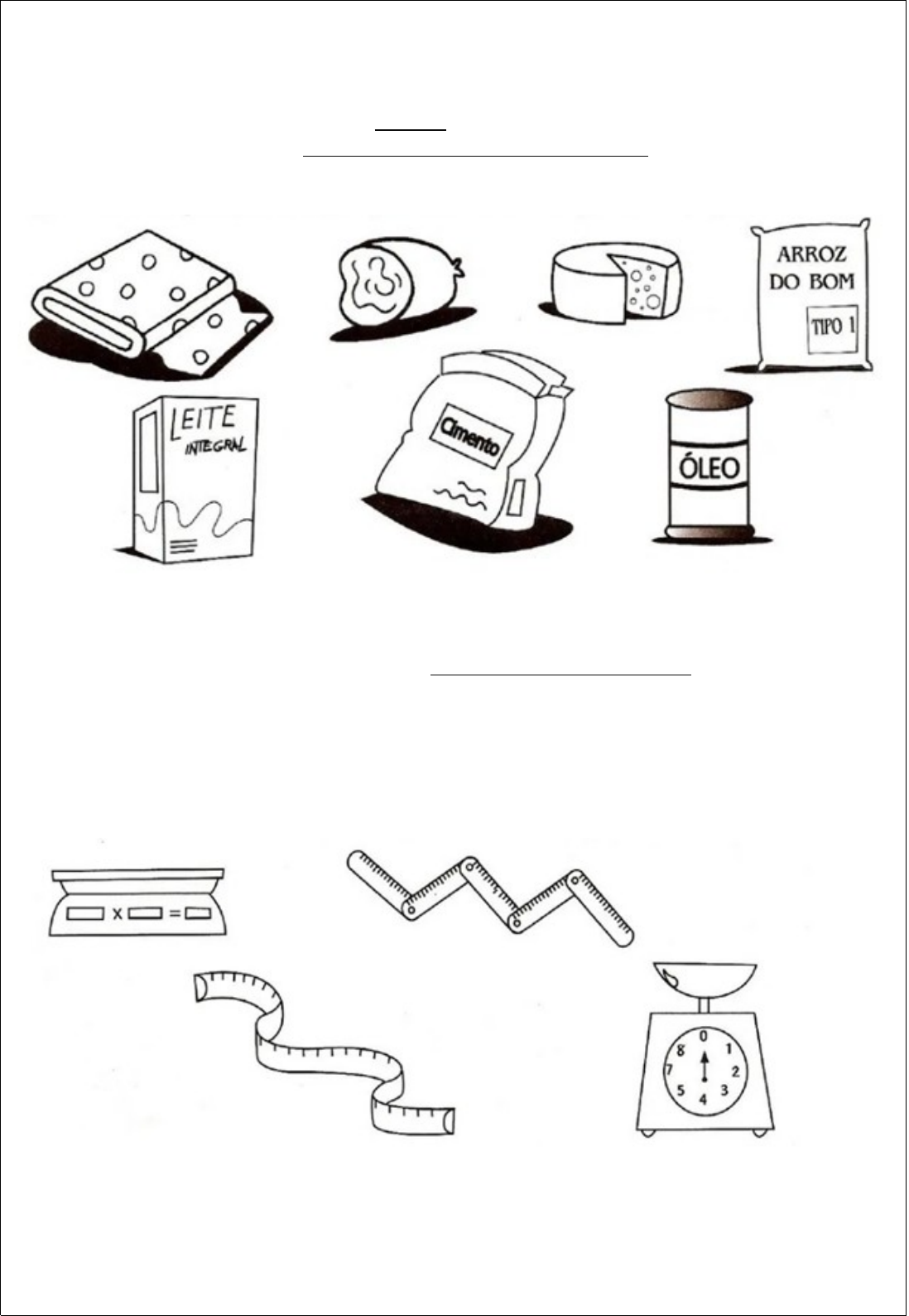 1) Considerando a unidade de medida MASSA, PINTE OS ALIMENTOS ABAIXO QUE PODEM SER COMPRADOS EM QUILOS (Kg) ou em GRAMAS (g).