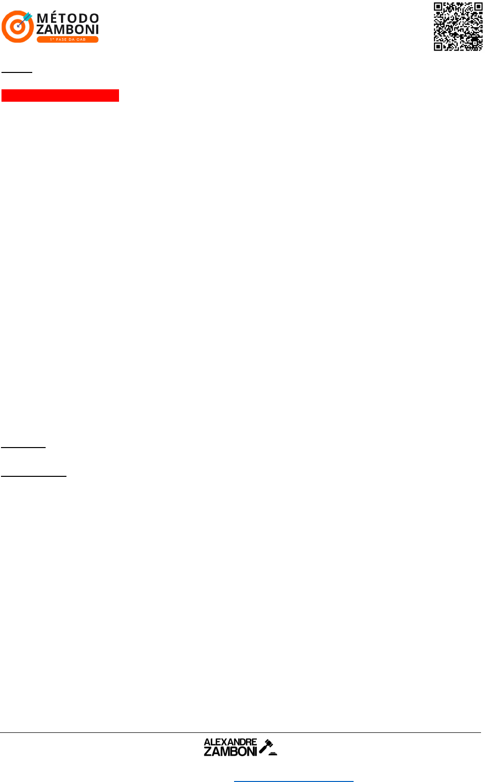 Conheça nossos cursos Copyright © – Centro de Ensino Alexandre Zamboni – Todos os Direitos Reservados CNPJ: 33.278.260/0001-82 – https://metodozamboni.com.br DIA 7. Direito Constitucional: nacionalidade (art. 12 da CF) e direitos e partidos políticos (artigos 14 ao 17 da CF). (Exame de Ordem Unificado - XXVI - Primeira Fase) 1. Afonso, nascido em Portugal e filho de pais portugueses, mudou-se para o Brasil ao completar 25 anos, com a intenção de advogar no estado da Bahia, local onde moram seus avós paternos. Após cumprir todos os requisitos exigidos e ser regularmente inscrito nos quadros da OAB local, Afonso permanece, por 13 (treze) anos ininterruptos, laborando e residindo em Salvador. Com base na hipótese narrada, sobre os direitos políticos e de nacionalidade de Afonso, assinale a afirmativa correta. a) Afonso somente poderá se tornar cidadão brasileiro quando completar 15 (quinze) anos ininterruptos de residência na República Federativa do Brasil, devendo, ainda, demonstrar que não sofreu qualquer condenação penal e requerer a nacionalidade brasileira. b) Uma vez comprovada sua idoneidade moral, Afonso poderá, na forma da lei, adquirir a qualidade de brasileiro naturalizado e, nessa condição, desde que preenchidos os demais pressupostos legais, candidatar-se ao cargo de prefeito da cidade de Salvador. c) Afonso poderá se naturalizar brasileiro caso demonstre ser moralmente idôneo, mas não poderá alistar-se como eleitor ou exercer quaisquer dos direitos políticos elencados na Constituição da República Federativa do Brasil. d) Afonso, por ser originário de país de língua portuguesa, adquirirá a qualidade de brasileiro nato ao demonstrar, na forma da lei, residência ininterrupta por 1 (um) ano em solo pátrio e idoneidade moral. Gabarito: alternativa B Fundamento: Art. 12. São brasileiros: [...] II - naturalizados: a) os que, na forma da lei, adquiram a nacionalidade brasileira, exigidas aos originários de países de língua portuguesa apenas residência por um ano ininterrupto e idoneidade moral; Art. 14, § 3º São condições de elegibilidade, na forma da lei: I - a nacionalidade brasileira; [...] VI - a idade mínima de: a) trinta e cinco anos para Presidente e Vice-Presidente da República e Senador; b) trinta anos para Governador e Vice-Governador de Estado e do Distrito Federal; c) vinte e um anos para Deputado Federal, Deputado Estadual ou Distrital, Prefeito, Vice-Prefeito e juiz de paz; d) dezoito anos para Vereador. Nadia Cristina Da Cruz - nadia1602_@hotmail.com - CPF: 452.146.878-00 Conheça nossos cursos Copyright © – Centro de Ensino Alexandre Zamboni – Todos os Direitos Reservados CNPJ: 33.278.260/0001-82 – https://metodozamboni.com.br (Exame de Ordem Unificado - XXII - Primeira Fase) 2. Luca nasceu em Nápoles, na Itália, em 1997. É filho de Marta, uma ilustre pintora italiana, e Jorge, um escritor brasileiro. Quando de seu nascimento, seus pais o registraram apenas perante o registro civil italiano. Luca nunca procurou se informar sobre seu direito à nacionalidade brasileira, mas, agora, vislumbrando seu futuro, ele entra em contato com um escritório especializado, a fim de saber se e como poderia obter a nacionalidade brasileira. Assinale a opção que apresenta, em conformidade com a legislação brasileira, o procedimento indicado pelo escritório. a) Luca não tem direito à nacionalidade brasileira, eis que seu pai não estava ou está a serviço do Brasil. b) Luca não poderá mais obter a nacionalidade brasileira, tendo em vista que já é maior de idade. c) Luca tem direito à nacionalidade brasileira, mas, ainda que a obtenha, não será considerado brasileiro nato. d) Luca deverá ir residir no Brasil e fazer a opção pela nacionalidade brasileira. Gabarito: alternativa D Fundamento: Art. 12 – “São brasileiros: I - natos: c) os nascidos no estrangeiro de pai brasileiro ou de mãe brasileira, desde que sejam registrados em repartição brasileira competente ou venham a residir na República Federativa do Brasil e optem, em qualquer tempo, depois de atingida a maioridade, pela nacionalidade brasileira”. (Exame de Ordem Unificado - XX - Primeira Fase (Reaplicação Salvador/BA) 3. Wilson, nascido nos Estados Unidos da América, com 29 anos de idade, é filho de pais brasileiros. Fluente na língua portuguesa, participa com brilho da política partidária regional de um Estado da federação brasileira, dominado há várias gerações por sua família. Esta natural inclinação leva seus familiares a incentivá-lo no sentido de concorrer ao cargo de Governador do Estado nas eleições que serão realizadas dali a dois anos. Sobre a possibilidade jurídica de Wilson concorrer ao pleito, mais precisamente no que se refere às questões de nacionalidade e idade, assinale a afirmativa correta. a) Wilson já terá completado, na data da eleição, a idade exigível para o exercício do cargo pleiteado, mas somente poderá concorrer caso adquira a nacionalidade brasileira. b) Wilson poderá concorrer, pois não apenas contemplará o requisito da idade, como, pelo simples fato de ser filho de brasileiros, possui automaticamente a nacionalidade de brasileiro nato. c) Wilson não estará apto a concorrer nesta próxima eleição para o cargo apontado, pois, mesmo que adquira a nacionalidade brasileira, não possuirá a idade mínima exigida para o cargo. d) Wilson não poderá concorrer, pois, embora a idade não seja um problema, poderá, no máximo, adquirir o status de brasileiro naturalizado, enquanto o cargo em questão exige o status de brasileiro nato. Nadia Cristina Da Cruz - nadia1602_@hotmail.com - CPF: 452.146.878-00 Conheça nossos cursos Copyright © – Centro de Ensino Alexandre Zamboni – Todos os Direitos Reservados CNPJ: 33.278.260/0001-82 – https://metodozamboni.com.br Gabarito: alternativa A Fundamento: CF, Art. 12. São brasileiros: I - natos: c) os nascidos no estrangeiro de pai brasil