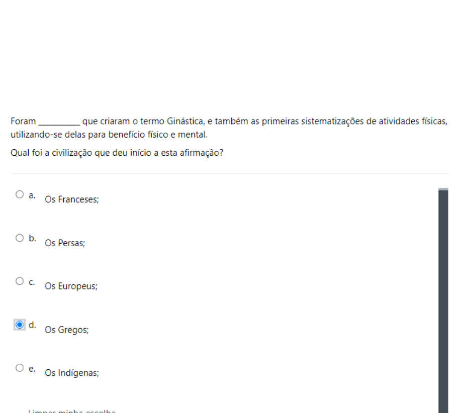 PROVA CURRICULAR - DIA 07/09/2023 A 10/09/2023 - VALOR 6,0 PONTOS - 1ª OPORTUNIDADE Ginástica Prova corrigida - todas estão corretas