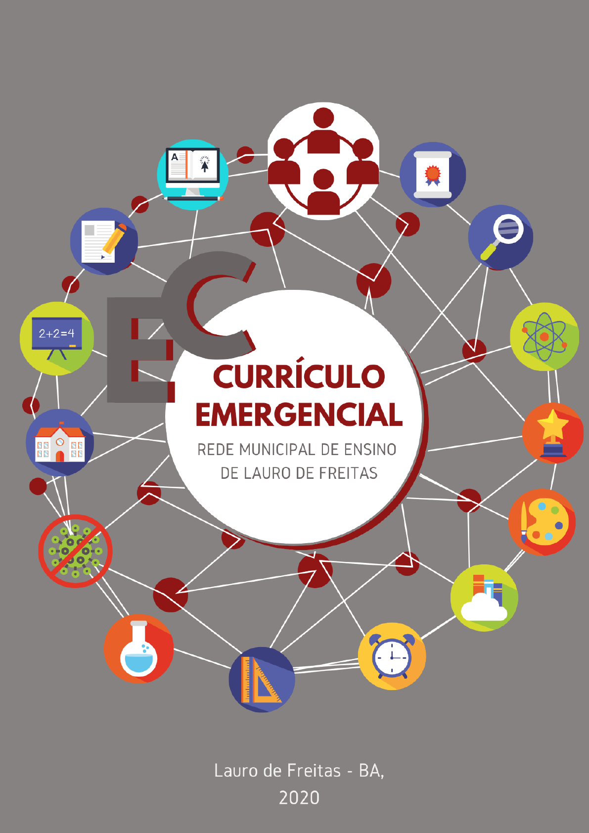 PREFEITURA MUNICIPAL DE LAURO DE FREITAS SECRETARIA MUNICIPAL DE EDUCAÇÃO Coordenação da Educação Básica Currículo Emergencial da Rede Municipal de Ensino de Lauro de Freitas-BA elaborado pela Coordenação da Educação Básica, com o objetivo de definir conteúdo didático aplicado aos estudantes pelas educadoras e educadores da rede, em função do distanciamento físico necessário para controle da proliferação do novo coronavírus. O documento segue as determinações do Ministério da Educação e leva em conta aspectos socioculturais e econômicos da comunidade escolar. Lauro de Freitas – BA, 2020. Grupo de Construção do Currículo Emergencial Equipe articulada pela diretora do Núcleo Articulado da Educação Integral e Formação Continuada, Nadjena Miranda, em parceria com as diretoras dos departamentos do Ensino Fundamental, Maria Helena Santana, da Educação Infantil, Dinalva Moreira da Silva, da Educação de Jovens e Adultos, Maria Renilda Daltro Moura, da Diversidade e Inclusão, Ariosvaldo Menezes, do Núcleo de Educação Especial, Miliane de Lemos Vieira, e da Rede de Proteção à Criança e ao Adolescente, Rebeca Mattos. Qualquer parte desta publicação pode ser reproduzida, desde que citada a fonte. Currículo Emergencial: rede municipal de ensino de Lauro de Freitas Prefeitura Municipal de Lauro de Freitas Prefeita: Moema Gramacho Secretaria Municipal de Educação de Lauro de Freitas (Semed) Secretária: Vânia Galvão Coordenação da Educação Básica Coordenadora: Cristina Kavalkievicz Departamento do Ensino Fundamental Maria Helena Santana Departamento de Educação Infantil Dinalva Moreira da Silva Coordenação da Educação Básica. Currículo emergencial: rede municipal de ensino de Lauro de Freitas. Coordenação da Educação Básica da Secretaria Municipal de Educação. Lauro de Freitas-BA, 2020. 1.Currículo emergencial; 2.Rotina pedagógica; 3.Tutorais didáticos; 4. Aulas remotas; 5. Pandemia da Covid-19. Departamento de Organização Escolar Maria Cristina Guimarães Sodré Núcleo Articulador da Educação Integral e Formação Continuada Nadjena Miranda Núcleo de Projetos Especiais Antônia Alves Batista Departamento das Bibliotecas Escolares Sônia Maria Gomes de Lima Departamento de Educação de Jovens e Adultos Maria Renilda Daltro Moura Rede de Proteção a Criança e ao Adolescente Rebeca Mattos Departamento de Inclusão e Diversidade na Educação Eriosvaldo Menezes Núcleo do Programa de Saúde na Escola Maria Elizabethe Silva Coordenação de Biblioteca Escolar e Infocentro Tamires Silva de Andrade Grupo de Trabalho para elaboração do Currículo Emergencial I – Representantes da Equipe Técnica da Secretaria Municipal de Educação a) Cristina Kavalkievicz - Coordenadora de Educação Básica b) Antônia Alves Batista – Núcleo de Projetos Especiais Andréa Cristina Oliveira dos Santos Antônia Silva dos Santos Evelina Primavera Bernardes Rosângela Costa Soares c) Dinalva Moreira da Silva – Departamento de Educação Infantil Alana de Oliveira Carneiro Débora da Cruz Santos d) Eriosvaldo Menezes - Departamento de Inclusão e Diversidade na Educação Augusto do Amaral Andréia Bispo dos Santos Silva Aline Santos de Oliveira Marcela Mercês Joseane Jesus da Silva Janete Reis e) Índia Clara Santana Nascimento – Professora Efetiva f) Maria Helena Santana - Departamento de Ensino Fundamental Gilvane Araújo de Gusmão Caldas Heloiza Maria Moura da Silva Luciana Santos da Silva Larissa da Cruz Mattos Angelo Soares Castro Leila Patrícia Bispo dos Santos França Ana Paula Novaes Brito Soares Raimundo Fonseca de Jesus Márcia Rocha g) Maria Renilda Daltro – Departamento de Educação de Jovens e Adultos Antonio Cesar do Rosario Guedes Edilene Fonseca Bonfim Fernanda Silva Souza Vale Geferson de Jesus Soares Rita de Cássia Silva Santos Paranhos Tisar Souza da Silva h) Nadjena Miranda dos Santos – Núcleo Articulador da Educação Integral Educação Integral) Franclin Correia da Rocha Maria Helena da S. Reis Santos Simone Requião i) Miliane de Lemos Vieira - Núcleo de Educação Especial Adriana Agudo Rodrigues Miranda Deskson de Castro Almeida Júnior Lucivalda Cerqueira Pinho Lopes Cunha j) Gabriella Santana Santos – Núcleo de Educomunicação II- Representantes das/os Coordenadoras/es Pedagógicos da Rede Municipal de Ensino de Lauro de Freitas: Educação Infantil (Creche e Pré-escola) a) Creche Adriana dos Santos Moreira - Creche Municipal Deputado Paulo Jackson Ana Angelica Berenguer - Creche Espaço Kid’s Anaildes Martins Cruz - Creche Municipal Vilas do Atlântico Maria Rodrigues de Oliveira Andrea Franco Melo - Creche Casulo Vovó Ana Cátia da Silva Alves - Creche Maria Ferreira Maria de Fátima dos Santos Vieira – Centro Educacional Prof. Emerson Palmeira Rosana Oliveira de Jesus Souza – Creche Maria Ferreira Tatiana Moura dos Santos - Creche Novo Mundo b) Pré-Escola Bárbara Laís de Figueiredo Ferreira - Escola Municipal Jovina Moreira Rosa Fabíola Cristina Reis Brito - Escola Novo Tempo Lúcia Regina do Sacramento Costa - Escola Municipal Dom Avelar Brandão Vilela Patrícia dos Reis Santos Alves -Escola Creche Rotary de Quingoma Rosana Damascena - Escola Municipal José dos Santos Paranhos Ensino Fundamental (9 anos) c) Ensino Fundamental I (anos iniciais) Maria das Graças Oliveira Reis - Centro Integrado de Atendimento à Criança e ao Adolescente – CAIC Ulisses Guimarães Fernanda Pereira Alves - Escola Municipal Príncipe da Paz Nildelia Souza Silva - Escola Tia lucia Luciano Alves Soares - Escola Municipal Cidade Nova Luciana Arruda Madureira - Escola Municipal Fenix d) Ensino Fundamental II (anos finais) Maria das Graças Silva Chaves - Escola Municipal Pedro Paranhos Maríndia Moura Arapiraca - Colégio Social de Portão Rosa Meire Marques de Santana - Escola Municipal do Loteamento Santa Júlia Etna Araújo Santos de Moraes - Centro Educacional Municipal Fenix Joselita Fer