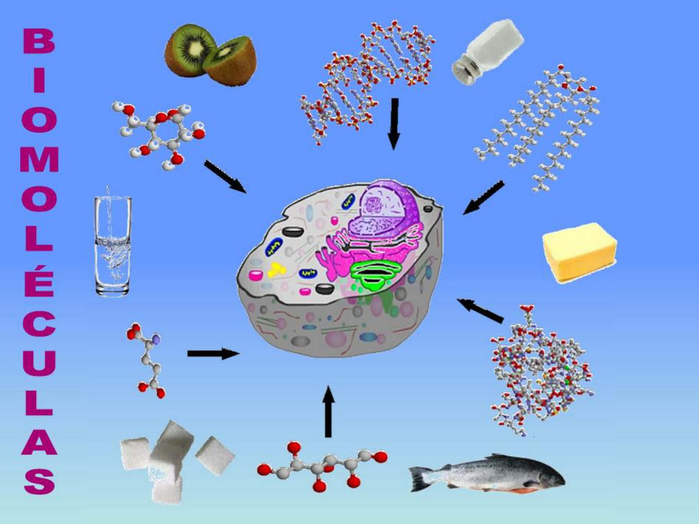 Compreender que a célula também apresenta constituintes básicos. Compreender que o metabolismo celular depende de reacções de síntese e de hidrólise. Conhecer as diversas funções dos constituintes celulares. Identificar a água como o mais importante constituinte da célula. Conhecer as macromoléculas sintetizadas pela célula. Reconhecer que as macromoléculas são polímeros constituídos pela repetição de monómeros. Identificar quimicamente cada um dos polímeros. Conhecer os monómeros que constituem cada uma das biomoléculas. Distinguir os diferentes grupos que compõem os diferentes polímeros. Compreender a importância biológica de cada um dos polímeros. As macromoléculas são constituídas por um reduzido número de elementos químicos (carbono, oxigénio, hidrogénio, azoto, fósforo, cálcio, …) Os seres vivos são compostos por moléculas simples de natureza inorgânica e por moléculas de grande dimensão e complexidade (macromoléculas). Reacção de hidrólise - Dupla decomposição entre determinado composto e a água, com rotura das moléculas desta em H e OH. Síntese de um polímero Pequeno polímero Monómero Remoção da água Hidrólise de um polímero Reacção de síntese - Formação de um composto pela reacção de duas ou mais substâncias orgânicas com eliminação de água ou de outra substância. Adição da água Quebra de ligação Polímero longo Destacam-se as proteínas, que resultam da transferência de informação genética, por realizarem quase todas estas funções. Os constituintes químicos celulares desempenham uma multiplicidade de funções essenciais ao metabolismo do organismos. Água, sais minerais, lípidos e prótidos. Biomoléculas que entram na constituição de componentes do organismo, tais como membranas celulares e sangue. Glícidos, lípidos e prótidos (menor grau). Biomoléculas que são degradadas nos processos de obtenção de energia (ATP) e calor. Prótidos (enzimas). Biomoléculas que intervém como catalisadores de reacções químicas, quer no metabolismo celular, quer em processos extracelulares (digestão). Água, sais minerais e prótidos. Biomoléculas que intervém como agentes que regulam o funcionamento coordenado de órgãos, de sistemas e do organismo como um todo. Ácidos nucleicos. Biomoléculas que garantem a expressão da informação genética e a sua transmissão aos descendentes em todos os seres vivos. Prótidos. Biomoléculas envolvidas no transporte de materiais ao longo da membrana celular e nos organitos membranosos . Principal constituinte molecular dos seres vivos. Molécula polar com alto poder solvente. Actua como reagente químico em várias reacções (hidrólise, oxidação e redução), devido à sua capacidade de ionização. Pontes de Hidrogénio É o meio onde ocorrem todas as reacções celulares (função estrutural). Efectua o transporte de substâncias essenciais para a célula (plasma). Permite a remoção dos resíduos produzidos pela célula (urina). Intervém na regulação da temperatura corporal (suor). Encontra-se na forma salina [CaCO3, Ca3(PO4)2…] e iónica [Ca2+, Cl-, Mg2+,…] Fazem parte da constituição dos ossos (estrutural) e são parte integrante de algumas enzimas (reguladora). Ca2+ CO2- Compostos quaternários de carbono, hidrogénio, oxigénio e azoto. São constituídos por uma unidade básica estrutural – aminoácido. R representa a porção da molécula que difere de aminoácido para aminoácido. Grupo amina Grupo ácido Grupo amina Terminação N Os aminoácidos ligam-se entre si através de ligações peptídicas. Hierarquia estrutural: aminoácido (aa) – peptídos (dipéptidos… polipéptidos) – proteínas. Ligação peptídica Ligação peptídica Terminação C Grupo ácido Os grupos amina e ácido de dois aa reagem para formar uma ligação peptídica, libertando-se uma molécula da água. Pode ter 4 tipos de estrutura dependendo do tipo de aminoácidos que possui, do tamanho da cadeia e da configuração espacial da cadeia polipeptídica. Entram na constituição das membranas celulares (estrutural). As enzimas são proteínas (enzimática). A hemoglobina transporta o oxigénio (transporte). Os músculos possuem proteínas contrácteis (motora). Acção da insulina no organismo (hormonal). A defesa do organismo depende de anticorpos (Imunológica). Compostos ternários de hidrogénio, carbono e oxigénio. A fórmula química geral aplicável a todos os glícidos é Cm(H2O)n (podendo m = n). Estrutura linear e em anel Estrutura em anel Glicose Ribose Glicose Galactose Os monossacarídeos ou oses são as suas unidades estruturais e podem ser classificados atendendo ao número de carbonos (triose, pentose e hexose…). Gliceraldeído Frutose Ribulose Diidroxiacetona Ribose Frutose Hierarquia estrutural: monossacarídeos (glicose, frutose, ribose, …) – dissacarídeos (sacarose, lactose, …) – polissacarídeos (celulose, amido e glicogénio). As suas oses ligam-se entre si através de ligações glicosídicas. Glicose Frutose Glicose Glicose Maltose Sacarose As suas oses ligam-se entre si através de ligações glicosídicas. Ligação glicosídica Amido Celulose Hierarquia estrutural: monossacarídeos (glicose, frutose, ribose, …) – dissacarídeos (sacarose, lactose, …) – polissacarídeos (celulose, amido e glicogénio). Glicogénio Amilose Amilopectina Cloroplasto Amido Glicogénio Amido Mitocôndria Glicogénio Parede celular Células da planta Celulose Microfibras Celulose Quitina Glicose Camadas de polímeros São a base da estrutura de muitos seres vivos. A celulose constitui a parede celular de Plantas e a quitina reforça o exosqueleto dos Artrópodes. Constituem a mais importante fonte de energia do organismo. Através da glicose é possível a nível celular (respiração) produzir energia (ATP). Apresenta solubilidade em solventes orgânicos (benzeno, éter e o clorofórmio). No entanto, são insolúveis em 