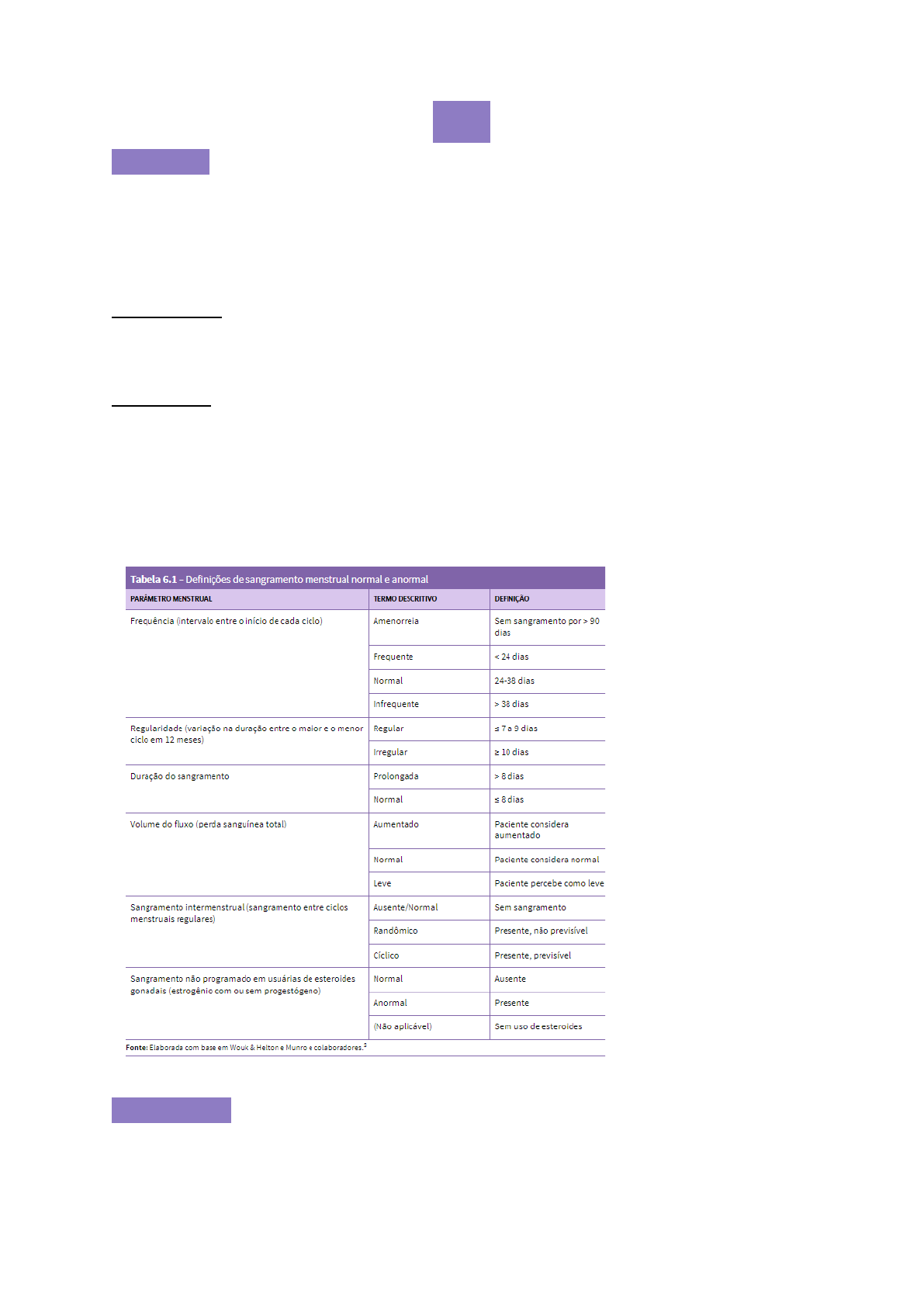 Sangramento Uterino Anormal SUA Introdução Representando uma das principais queixas referidas pelas pacientes em idade reprodutiva, o sangramento uterino anormal (SUA) é um sintoma que descreve o sangramento de características diferentes do padrão menstrual geral da população. SUA crônico - é o sangramento originado do corpo uterino na au sên cia de gravidez, anormal em frequência, regularidade, duração e/ou volume, persistente por mais de 6 meses. Não necessita de intervenção médica imediata. SUA agudo - é definido por episódio de sangramento intenso, na ausência de gravidez, em quantidade suficiente para determinar necessidade de intervenção imediata. Pode ocorrer na vigência de um quadro crônico de SUA. O sangramento entre dois ciclos menstruais regulares é denominado sangramento intermenstrual e pode ocorrer de forma aleatória ou ser recorrente e previsível. Classificação A Figo classifica as causas de SUA nas mulheres em idade reprodutiva e na ausência de gestação sob o acrônimo em inglês “PALM-COEIN”. As causas são divididas em “relacionadas com a anormalidades estruturais uterinas” (PALM) e “não relacionadas com anormalidades estruturais uterinas” (COEIN). A categoria “leiomioma” é subdividida conforme a quantidade de miomas: “ao menos um mioma com componente submucoso” e “miomas que não afetam a cavidade uterina”. Os miomas ainda são subclassificados em nove categorias, de acordo com sua localização. Causa estruturais - PALM Pólipo (SUA-P) São proliferações endometriais que envolvem o estroma e as glândulas, com prevalência de 8 a 35% na população. Nessa classificação, também estão incluídos os pólipos endocervicais. O sangramento intermenstrual é o sintoma mais comum; muitos, entretanto, são assintomáticos. O exame físico costuma ser normal, e os exames de imagempodemsugerir o diagnóstico. Adenomiose (SUA-A) Implantação heterotópica de células endometriais no interior do miométrio. Segundo a Figo, para diagnóstico de adenomiose na classificação “PALM-COEIN”, achados ultrassonográficos de tecido endometrial no interior do miométrio e/ou hiperplasia miometrial são suficientes, sem necessidade de exames complementares. Leiomioma (SUA-L) Tumor fibromuscular do miométrio, de caráter benigno. Os leiomiomas são encontrados ocasionalmente em 80% das mulheres. O mioma com componente submucoso, sobretudo aquele que distorce a cavidade uterina, apresenta mais frequentemente SUA com fluxo intenso. Malignidade (SUA-M) Apesar de incomuns, hiperplasia endometrial atípica e carcinoma de endométrio devem sempre ser aventados em pacientes com SUA, em qualquer idade. Embora a prevalência de câncer de endométrio aumente com a idade, cerca de um quarto dos diagnósticos são feitos antes dos 55 anos. Há alguns fatores de risco maiores (exposição crônica a estrogênio sem oposição com progestógenos, câncer colorretal não polipoide hereditário ou síndrome de Lynch, tumor produtor de estrogênio) e menores (obesidade, nuliparidade, síndrome dos ovários policísticos, infertilidade, menopausa tardia, uso de tamoxifeno, diabetes melito tipo 2, hipertensão, tireoidopatia, doenças da vesícula), os quais devem ser cuidadosamente avaliados em qualquer mulher com SUA. Causas não estruturais - COEIN Coagulopatia (SUA-C) Em 13% das pacientes com SUA, é identificada alguma alteração na coagulação, sendo a doença de von Willebrand a condição mais comum. Uma história de sangramento menstrual intenso ou prolongado desde a adolescência deve levantar a suspeita de coagulopatia. Para as pacientes com rastreio positivo, está indicada investigação laboratorial. Pacientes em regime de anticoagulação associado ao SUA também são classificadas como SUA-C. Disfunções ovulatórias (SUA-O) São representadas por uma ampla variedade de anormalidades menstruais: amenorreia total, sangramento leve e infrequente e episódios de sangramento extremamente aumentado, que, por vezes, requer intervenção de urgência. Se não há ovulação, como consequência, não há produção adequada de progesterona. O endométrio torna-se proliferado e espesso devido à ação do estrogênio sem oposição. Essa hiperproliferação torna-o frágil, o que resulta em sangramento anormal. Ciclos com esse padrão de sangramento correspondem a ciclos anovulatórios, sem instituição de fase lútea. Eles costumam ocorrer nos extremos da vida reprodutiva: nos primeiros anos após a menarca e na perimenopausa. Anormalidades do eixo hipotálamo-hipófise-ovariano (HHO) devidas à sua imaturidade ou a endocrinopatias podem desencadear disfunções ovulatórias e alterar o ciclo menstrual. São elas: síndrome dos ovários policísticos, hipotireoidismo, hiperprolactinemia, estresse, obesidade, anorexia e atividade física extrema. Alterações no eixo HHO causadas por fármacos que modificam os níveis sorológicos de dopamina, como antidepressivos tricíclicos e outros psicofármacos, consequentemente resultam em disfunções ovulatórias e também estão classificadas como SUA-O, apesar do seu caráter iatrogênico. Inicialmente, os distúrbios são estratificados a partir de sua origem anatômica presumida: tipo I (hipotalâmico), II (hipofisário ou ptuitário) ou III (ovariano), sendo que o tipo IV refere-se exclusivamente à síndrome dos ovários policísticos. Após realizada a distinção entre tipos I e III, um segundo nível de estratificação é proposto, de acordo com o mecanismo da disfunção ovulatória. Endometrial (SUA-E) Sangramento anormal que ocorre em periodicidade regular, sugerindo ciclo ovulatório, sem outras causas identificadas. É atribuído a alterações primárias do endométrio, entre elas disfunções no mecanismo de homeostasia local, resultando em sangramento aumentado. O aumento de prostaglandinas e plasminogênio local também pode estar envolvido. O padrão de sangramento in