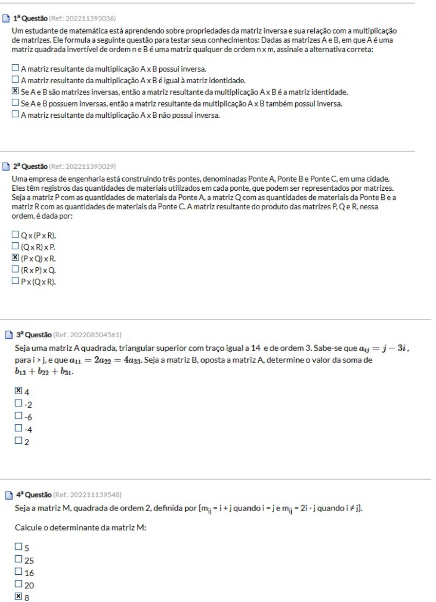 Álgebra Linear UCAM bookmark_border Salvar more_vert ÁLGEBRA LINEAR PROF.: WASHINGTON TAVARES FÓRUM AVALIATIVO Questão 1 1 2 3 Considere as matrize...