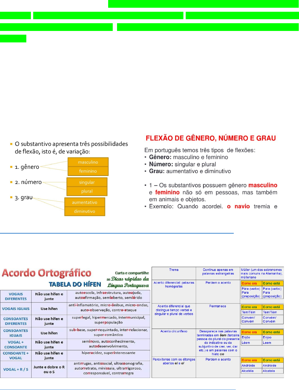 CONTEUDOS PROGRAMATICOS LINGUA PORTUGUESA – MÉDIO E SUPERIOR Compreensão e interpretação de textos. Ortografia oficial, incluindo as alterações promovidas pelo Novo Acordo Ortográfico. Flexão em gênero e número dos substantivos e adjetivos. Acentuação gráfica, incluindo as alterações promovidas pelo Novo Acordo Ortográfico. Emprego de crase. Emprego de conectivos, pronomes e numerais e advérbios. Colocação pronominal. Concordância nominal e verbal. Regência nominal e verbal. Emprego de sinônimos, antônimos, homônimos e parônimos. Sintaxe da oração (período simples: termos essenciais, integrantes e acessórios da oração) e do período (período composto por coordenação e por subordinação). Processos de formação de palavras. Conjugação e emprego de verbos. Empregos dos sinais de pontuação. Obs. poderão ser cobradas questões específicas sobre as alterações promovidas pelo novo Acordo Ortográfico. FLEXÃO DOS SUBSTANTIVOS E ADJETIVOS file:///C:/Users/SantR/Downloads/scribd.vpdfs.com_flexao-dos-substantivos-e-adjetivos.pdf ACENTUAÇÃO GRÁFICA – NOVO ACORDO https://mundoeducacao.uol.com.br/gramatica/acentuacao-no-novo-acordo-ortografico.htm EMPREGO DA CRASE https://www.portugues.com.br/gramatica/cinco-dicas-simples-sobre-uso-crase.html EMPREGO DE CONECTIVOS, PRONOMES E NUMERAIS E ADVÉRBIOS https://centraldefavoritos.com.br/2018/09/24/emprego-de-adjetivos-pronomes-adverbios-e-conjuncoes/ COLOCAÇÃO PRONOMINAL https://www.todamateria.com.br/colocacao-pronominal/ CONCORDANCIA VERBAL E NOMIMAL