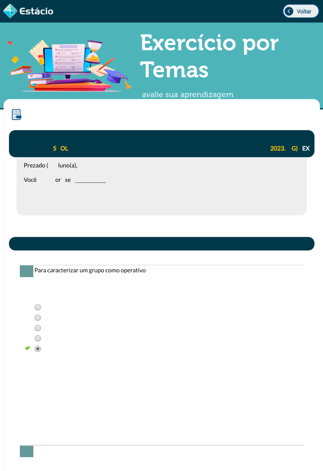 Exercício por Temas avalie sua aprendizagem Para caracterizar um grupo como operativo não basta que haja um objetivo comum entre os integrantes ou que exista como �nalidade uma tarefa, é preciso que as pessoas estabeleçam vínculo entre si. Este vínculo compreende que sempre há �guras internalizadas presentes na relação entre duas pessoas. A respeito dos grupos operativos, marque a alternativa que apresenta o seu principal representante: Alguns acordos e movimentos internacionais foram importantes para suscitar ações e orientar as políticas públicas para o atendimento de alunos com de�ciência com vistas a uma sociedade mais inclusiva. PSICOLOGIA ESCOLAR ROSANA VAZ RIBEIRO 202203383401 PSICOLOGIA ESCOL 2023.2 (G) / EX Prezado (a) Aluno(a), Você fará agora seu EXERCÍCIO! Lembre-se que este exercício é opcional, mas não valerá ponto para sua avaliação. O mesmo será composto de questões de múltipla escolha. Após responde cada questão, você terá acesso ao gabarito comentado e/ou à explicação da mesma. Aproveite para se familiarizar com este modelo de questões que será usado na sua AV e AVS. 5474 - OUTROS DESAFIOS DO PSICÓLOGO ESCOLAR 1. Sigmund Freud. José Bleger. Kurt Lewin. Jorge Visca. Pichón-Rivière. Data Resp.: 19/09/2023 14:37:31 Explicação: Para caracterizar um grupo como operativo, tal como proposto por Pichón-Rivière, não basta que haja um objetivo comum ou que tenha como �nalidade uma tarefa, é preciso que as pessoas estabeleçam vínculo entre si. O vínculo compreende que sempre há �guras internalizadas presentes na relação entre duas pessoas. Ou seja, quando duas pessoas se relacionam, há uma estrutura triangular. 2. javascript:voltar(); javascript:voltar(); A respeito do marco brasileiro importante neste processo, marque a alternativa correta: É possível compreender que a violência é uma manifestação social que se constitui por um conjunto de disposições que re�etem as condições sócio-históricas da estrutura social de um contexto e uma época. Considerando a classi�cação da violência em nível macro, é possível ressaltar a violência de Estado como: A compreensão da psicologia social escolar enfatiza uma estreita relação entre a subjetividade e as culturas locais das unidades escolares. Ou seja, as questões relacionadas com a subjetividade e intersubjetividade devem atravessar o trabalho de um psicólogo escolar. Assinale a alternativa que evidencia corretamente a atuação de um Psicólogo Social escolar: Revolução Francesa. Constituição Federal. Declaração de Jomtien. Declaração de Salamanda. Declaração Universal dos Direitos Humanos. Data Resp.: 19/09/2023 13:23:32 Explicação: Acordos e movimentos internacionais, tais como na Conferência Mundial sobre Educação para Todos, realizada em Jomtien, Tailândia (Declaração de Jomtien) e na Conferência Mundial sobre Necessidades Educativas Especiais: Acesso e Qualidade, realizada pela UNESCO, na Espanha (Declaração de Salamaca), suscitou ações e documentos legais que passaram a orientar as políticas públicas para o atendimento de alunos com de�ciência com vistas a uma sociedade mais inclusiva. Um marco brasileiro importante é a Constituição Federal, 1988. 3. Se relaciona às diferentes formas de manutenção das desigualdades sociais, culturais, de gênero, etárias e étnicas. Se relaciona com a violência física que produz as várias formas de submissão e exploração de umas pessoas pelas outras. É caracterizada quando as agências públicas e seus pro�ssionais abusam do poder legitimamente conferido pelo Estado e violam os direitos da população. Se caracteriza pelas instituições e seus agentes, quando há dissimulação das relações de poder. É caracterizada pela violência física e psicológica que se direciona especialmente ao gênero feminino. Data Resp.: 19/09/2023 14:40:11 Explicação: A violência, assim como as demais manifestações sociais, se constitui por um conjunto de disposições que re�etem as condições sócio-históricas da estrutura social de um contexto e uma época. Considerando a classi�cação da violência em nível macro, é possível ressaltar a violência de Estado é caracterizada quando as agências públicas e seus pro�ssionais abusam do poder legitimamente conferido pelo Estado e violam os direitos da população. 4. Compreende uma atuação voltada para a o uso de testes projetivos e expressivos com grupos de indivíduos com di�culdades de aprendizagens. É uma prática direcionada para a compreensão psicopatológica do sofrimento psíquico dentro de unidades escolares. Uma prática dedicada ao atendimento clínico assistencial e individual especi�camente dentro de Os grupos operativos, propostos por Pichon-Rivière, são aqueles que, ao tomar o conhecimento das di�culdades, o grupo deve pensar a resolutividade de forma racional e consciente a partir dos seus membros. Baseado nessa a�rmação, marque a alternativa correta: De modo a colocar em análise, nos espaços escolares, temáticas como racismo e intolerância religiosa, foi promulgada uma lei importante que se tornou um marco neste processo. A respeito desta lei, marque a alternativa correta: escolas. A atuação deve ser atravessada por práticas individualizantes, mecanicistas e a serviço da medicalização da vida. Se faz necessário romper com técnicas e teorias direcionadas a um indivíduo abstrato, universal e não histórico. Data Resp.: 19/09/2023 14:40:40 Explicação: - A compreensão da psicologia social escolar enfatiza uma estreita relação entre subjetividade e cultura, deste modo questões relacionadas com a subjetividade e intersubjetividade devem atravessar o trabalho de um psicólogo dentro das escolas. Para tal se faz necessário romper com técnicas e teorias direcionadas a um indivíduo abstrato, universal e não histórico. 5. O foco não é ter objetivo comum, basta que os me