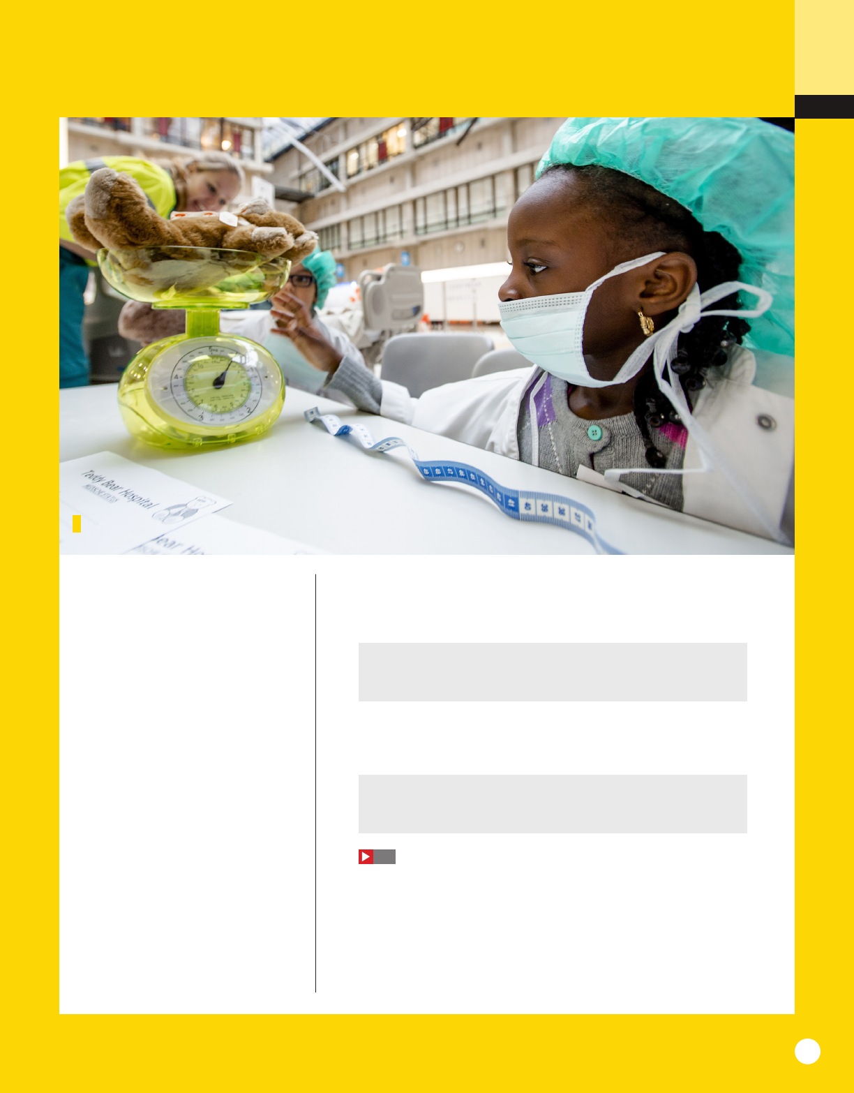 Unit 4 Opportunities 1 Work in pairs. Look at the photo and the caption. What do you think the children are doing? 2 Did you want to do any of these jobs when you were a child? ballet dancer movie star firefighter soccer player pilot police officer rock star scientist train engineer vet 3 Work in pairs. Look at the words that can describe jobs. Are they positive or negative? Which words can describe the jobs in Exercise 2? underpaid boring challenging dangerous dirty enjoyable exciting responsible stressful well-paid 4 27 Work in pairs. Listen to three people talking about their childhood ambitions. Answer the questions for each person. 1 Which job did they want to do when they were young? 2 Which job do they do now or do they plan to do? 3 How do they describe the jobs? 5 Work in pairs. Ask and answer the questions in Exercise 4 about your own ambitions. F E A T U R E S 46 Will a robot take your job? The future of work 48 What’s next? We hear from people facing life-changing decisions. 50 A better life? One reporter’s view of the economic boom in China 54 Everest tourism changed Sherpa lives A video about the people who live near Mount Everest Children playing at an entertainment center 45 Unit 4 Opportunities 4a Will a robot take your job? Reading 4 Work in pairs. Look at the jobs. Do you think a robot could do these jobs? Why or why not? electrician engineer clerical worker nurse taxi driver teacher telemarketer 5 Read the article and check your ideas from Exercise 4. 6 Read the article again and say: 1 which jobs are already done by robots. 2 what the Oxford University study looked at. 3 one job that is at risk, and one that is not. 7 Work in pairs. Find predictions in the article about these jobs. Do the predictions surprise you? Why or why not? 1 factory work 2 engineers 3 taxi drivers Word focus job and work 1 Look at the sentences. How do we use job and work? 1 A lot of jobs are kind of boring, but my job has lots of variety. 2 I’ve worked as a firefighter for ten years—it can be hard work. 2 Complete the sentences with the correct form of job or work. 1 Where do you ? 2 Do you have an interesting ? 3 Is your company good to for? 4 My sister in the same company as me. 5 A: Is your brother around? B: No, he’s at . 3 Work in pairs. Take turns asking and answering questions 1–3 from Exercise 2. If you don’t have a job, imagine you are someone you know. WILL A R BOT TAKE YOUR JOB? How likely is it that you’ll lose your job to a robot? According to Toby Walsh, a professor of Artificial Intelligence, it’s hard to think of a job that a computer won’t be able to do. There are already some factories where all the work is done by robots, and there will certainly be more in the future. But what about teachers, engineers, and electricians? A team at Oxford University studied 350 different professions and suggested that 35 percent of UK jobs might go to robots in the next 20 years. In particular, work that is repetitive1 or involves handling small objects will be at risk of automation.2 On the other hand, jobs that involve helping other people or having original ideas will probably always need people. So journalists, nurses, engineers, and teachers won’t be at risk, but clerical workers and telemarketers may not be so lucky. The Oxford study gives the probability for each of the 350 jobs. Electricians (65 percent) are more at risk than taxi drivers (57 percent). One global taxi company says driverless taxis will be on every street corner eventually. However, a spokesperson for London taxi drivers isn’t convinced. “It won’t happen. Driverless cars will never be able to work on roads at the same time as normal vehicles.” 28 1repetitive (adj) /rɪˈpetətɪv/ repeating the same thing in the same way many times 2automation (n) /ɔːtɒˈmeɪʃən/ the use of machines to do tasks automatically 11 Cross out the option that is not logical to complete the sentences. 1 Hyundai is building a new factory. They may / will / won’t need more workers. 2 Ravi isn’t very good at his job. He might / might not / won’t get a promotion. 3 I’m bored with my job. I think I may / might not / will look for a new one. 4 The office changes are not important. They might not / will / won’t affect our work. 5 Don’t worry about your exam! You may / might / won’t do better than you expect. 12 Write predictions. Use a form from the grammar box and the words below. Then compare your predictions with your partner. Do you agree? 1 My English exam results / (probably / definitely) / good / … My English exam results will probably be good because I’ve worked hard. 2 Finding a good job / (certainly / probably) / easy / … 3 People’s salaries / (definitely / might) / go down / … 4 Unemployment / (definitely / probably) / get better / … 5 Environmental problems / (definitely / may) / get worse / … 6 The amount of free time we have / (certainly / might) / go up / … Speaking my 13 Work in groups. How likely are you to do the following in the next two years? Give reasons. Use future forms from the grammar box in your conversations. Add ideas of your own. 1 buy a motorcycle 2 get a degree 3 get a cat 4 get married 5 look for a job 6 make new friends 7 move to a new house 8 travel to a foreign country A: Are you likely to buy a motorcycle in the next two years? B: Actually, I might buy one this summer. I’d love to take a big road trip across Europe. Grammar predictions PREDICTIONS WITH WILL, MAY, and MIGHT Robots will won’t will certainly / definitely certainly / definitely won’t do these jobs. may (not), might (not) will probably probably won’t For more information and practice, see page 162. 8 Look at the grammar box. Underline the future forms (verb + base form) in the article. 9 Work in pairs. Look at the sentences you have underlined in the article. Which two predictions does the writer think are much less certain than the others? 10 Circle the appropriate words to co