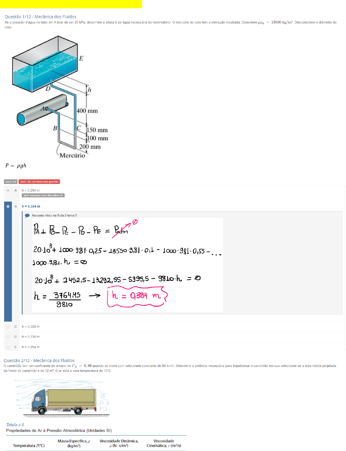 MECÂNICA DOS FLUIDOS – PROVA OBJETIVA (80%)