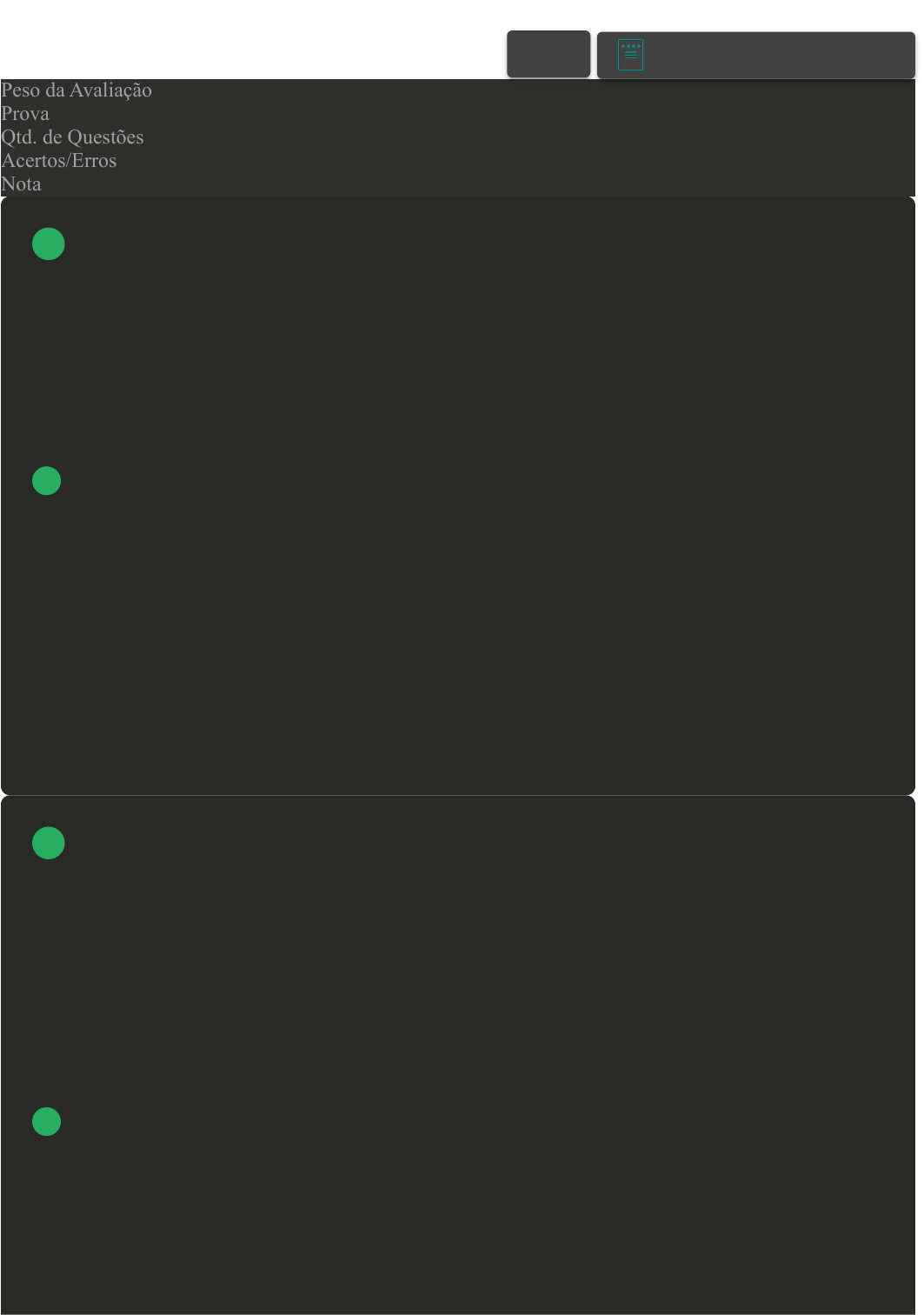 21/09/2023, 14:55 Avaliação II - Individual about:blank 1/6 Prova Impressa GABARITO | Avaliação II - Individual (Cod.:765805) Peso da Avaliação 1,50 Prova 58845059 Qtd. de Questões 10 Acertos/Erros 10/0 Nota 10,00 O coração é um órgão muscular oco, localizado na parte central do tórax, levemente deslocado para a esquerda. Num adulto, sua dimensão aproxima-se de um punho fechado, pesando cerca de 400 gramas. É composto por músculo estriado cardíaco, também chamado de miocárdio, e apresenta quatro cavidades. Como são chamadas as duas cavidades superiores? A Átrios ou aurículas. B Átrios ou ventrículos. C Átrios muscular ou válulas aurículas. D Válvulas ou aurículas. A digestão compreende a quebra do alimento em partículas pequenas, que podem ser absorvidas pelas células para a produção de energia. Há vários órgãos que participam ativamente da digestão, liberando diferentes secreções que são imprescindíveis à quebra dos alimentos. Com relação ao intestino delgado, classifique V para as sentenças verdadeiras e F para as falsas: ( ) É dividido em ceco, cólons, sigmoide e reto. ( ) Ocorre a inserção da bile e do suco pancreático no duodeno. ( ) A absorção de nutrientes ocorre no jejuno, devido à alta vascularização dessa região. ( ) No íleo ocorre a formação das fezes, uma vez que todos os nutrientes já foram absorvidos. Assinale a alternativa que apresenta a sequência CORRETA: A F - V - V - F. B V - V - F - V. C F - F - V - F. VOLTAR A+ Alterar modo de visualização 1 2 21/09/2023, 14:55 Avaliação II - Individual about:blank 2/6 D V - F - F - V. Na puberdade, começam as mudanças no corpo feminino, ocasionadas pela ação do hormônio estrogênio. Essas mudanças resultarão nas características sexuais secundárias, como desenvolvimento das mamas, aparecimento de pêlos e o aumento das genitálias. Sobre os órgãos do sistema reprodutor, associe os itens, utilizando o código a seguir: I- Vagina. II- Ovários. III- Tubas uterinas. IV- Útero. ( ) Armazena os óvulos. ( ) Expulsão da menstruação. ( ) Levam o óvulo ao útero. ( ) Aloja o bebê durante a gestação. Agora, assinale a alternativa que apresenta a sequência CORRETA: A II - I - III - IV. B IV - III - I - II. C I - IV - II - III. D III - II - IV - I. O sistema digestório participa da digestão dos alimentos e o respiratório é responsável pelas trocas gasosas. Apesar de apresentarem funções distintas, há órgãos que podem ser encontrados em ambos os sistemas. Comparando os órgãos que compreendem os sistemas digestório e respiratório, classifique V para as sentenças verdadeiras e F para as falsas: ( ) A boca é responsável pela ingestão de alimentos e também expiração do gás carbônico. ( ) A faringe conduz o ar à laringe e o alimento ao esôfago. ( ) A laringe conduz o ar à laringe e o alimento à traqueia. ( ) O nariz conduz o ar aos pulmões e o alimento à boca. Assinale a alternativa que apresenta a sequência CORRETA: A V - V - F - F. B V - F - F - V. C F - V - V - V. D F - F - V - F. 3 4 21/09/2023, 14:55 Avaliação II - Individual about:blank 3/6 O Sistema Respiratório se resume na entrada de oxigênio (O2) e saída de gás carbônico (CO2). Para que isso ocorra, diversas estruturas são envolvidas. A respeito desse processo, classifique V para as sentenças verdadeiras e F para as falsas: ( ) O sistema respiratório completo é composto por: fossas nasais, faringe, laringe, traqueia, brônquios, bronquíolos e alvéolos, esses três últimos dentro dos pulmões. ( ) O controle da respiração é feito pelo centro respiratório, localizado no bulbo. ( ) Contração da musculatura produz a inspiração; relaxamento produz a expiração. ( ) Pode ocorrer um aumento ou diminuição na eliminação de O2, restabelecendo o pH normal de 7,4. ( ) Hematose é a troca gasosa nos alvéolos pulmonares: o O2 cai na corrente sanguínea e o CO2 é expirado. Assinale a alternativa que apresenta a sequência CORRETA: A F - V - V - F - V. B V - V - V - F - F. C F - F - F - V - V. D F - V - F - V - F. O sangue é composto basicamente por cerca de 34% de elementos figurados (células): eritrócitos, leucócitos e plaquetas; e cerca de 66% de plasma (substância intercelular). Associe os itens, utilizando o código a seguir: I- Eritrócitos. II- Leucócitos. III- Plaquetas. ( ) Também chamados de glóbulos brancos, são células de defesa do organismo. 5 6 21/09/2023, 14:55 Avaliação II - Individual about:blank 4/6 ( ) Também chamados de glóbulos vermelhos, têm a função de transportar o oxigênio. ( ) Também chamados de trombócitos, participam ativamente da coagulação sanguínea. ( ) Dentre as células de defesa, podemos destacar: neutrófilos, eosinófilos, basófilos, linfócitos. Agora, assinale a alternativa que apresenta a sequência CORRETA: A II - I - III - II. B II - III - I - I. C III - I - II - III. D I - II - II - III. A reprodução sexuada envolve dois indivíduos de sexos diferentes e a formação de gametas que se originam por meio da meiose. Nos gametas, estão as informações genéticas dos indivíduos, que se combinam através da fecundação, dando origem a um novo ser que apresenta maior variabilidade genética. Na espécie humana, os gametas que participam da reprodução sexuada são o óvulo e o espermatozoide. Sobre a reprodução humana, classifique V para as sentenças verdadeiras e F para as falsas: ( ) Os órgãos do sistema reprodutor feminino são a vagina, a uretra, o útero, as tubas uterinas e o canal deferente. ( ) O pênis, os testículos, o canal deferente, a próstata, a vesícula seminal e a uretra fazem parte do sistema reprodutor masculino. ( ) O hormônio sexual feminino é a testosterona, e o masculino é a progesterona. ( ) A fecundação acontece quando o óvulo e o espermatozoide se encontram nas tubas uterinas. Assinale a alternativa que apresenta a sequência CORRETA: A V - F - F - V. B F - F 