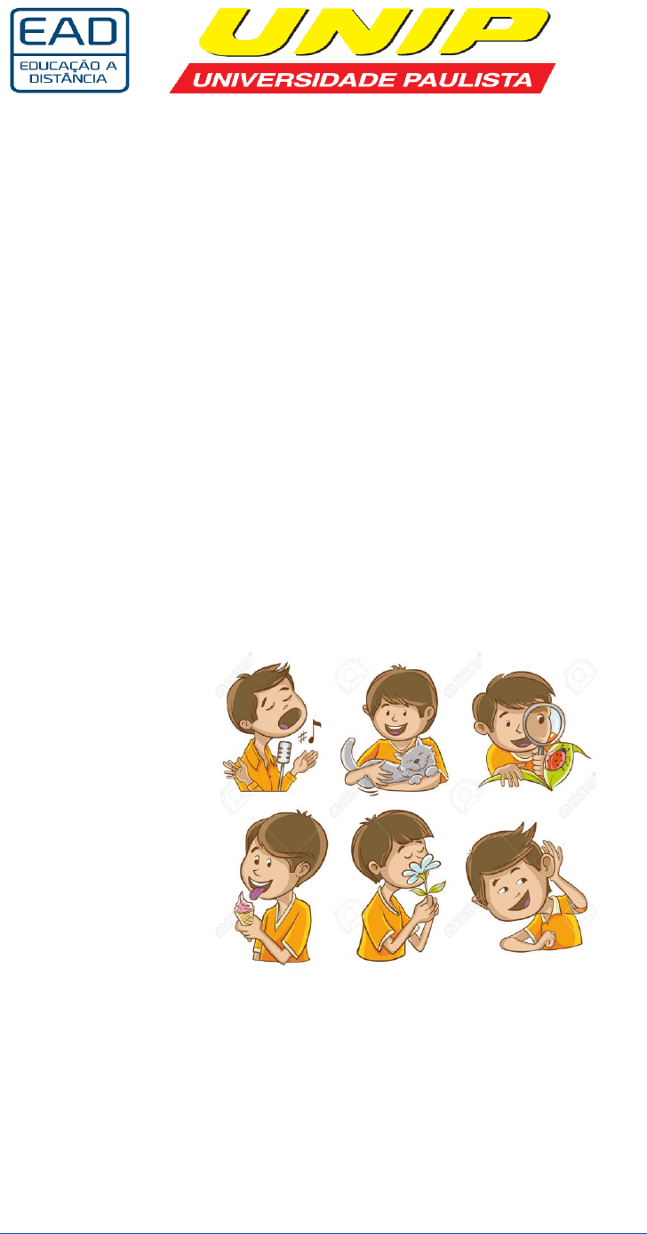 https://unipguarulhos.com.br/wp-content/uploads/2017/10/logo-Unip-claro.png https://1.bp.blogspot.com/x3LOvlbPPAA/VrVAPIJetwI/AAAAAAAAAG8/RgpuqBtztRE/s1600/sentidos. jpg CURSO DE PEDAGOGIA PROJETOS E PRÁTICAS DE AÇÃO PEDAGÓGICA – Ensino Fundamental POSTAGEM 2: ATIVIDADE 2 PROJETO DE INTERVENÇÃO DIDÁTICA OS CINCO SENTIDOS NOME: FLÁVIA FRANCIELE DE JESUS PRADO RA: 0588672 Polo: Monte Mor https://unipguarulhos.com.br/wp-content/uploads/2017/10/logo-Unip-claro.png 2 UNIVERSIDADE PAULISTA-UNIP POLO MONTE MOR – ANO 2022 POLO :MONTE MOR ANO 2022 Sumário 1. Tema ............................................................................................................................................. 2. Situação Problema ........................................................................................................................ 3. Justificativa e Embasamento Teórico .......................................................................................... 4. Público-Alvo .................................................................................................................................. 5. Objetivos ....................................................................................................................................... 6. Percurso Metodológico ............................................................................................................... 7. Recursos ........................................................................................................................................ 8. Cronograma .................................................................................................................................. 9. Avaliação e Produto Final ............................................................................................................. 10. Referências Bibliográficas ............................................................................................................ 3 UNIVERSIDADE PAULISTA-UNIP POLO MONTE MOR – ANO 2022 1. Tema: Sentir e Perceber Título: Os Cinco Sentidos 2. Situação Problema É fundamental que as crianças saibam exatamente a importância de cada Um dos sentidos melhorando assim a percepção do mundo em que vivem Algumas crianças podem ter dificuldade de entender sobre causa e efeito e trabalhar os cinco sentidos pode beneficia-los, com isso desenvolver consciência corporal, autoconhecimento, estimulação motora. Os cinco sentidos é o caminho para que sensações sejam sentidas, com o fim de que mensagens sejam capitadas, para que coisas sejam vistas e o mundo seja compreendido. Trabalhar com os cinco sentidos nos dá a possibilidade de identificar distúrbios em seus órgãos sensoriais, buscando a solução do mesmo juntamente com os responsáveis. 3.Justificativa e Embasamento Teórico É fundamental que o educador explore o sistema sensorial das crianças porque é por meio delas que as crianças tem a chance de enxergar de conhecer e descobrir o mundo de maneiras diferentes. As crianças precisam identificar e reconhecer cada um dos seus órgãos dos sentidos entendendo a função de cada um deles nas nossas vidas, alcançando através desse conhecimento consciência corporal preferências, interação social, são inúmeros os benefícios. É através da experiência sensorial que se obtém todo conhecimento ou seja os cinco sentidos é a porta de entradapara toda e qualquer informação. 4 UNIVERSIDADE PAULISTA-UNIP POLO MONTE MOR – ANO 2022 Disse :SILVA BONFANTI A percepção do mundo para os seres humanos, se dá por meio dos sentidos sensoriais: a audição, o tato, o paladar, o olfato e a visão. A união e o estímulo dos cinco sentidos facilitam o processo de aprendizagem do educando, pois o conhecimento do mundo chega por meio desses sentidos, sendo captado por células sensoriais e posteriormente interpretado pelo cérebro. Há uma relação direta entre os sentidos da criança e o meio ambiente que a cerca. O corpo, portanto, é o principal instrumento de aprendizagem (SILVA; BONFANTI, 2013). Nossos sentidos são as vias de acesso da informação ao cérebro. Segundo Aristóteles (apudChedid, 2016, p. 1), cinco são os sentidos responsáveis por toda codificação sensorial, são eles: visão, audição, tato, olfato e paladar. Para esse filósofo “nada está no intelecto sem antes ter passado pelos sentidos”. Segundo o mesmo autor, por meio dos cinco sentidos o ser humano conhece e reconhece as coisas e pessoas que o cercam. Eles são utilizados em todos os momentos e estão ligados a nós. Conhecê-los é conhecer a nós mesmos. Sendo assim, é na escola, desde a mais tenra idade, que devemos explorá-los por meio das mais diversas atividades lúdicas. Para Montessori (in Nova Escola, 2006, p. 32) o caminho do intelecto passa pelas mãos, porque é por meio do movimento e do toque que as crianças exploram e decodificam o mundo ao seu redor. “A criança ama tocar os objetos para depois poder reconhecê-los’, disse certa vez”. Tafner e Fischer (2004, p. 144) acreditam que corpo e conhecimento possuem uma simbiose, pois o corpo medeia ações que ativam o canal auditivo, visual e outros. Esse corpo sente, recorda e, portanto, precisa ser reconhecido, respeitado e ser mais utilizado para experimentar o conhecimento, pois ele é a linguagem da ação. 5 UNIVERSIDADE PAULISTA-UNIP POLO MONTE MOR – ANO 2022 Mietto (2012, p. 2) sugere que professores utilizem materiais diversificados para explorar os sentidos na escola. Para explorar a visão, indica o uso de “mural, cartazes coloridos, filmes, livros, filmes educativos”. Quanto ao tato, pode-se utilizar “material concreto e objetos de sucata planejados”. Para a audição, as sugestões são “música e bandinhas feitas com material de sucata, sempre com o conteúdo inserido nelas”. 4.Público – Alvo Crianças do Ensino Fundamental da idade de 6 anos. 5.Objetivos Gerais 