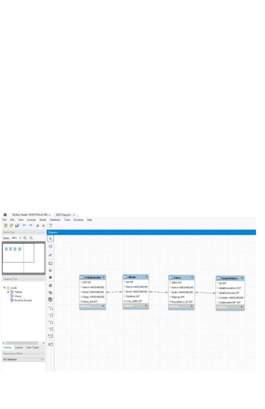 PORTFÓLIO – RELATÓRIO DE AULA PRÁTICA: NOME DA DISCIPLINA: MODELAGEM DE DADOS 1.0 INTRODUÇÃO: O presente trabalho tem como objetivo apresentar exemplos para uso de casos como veremos logo adiante um Diagrama Entidade-Relacionamento (DER) para um sistema de biblioteca de uma universidade que por sua vez realiza empréstimo de seus livros para os alunos da instituição. 2.0 DESENVOLVIMENTO: Diagrama Entidade-Relacionamento (DER) Modelagem no Workbench MySQL, criando um Diagrama Entidade-Relacionamento (DER). O MySQL Workbench é uma ferramenta ideal para pequenos e médios projetos, bem como para quem está iniciando ou já tem experiência com modelagem de banco de dados. 3.0 MÉTODO Utilizando o MySQL Workbench, foi adicionado quatro diagramas contendo os respectivos dados de cada entidade seguida dos seus atributos e em seguida definimos as chaves primárias e secundárias. Por fim, ligamos cada diagrama de forma sequencial 4.0 RESULTADOS: Observamos durante o decorrer deste trabalho apresentado exemplo para uso de banco de dados em uma biblioteca onde era possível alugar os livros contendo os dados dos alunos. Por fim, quero destacar que o exercício proposto atingiu sua finalidade de acordo com o previsto, a utilização da ferramenta Workbench MySQL foi uma novidade inovadora no meu estudo, sendo possível a contribuição para aperfeiçoamento das técnicas e absorção de conhecimento para uso da ferramenta.