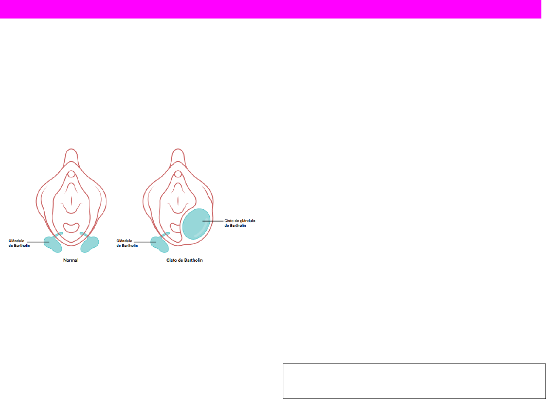 Natalia Quintino Dias Bartholinite As glândulas vestibulares maiores, ou glândulas de Bartholin, são homólogas às glândulas bulbouretrais masculinas ou glândulas de Cooper. Elas estão em contato com os bulbos vestibulares e, frequentemente, estão sobrepostas por suas terminações posteriores. Cada glândula está conectada com o vestíbulo por um ducto de cerca de 2 cm de comprimento. As glândulas contêm células colunares que secretam um muco claro ou esbranquiçado, com propriedades lubrificantes, e são estimuladas por excitação sexual. A contração do bulbo cavernoso que cobre a superfície externa da glândula estimula a secreção. A obstrução dos ductos de Bartholin por material proteináceo ou por inflamação devido à infecção pode levar à formação de cistos de tamanhos variados. Um cisto infectado pode levar a um abscesso, que é drenado cirurgicamente, e os casos recorrentes ou sintomáticos podem requerer marsupialização ou excisão da glândula. Os cistos das glândulas de Bartholin medem cerca de 1 a 4 cm de diâmetro e são, na maioria das vezes, assintomáticos, mas podem causar pressão vaginal ou dispareunia. Quando há abscesso, pode ocorrer um rápido aumento vulvar unilateral e dor significativa. A forma clássica é uma massa flutuante, no introito (de um lado apenas), exterior ao anel himenal, e na região inferior da vulva. Os cistos ou abscessos de Bartholin resultam de uma obstrução na abertura do ducto, seguida da acumulação de muco ou de pus em seu interior. Os abscessos são infecções polimicrobianas causadas por Bacteroides, como Peptostreptococcus, Neisseria gonorrhoeae e Chlamydia trachomatis (menos comum). Um estudo recente mostrou que o patógeno mais comum é a Escherichia coli. Raramente, a obstrução pode ocorrer após cirurgias vaginais, como colporrafia posterior, ou após um câncer na glândula de Bartholin. A incisão e a drenagem isoladas podem fornecer um alívio imediato, porém temporário. No entanto, a menos que se crie um novo óstio para o ducto, as margens da incisão se selarão, ocorrendo novo acúmulo de pus ou muco. A resolução permanente acontece após a marsupialização ou com a incisão e a drenagem, seguidas da colocação de cateter de Word. Caso ocorra nova obstrução, é recomendável repetir um desses procedimentos, em vez de fazer a ressecção da glândula, pois esse procedimento tem maior taxa de morbidade. O esquema antibiótico pode ser feito com: • Sulfametoxazol Trimetropim. • Sulfametoxazol – Trimetropim + Amoxicilina- Clavulanato. • Sulfametoxazol – Trimetropim + Metronidazol. • Doxiciclina + Amoxicilina-Clavulanato. • Doxiciclina + Metronidazol. Incisão e drenagem do ducto da glândula de Bartholin O objetivo é esvaziar a cavidade e criar um trajeto acessório epitelizado para a drenagem da glândula. ● Analgesia e posicionamento: posição de litotomia dorsal, colocação de campos e antissepsia; realizada analgesia local com infiltração da pele com solução aquosa de lidocaína a 1%. ● Drenagem: é feita uma incisão de 1 cm, com bisturi lâmina 11, para perfurar o cisto ou o abscesso. A incisão deve ser feita ao longo da superfície interna da massa, posicionada do lado externo, paralela ao hímen, em 5 ou 7h, sobre a superfície da vulva. Essa posição imita a anatomia normal de abertura do ducto da glândula e evita a criação de um trato fistular para a superfície externa do pequeno lábio. Pode-se obter a cultura da secreção com o auxílio de uma pinça Kelly, que pode ser usada para a lise de aderências ou de loculações. Pós-operatório: ATB: Doxiciclina (deve cobrir aeróbios e anaeróbios) + Banho de assento 2 vezes ao dia + Abstinência sexual. Natalia Quintino Dias Marsupialização Incisão na pele: vertical, de 2 a 3 cm, com bisturi lâmina 15. É feita no vestíbulo, próximo à margem medial do pequeno lábio, cerca de 1 cm lateral e paralelamente ao anel himenal. Deve-se atentar para que a incisão seja feita na pele, sem perfurar a parede do cisto. Incisão no cisto: a parede do cisto é perfurada e a incisão é prolongada com a tesoura. São colocadas pinças de Allis nas margens superior, inferior, medial e lateral. Cada pinça deve segurar e conter a pele e as margens da parede do cisto. As pinças são tracionadas para fora. As pontas de uma pinça Kelly são inseridas na cavidade drenada para a lise de aderências e de loculações. Lava-se a cavidade com SF e aspira-se a região. Fechamento da incisão: as margens da parede do cisto são suturadas na borda da pele adjacente, com pontos isolados, utilizando-se fio 2.0 ou 3.0 de absorção lenta. Bartolinectomia A remoção da glândula pode ser indicada após a recorrência. Além disso, cistos massivos ou multiloculados podem ser manejados com mais facilidade dessa forma. Muitos autores sugerem a remoção de todos os cistos da glândula de Bartholin em mulheres com mais de 40 anos para excluir casos de câncer na glândula, mas a morbidade pode ser alta. Uma opção seria apenas incisão, drenagem e biópsia da parede. Procedimento Incisão na pele: o assistente segura uma gaze com pinça, que é colocada dentro da vagina, e faz pressão em direção externa ao longo da parede posterior do cisto. Isso empurra toda a extensão do cisto para fora. Os dedos do cirurgião retraem o pequeno lábio lateralmente e expõem a superfície anterior do cisto. Uma incisão linear que estende o comprimento do cisto é feita no vestíbulo, próximo à margem medial do pequeno lábio, cerca de 1 cm lateral e paralelamente ao anel himenal. Deve-se cuidar para que a incisão seja feita na pele, sem perfurar a parede do cisto. São colocadas pinças de Allis nas margens mediais da pele, que são tracionadas para fora, em direção ao lábio contralateral. Dissecção do cisto: deve ser iniciada em sua parte mais inferior e ser direcionada superiormente, já que a principal estrutura vascular
