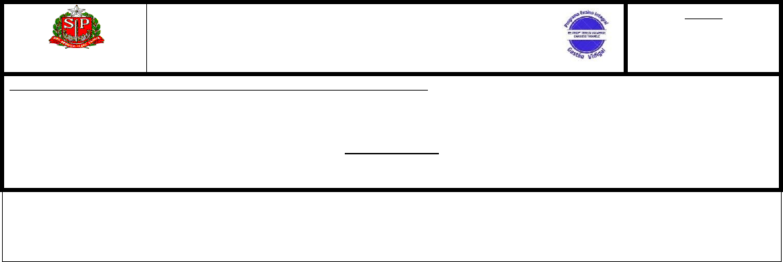 DIRETORIA DE ENSINO - REGIÃO DE VOTUPORANGA E. E. PROFª TEREZA VALVERDE CARDOSO TIRAPELE NOTA: _______________ Avaliação Interna do 3º Bimestre – Ensino Fundamental - Anos Finais DISCIPLINA: Educação Física PROFESSOR (A): Camila Caetano Nome do (a) aluno (a): _____________________________________________________ Ano/série: __________ Data: ___ /___ / 2023 INSTRUÇÕES: · Leia com atenção todas as questões e não deixe de responder nenhuma delas. Lembre-se que você é capaz! HABILIDADES: (EF06EF23*) Identificar as capacidades físicas predominantemente mobilizadas na prática dos esportes e da ginástica, relacionando a melhoria do desempenho ao desenvolvimento das mesmas. (EF06EF25*) Identificar e diferenciar exercício físico de atividade física. CONTEÚDO: CAPACIDADES FÍSICA Capacidades Físicas são definidas como todo atributo físico treinável num organismo humano. Em outras palavras, são todas as qualidades físicas motoras passíveis de treinamento comumente classificadas em diversos tipos. Muitas vezes, deficiências em algumas capacidades físicas podem levar uma pessoa a experimentar dificuldades para participar de certas manifestações da Cultura de Movimento. É por meio das capacidades físicas que se conseguem executar ações motoras, desde as mais simples às mais complexas (andar, correr, saltar, nadar, etc). O fato de ser mais veloz, mais flexível ou mais forte tem uma origem hereditária, transmissível de pais para filhos, mas também tem a ver com a forma como vamos desenvolvendo/treinando as referidas capacidades ao longo dos anos. RESPONDA: 1- Quais são as qualidades físicas motoras que vão definir as Capacidades Físicas? a- Agilidade, Flexibilidade, Força, Resistência, Velocidade, Equilíbrio e Coordenação motora. b- Flexibilidade, Força, Resistência, Velocidade, Equilíbrio e Corpo sarados. c- Força, Boa aparência, Boa estatura, Resistência, Velocidade e Coordenação motora d- Nenhuma das alternativas 2- Cite duas atividades que requerem: Agilidade: __________________________________________________________________________________ Velocidade: __________________________________________________________________________________ Força: __________________________________________________________________________________ Resistência: __________________________________________________________________________________ Flexibilidade: __________________________________________________________________________________ 3- Escreva se a atividade mostrada é sobre resistência, flexibilidade, força, velocidade ou agilidade: _________________ ____________________ _________________ ____________________ 4- Como são definidas as Capacidades Físicas? a- Como todo atributo físico treinável num organismo humano. Em outras palavras, são todas as qualidades físicas motoras passíveis de treinamento. b- Somente a agilidade pode ser considerável como atributo da capacidade física, pois é possível mensurar toda a performance do atleta, num treinamento de alto rendimento. c- A velocidade, a resistência e a força podem ser consideráveis como atributos da capacidade física, pois é possível mensurar toda a performance do atleta, num treinamento de alto rendimento. d- Nenhuma das alternativas 5- A prática de exercícios físicos é fundamental para a manutenção da saúde. Antes de inicia-los, é indicado fazer um bom alongamento, que resulta numa maior amplitude de movimentos de uma determinada articulação. Nos exercícios de alongamento, qual capacidade física está envolvida: a) Força b) Resistência c) Velocidade d) Flexibilidade 6- Coloque (V) para verdadeiro e (F) para falso. ( ) A força aumenta desde o nascimento até a idade adulta, diminuindo na velhice. ( ) A flexibilidade e o alongamento são a mesma capacidade física. ( ) A Corrida de São Silvestre é uma prova de resistência. ( ) O pique bandeira é uma atividade recreativa que desenvolve a agilidade. ( ) Para ficar em pé não necessitamos de equilíbrio. ( ) Os meninos, em geral, têm mais flexibilidade do que as meninas. ( ) A prova dos 100 metros rasos do atletismo é uma prova de velocidade. ( ) Precisamos de equilíbrio para andar de bicicleta, patins e skate. 7- Uma pessoa que está quase sempre sentada e não exercita o corpo, conservando-o inativo, é chamado de: a) doente. b) esportista. c) envelhecido. d) sedentário 8- Diversas pessoas preferem uma vida sem se movimentar e acabam ficando inativos, e com isso, acarretam grande prejuízo à saúde. Qual dos problemas abaixo está relacionado diretamente a esse tipo de comportamento? a) A utilização de dispositivos tecnológicos. b) Alimentação rica em gorduras saturadas. c) A falta de exercício físico regularmente. d) As alterações de humor constantes. 9- O que é atividade física é: a) Qualquer atividade que para ser executada precise da movimentação contínua do corpo; b) Exercício regulado, que compõe um treinamento ou faz parte uma prática esportiva; c) Nenhuma das alternativas. 10- Quando uma pessoa caminha com seu animal de estimação ela está: a) Realizando uma atividade física; b) Realizando um exercício físico; c) Nenhuma das alternativas. Boa Prova!!!