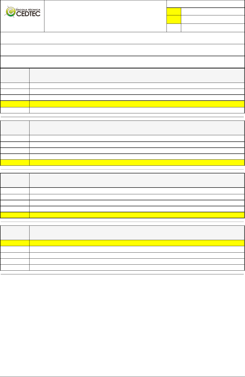 Pincel Atômico - 24/07/2023 13:45:48 1/1 WEVERSON BATISTA DOS SANTOS Exercício Caminho do Conhecimento - Etapa 8 (22352) Atividade finalizada em 22/07/2023 23:30:31 (1072923 / 1) LEGENDA Resposta correta na questão # Resposta correta - Questão Anulada X Resposta selecionada pelo Aluno Disciplina: SEGURANÇA NO TRABALHO [773157] - Avaliação com 4 questões, com o peso total de 6,50 pontos [capítulos - 114] Turma: Curso Técnico: Refrigeração e Climatização - Grupo: EAD - 01/23 - EAD REF [79216] Aluno(a): 91410500 - WEVERSON BATISTA DOS SANTOS - Respondeu 1 questões corretas, obtendo um total de 1,63 pontos como nota [350168_136124] Questão 001 As diferentes Classes de Incêndio são dividas de acordo com o material combustível. Ao dividir-se as Classes de Incêndio, determina-se o tipo de extintor que deve ser usado no combate ao fogo. São características do fogo classe A, exceto: Caracteriza-se pelo fogo em materiais sólidos. Após a queima sobram resíduos, como brasas e cinzas. Sua extinção pode ser feita pelo método de resfriamento. X Gasolina é um exemplo de fogo classe A. Queima em superfície e em profundidade. [350167_136126] Questão 002 As diferentes Classes de Incêndio são dividas de acordo com o material combustível. Ao dividir-se as Classes de Incêndio, determina-se o tipo de extintor que deve ser usado no combate ao fogo. São características do fogo classe B, exceto: X Caracteriza-se pelo fogo em combustíveis líquidos inflamáveis. Sua extinção é feita pelo método de abafamento. Queima em superfície. Após a queima não deixa resíduos. Madeira é um exemplo de fogo classe B. [350167_136130] Questão 003 A prevenção de incêndio é a aplicação de normas e leis de prevenção, descritas em qual Norma Regulamentadora do Ministério do Trabalho? X NR 15 NR 33 NR 16 NR 35 NR 23 [350168_136115] Questão 004 São atribuições da Comissão Interna de Prevenção de Acidentes (CIPA), EXCETO: Definir os EPIs que devem ser utilizados para o desenvolvimento das atividades. X Elaborar o Mapa de Riscos. Realizar um relatório sobre as condições de trabalho do espaço, com todas as observações necessárias. Organizar uma vez por ano a Semana Interna de Prevenção de Acidente de Trabalho (SIPAT). Focar opções de prevenção aos acidentes.