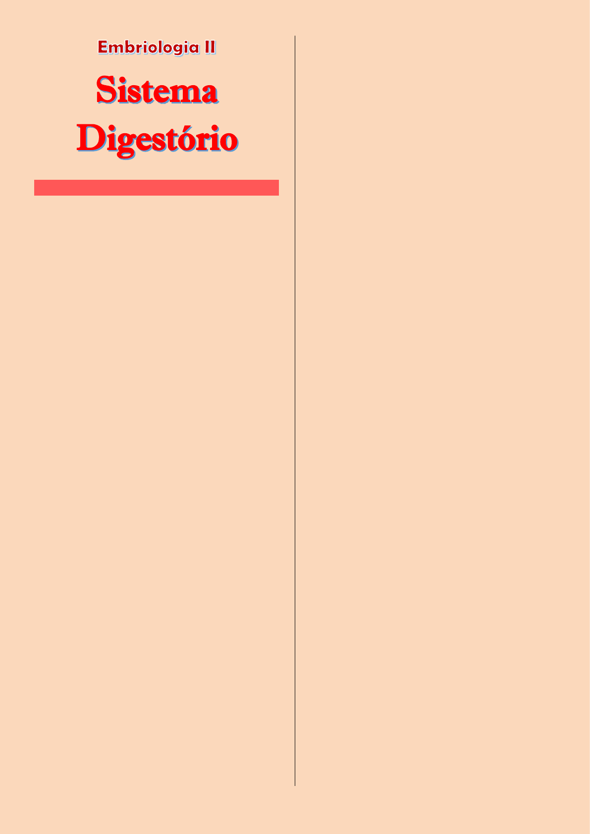 Sistema Questões 1. Quais são as duas membranas que limitam o intestino primitivo, respectivamente, cefalicamente e caudalmente? ▪ R: A membrana bucofaríngea limita cefalicamente, e a membrana cloacal limita caudalmente o intestino primitivo. 2. Qual é a principal origem do epitélio e das glândulas do trato digestivo? ▪ R: A principal origem do epitélio e das glândulas do trato digestivo é o endoderma. 3. De onde derivam o epitélio das extremidades do trato digestivo? ▪ R: O epitélio das extremidades do trato digestivo deriva do ectoderma do estomodeu (boca primitiva) e do proctodeu (fosseta anal). 4. Quais são os componentes do mesênquima esplâncnico? ▪ R: O mesênquima esplâncnico é composto por tecido conjuntivo, músculo liso e outras camadas da parede do trato digestivo. 5. Quantas partes o intestino primitivo é dividido e quais são elas? ▪ R: O intestino primitivo é dividido em três partes: intestino anterior, intestino médio e intestino posterior. 6. Qual a importância da membrana bucofaríngea no desenvolvimento do sistema digestório? ▪ R: A membrana bucofaríngea limita a parte cefálica do intestino primitivo e desempenha um papel crucial no desenvolvimento da boca e das estruturas associadas ao trato digestivo. 7. O que é o estomodeu e qual é o seu papel no desenvolvimento do sistema digestório? ▪ R: O estomodeu é a boca primitiva, e seu papel no desenvolvimento do sistema digestório está relacionado à formação das estruturas iniciais do trato digestivo, como a boca e parte do esôfago. 8. Qual é a função da membrana cloacal no desenvolvimento do sistema digestório? ▪ R: A membrana cloacal limita a parte caudal do intestino primitivo e está relacionada ao desenvolvimento da região anal e das estruturas associadas ao sistema excretor e reprodutor. 9. Quais são os tipos de tecidos que compõem as camadas da parede do trato digestivo derivados do mesênquima esplâncnico? ▪ R: As camadas da parede do trato digestivo derivadas do mesênquima esplâncnico incluem tecido conjuntivo, músculo liso e outros componentes. 10. Como a divisão do intestino primitivo em três partes (intestino anterior, médio e posterior) é relevante para o desenvolvimento do sistema digestório? ▪ R: A divisão do intestino primitivo em três partes é relevante porque cada parte dá origem a diferentes partes do sistema digestório, incluindo a boca, o estômago, o intestino delgado e o intestino grosso. Essa divisão é fundamental para a formação das estruturas específicas do trato digestivo. 11. Quais estruturas são derivadas do intestino anterior no desenvolvimento embrionário? ▪ R: Faringe primitiva, esôfago, estômago, duodeno, fígado, pâncreas e aparelho biliar são derivados do intestino anterior. 12. Como o esôfago se separa da traqueia durante o desenvolvimento embrionário? ▪ R: O esôfago se separa da traqueia devido à formação do septo traqueoesofágico. 13. Qual é a origem do músculo estriado esquelético no terço superior do esôfago? ▪ R: O músculo estriado esquelético no terço superior do esôfago é derivado do mesênquima dos 4o ao 6o arcos faríngeos. 14. Como o estômago muda de forma e posição durante o desenvolvimento embrionário? ▪ R: O estômago muda de forma devido ao crescimento desigual de suas paredes, com a parede dorsal crescendo mais rapidamente que a ventral, formando a grande e a pequena curvatura do estômago. Ele também muda de posição por uma rotação de 90 graus em torno de seu eixo longitudinal. 15. Qual a importância da mudança de posição do estômago durante o desenvolvimento embrionário? ▪ R: A mudança de posição do estômago é importante para a correta localização e orientação dos órgãos circundantes, facilitando a formação da anatomia digestiva adequada. 16. Quais estruturas compõem o duodeno e qual é a origem do seu mesênquima? ▪ R: O duodeno é formado pela parte caudal do intestino anterior, parte cefálica do intestino médio e pelo mesênquima esplâncnico. 17. O que acontece com a luz do duodeno durante o desenvolvimento embrionário? ▪ R: Durante a sexta semana do desenvolvimento embrionário, a luz do duodeno oblitera devido à proliferação das células epiteliais, mas ela recanaliza no final do desenvolvimento embrionário para formar a estrutura funcional do duodeno. 18. Quais estruturas são derivadas do intestino médio durante o desenvolvimento embrionário? ▪ R: O intestino médio dá origem ao intestino delgado (incluindo a maior parte do duodeno), ceco, apêndice vermiforme, colon ascendente e metade direita até dois terços do cólon transverso. 19. O que é a "alça do intestino médio" e qual é a sua importância durante o desenvolvimento embrionário? ▪ R: A "alça do intestino médio" é uma alça intestinal ventral em forma de U formada pelo alongamento do intestino médio. Essa alça se projeta para o cordão umbilical e dá início a uma hérnia umbilical fisiológica. 20. Quais estruturas são derivadas do intestino posterior durante o desenvolvimento embrionário? ▪ R: O intestino posterior dá origem ao terço esquerdo até a metade do cólon transverso, cólon descendente, cólon sigmoide, reto, parte superior do canal anal, epitélio da bexiga urinária e a maior parte da uretra. 21. O que é a cloaca e qual é o seu papel no desenvolvimento embrionário? ▪ R: A cloaca é uma cavidade terminal do intestino posterior que está revestida por endoderma e está em contato com o ectoderma da superfície externa na membrana cloacal. Ela desempenha um papel importante no desenvolvimento do sistema urinário e do sistema digestório inferior. 22. O que divide a cloaca em seio urogenital e reto durante o desenvolvimento embrionário? ▪ R: O septo urorretal divide a cloaca em seio urogenital e reto. 23. Quando ocorre a ruptura da membrana anal durante o desenvolvimento embrionário? ▪ R: A membrana anal se ro