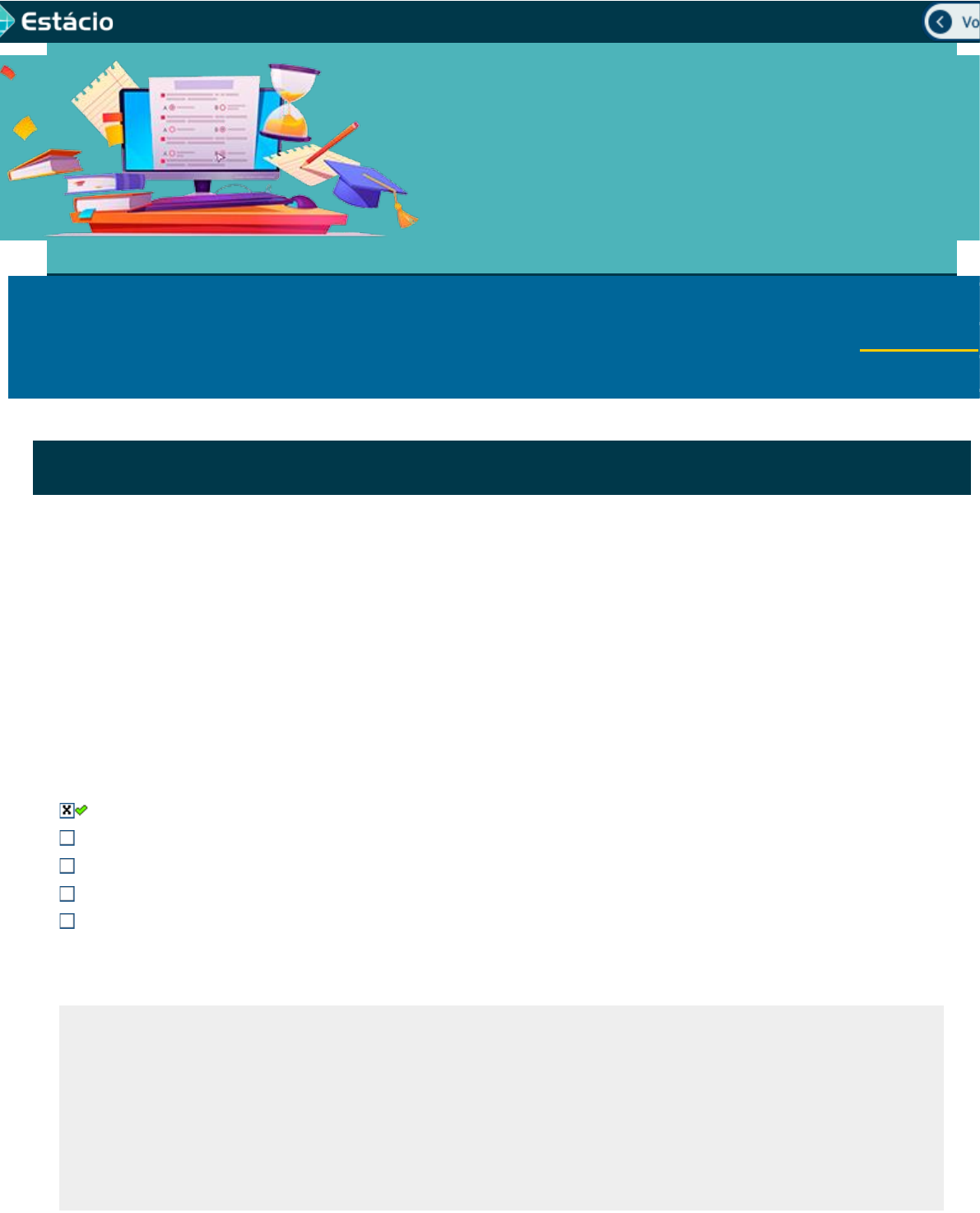 Avaliando Aprendizado Teste seu conhecimento acumulado Disc.: GESTÃO FARMACÊUTICA E FARMÁCIA HOSPITALAR Aluno(a): BRUNO GUIMARAES PERES 202001087567 Acertos: 1,8 de 2,0 20/09/2023 1a Questão Acerto: 0,2 / 0,2 Os líderes carismáticos têm a capacidade de influenciar seus seguidores porque: I- declaram uma visão que cria senso de pertencimento e comunidade, conquistando as pessoas e garantindo seu compromisso; II- valorizam a manutenção dos costumes, hábitos e crenças perpetuados pela tradição; III- seu poder legítimo é pautado pelas normas e procedimentos legais que regem o modelo de organização formal. É correto o que se afirma em: I, apenas. I e III, apenas. I, II e III. III, apenas. II e III, apenas Respondido em 20/09/2023 19:50:43 Explicação: I- declaram uma visão que cria senso de pertencimento e comunidade, conquistando as pessoas e garantindo seu compromisso. Correto - No caso do líder carismático prevalece o modelo de autoridade pautado no carisma. A obediência deve-se à influência ideológica e à devoção efetiva, que se manifestam por meio da identificação com valores, ideias e propósitos comuns. Surge então a figura do herói, aquele que respeitamos e adoramos a qualquer preço. https://simulado.estacio.br/bdq_simulados_ava1_ava2_ead_resultado.asp?cod_hist_prova=316761356&cod_prova=6643695422&f_cod_disc= https://simulado.estacio.br/alunos/inicio.asp javascript:voltar(); II- valorizam a manutenção dos costumes, hábitos e crenças perpetuados pela tradição. Incorreto - Uma autoridade baseada em costumes, hábitos e crenças perpetuados pela tradição é um líder de uma sociedade tradicional e não carismática. III- seu poder legítimo é pautado pelas normas e procedimentos legais que regem o modelo de organização formal. - Um poder pautado em normas e procedimentos legais é o que prevalece em uma sociedade burocrática e não carismática. 2a Questão Acerto: 0,2 / 0,2 Em uma sociedade empresária foi realizada a análise SWOT, com isso, foi constatada uma crise sanitária (pandemia) capaz de provocar prejuízos financeiros em virtude da legislação que obrigou o fechamento das empresas por um longo período. Com base nesse diagnóstico da análise SWOT, pode-se afirmar que se trata de um caso de fraqueza. ameaça. compliance. oportunidade. força. Respondido em 20/09/2023 19:49:58 Explicação: As ameaças representam os cenários alheios à organização que podem trazer-lhe algum tipo de risco ou danos. São aqueles produtos ou serviços ofertados por concorrentes que se assemelham às atividades da empresa. Elas também podem indicar as possibilidades de novos entrantes no mercado ou de novas regulações e leis. 3a Questão Acerto: 0,2 / 0,2 Luiza e colaboradores (1999) discutem a aquisição de medicamentos no setor público, abordando as duas principais vertentes da questão: qualidade e custo. Sobre esse processo, julgue as assertivas abaixo: I - Em hospitais públicos, as aquisições se dão em processos licitatórios. II - É preciso atenção ao princípio da isonomia. Sobre as assertivas acima, é correto afirmar que: LUIZA, V. L.; CASTRO, C. G. S. O. de; NUNES, J. M. Aquisição de medicamentos no setor público: o binômio qualidade - custo. Cadernos de Saúde Pública [online]. 1999, v. 15, n. 4, p. 769-776. A assertiva II é fundamental para que a assertiva I seja cumprida. Ambas as assertivas são falsas. Assertiva I é falsa e assertiva II é verdadeira. Não dizem respeito à aquisição de medicamentos. Assertiva I é verdadeira e assertiva II é falsa. Respondido em 20/09/2023 19:51:13 Explicação: Ambas as assertivas são verdadeiras, e para que os processos licitatórios sejam idôneos, é preciso assegurar o princípio da isonomia, uma vez que este permite que as empresas que competem pelo contrato que será prestado ao serviço público tenham que cumprir as mesmas regras e obedeçam a parâmetros mínimos iguais, competindo em igualdade. 4a Questão Acerto: 0,2 / 0,2 Diante do intenso contato do farmacêutico com demais membros da equipe multiprofissional, muitas dúvidas sobre medicamentos surgem diariamente, assim parte fundamental do serviço clínico farmacêutico é baseada em educação em saúde e/ou educação continuada. Para isso são necessárias algumas ferramentas fundamentais como: Materiais de escritório de qualidade e tecnologia avançada, como tablets e notebooks Acesso a bancos de dados, bibliotecas, livros ou mesmo software que possibilitem consultar informações atualizadas Boletins informativos e palestras de acesso livre para todos os colaboradores do hospital Tabelas impressas sobre volumes de diluição e estabilidade físico-química de fármacos citostáticos Biblioteca virtual com artigos científicos em várias línguas Respondido em 20/09/2023 20:00:53 Explicação: Parte fundamental do serviço clínico farmacêutico é baseada em educação em saúde e/ou educação continuada. Portanto, é importantíssimo o acesso a bancos de dados, bibliotecas, livros ou mesmo software que possibilitem consultar informações atualizadas e esclarecedoras para o garantir que condutas e dúvidas serão guiadas pela medicina baseada em evidência. Isso permite a uniformidade de ações entre a equipe de farmacêuticos, independente da opinião ou vivência profissional individual 5a Questão Acerto: 0,2 / 0,2 O desenvolvimento de uma equipe é um processo que deve ser constantemente aprimorado, para que se consiga chegar ao patamar de um ambiente de trabalho de alto desempenho, cujas características são: I- a propensão para aprender e compartilhar; II- a comunicação aberta uma vez que todos devem ter acesso às informações; III- a capacidade de negociar sem fazer concessões, uma vez que havendo tal disposição, ganha-se dos dois lados. Está(ão) correto(s): apenas os itens I e II apenas os itens I e III. apenas o item II. apenas os itens II e III. os itens I, II e III. Respondido e