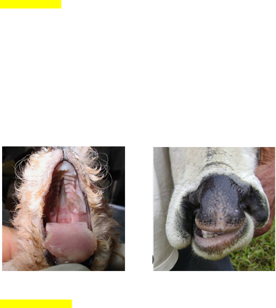 UNIVERSIDADE FEDERAL DO SUL E SUDESTE DO PARÁ INSTITUTO DE ENSINO TROPICO UMIDO DISCIPLINA ANATOMIA PATOLOGICA SISTEMA DIGESTORIO: MÁ FORMAÇÕES: Alterações congênitas no trato respiratório e digestório: · Palatosquise ou fenda palatina: Má formação na fenda palatina, pode ser congênita ou pode ser adquirida por fatores ambientais, como por exemplo a ingestão de plantas toxicas como a Conium macularum, quando ingerida por leitões ou cordeiros podem causar essas alterações, ou em gatas gestantes tratadas com griseofulvina, a ninhada pode nascer com essa alteração. Animais com palatosquise podem sofrer com problemas de apreensão, mastigação e deglutição, além disso, podem aspirar conteúdo alimentar e desenvolver pneumonia aspirativa. · Queilosquise: E alteração no lábio e/ou fenda labial causada pela não fusão do processo maxilar e do processo nasal medial, pode ser uni ou bilateral. Pode ocorre isoladamente ou em associação com a palatosquise. Queilosquise: Fenda labial Palatosquise: fenda palatina Doenças inflamatórias: · Estomatites: É uma inflamação na cavidade oral, pode ser difusa ou localizada, que são denominadas de acordo com a região acometida, por exemplo, gengiva, gengivite, faringe, faringite. · Complexo gengivite-estomatite: E uma inflamação crônica intensa da gengiva e da mucosa oral com a presença de ulcerações que ocorrem devido a uma reação exagerada do organismo ao acúmulo da placa bacteriana e do cálculo dental na doença periodontal. Não se sabe a etiopatogenia da infecção (idiopático), mas pode está associada a diversas suspeitas, como a presença de bactérias, fatores nutricionais. Observa-se uma hiperemia ao redor dos dentes. É comumente ocasionada em felinos. Complexo gengivite-estomatite Virose: · Febre aftosa: · É uma doença altamente contagiosa que afeta principalmente animais de casco fendido, como bovinos, suínos, ovinos e caprinos. Ela é causada pelo vírus da febre aftosa (FMDV), que pertence à família Picornaviridae. · Principalmente bovinos lactantes · Os sinais clínicos mais proeminentes em bovinos são diminuição na ingestão de alimentos e água, febre e claudicação, com rápida perda de peso · Macroscopicamente podemos observar vesículas integras ou rompidas, formação de ulceras na cavidade oral, especialmente na língua, focinho, bandas coronarianas dos cascos, tetas e prepúcio. · Patogenia: O vírus da febre aftosa entra pelas vias respiratória, após a inalação do vírus, ocorre a multiplicação na faringe e boca, o vírus se move par aos gânglios linfáticos e, parti daí, entra na corrente sanguínea (viremia). Causa lesões caracterizadas de vesículas, de forma grosseira, são bolas repleta de liquido, aprecem principalmente na boca, casco, tetas e prepúcio.Febre aftosa: Formação de vesículas na língua · Estomatite vesicular: · A estomatite vesicular é um arbovirose (transmitida por mosquito) causada pelo vírus da estomatite vesicular, que pertence ao gênero Vesiculovirus. · Acomete principalmente equinos e suínos. · Macrospicamente: são parecidas com a febre aftosa, com formação de vesículas que se rompem facilmente, formando erosões e ulceras em região com tecido epitelial pavimentoso estratificado. Os animais param de se alimentar em decorrência das lesões doloridas. · Zoonose. · Patogenia: Idiopática · Transmissão ocorre através de uma picada de inseto hematófagos, especialmente pelo mosca-da-areia (Lutzomya shannoni). · Ectima contagiosa: · Conhecida como dermatite pústula contagiosa, causada pelo vírus parapoxvirus ovino, família Paxviridae. · Infecta principalmente ovinos e caprinos jovens. · Macrospicamente: podemos observar lesões proliferativa crostosas e ulceradas na comissura dos lábios, no focinho ou nas narinas. · A transmissão ocorre por meio de pequenas escoriações na pele em contato com fômites, ou por artrópodes que estejam carregando o vírus. Ectima contagiosa: Presença de lesões proliferativas com crostas e ulceras. Bacterioses do sistema digestório: · Actinobacilose: · É uma doença crônica que apresenta estomatite profunda · Agente etiológico: Actinobacillus ligieresii · E uma bactéria gram-negativa, que esta presente na microbiota normal da cavidade oral. Quando há uma lesão da mucosa oral, esse organismo tem acesso a estruturas mais profundas, nas quais pode provocar uma reação inflamatória crônica. · Conhecida como “língua de pau” devido alto fibroplasia, substituindo as fibras musculares da língua por tecido conjuntivo fibroso denso. · Macrospicamente: Observa-se lesões presente na submucosa variando de tamanho e normalmente são centralizadas por pequenos grânulos amarelos, chamado de grânulos de enxofre. · São bactérias que penetram o tecido após uma lesão, entrando na camada da submucosa, onde vão causar uma infecção e forma pequenos grânulos chamado de grânulos de enxofre.Actenobacilose: Com grânulos de enxofre (grânulos em amarelo) · Actenomicose: · Causada pela bactéria presente na microbiota da cavidade oral, Actinomyces. Bovis. · São bastonetes gram-positivo · Se caracterizam por aumento de volume irregular da mandíbula e pode progredir para o maxilar, devido ao comprometimento das estruturas ósseas por processo de evolução longa e progressiva., características piogranulomatosas, Actenomicose: Causa elevação do volume da mandíbula e pode causar piogranulomas. ESÔFAGO: · Megaesôfago · Pode ocorre em qualquer espécie, porem é mais observado em espécie canino. · Caracteriza-se: flacidez, dilatação do lúmen esofágico devido a distúrbios no peristaltismo por disfunção motora segmentar ou difusa. · Pode ocorre por: - Disfunção primaria: idiopática ou congênita - Disfunção secundaria: Obstrução, persistência do arco aórtico direito · Resulta na perca do tônus da musculatura esofágica Megaesôfago em canino: di