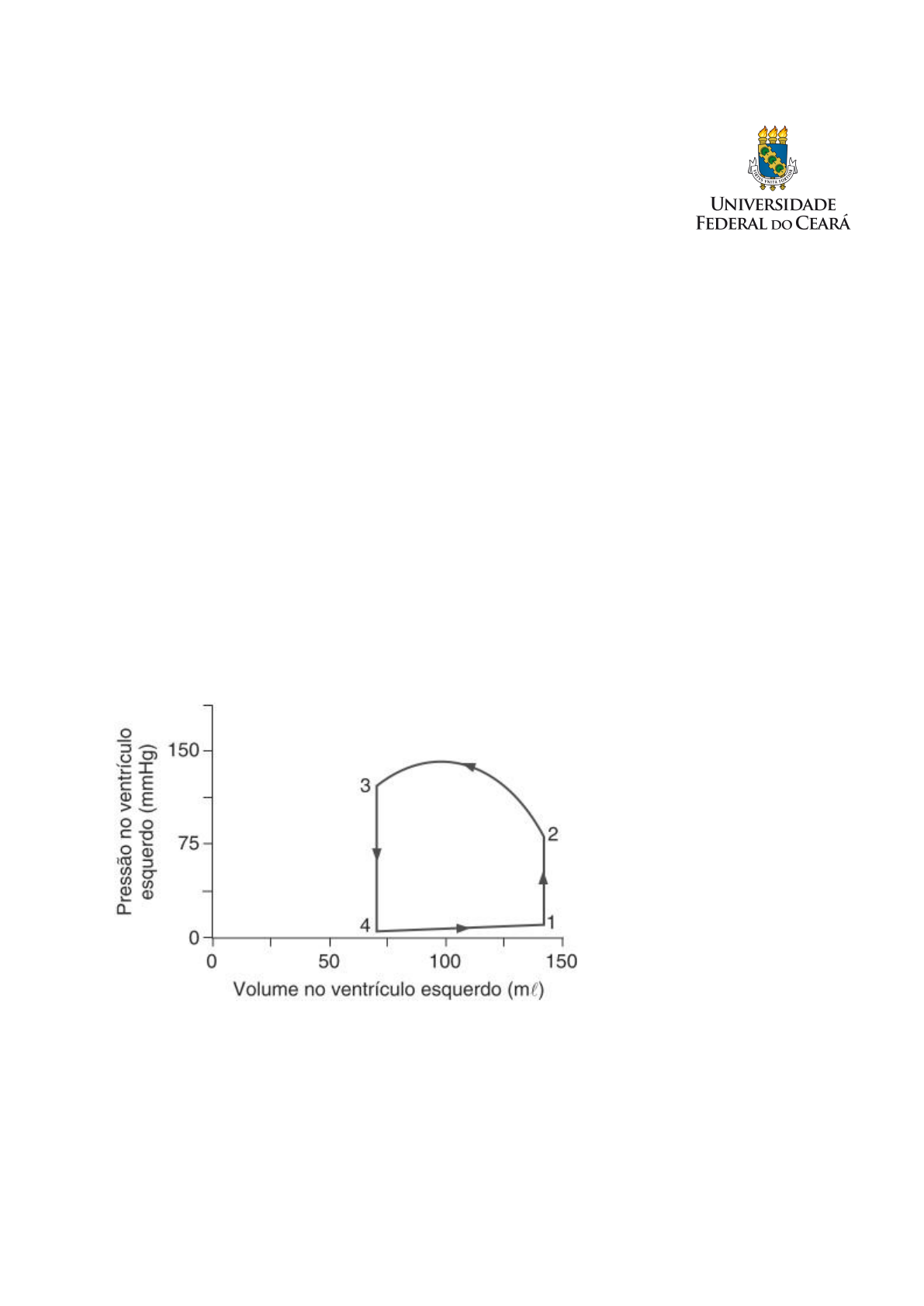 Lista de exercícios 5 - Monitoria de Fisiologia Monitor: Jean Cláudio (S5 Medicina) e Flávia Karoline (S5 Medicina) Conteúdos: O ciclo cardíaco; Dinâmica microcirculatória. O ciclo cardíaco 1. Um aumento da contratilidade é demonstrado no diagrama de Frank-Starling por: A) aumento do débito cardíaco para determinado volume diastólico final B) aumento do débito cardíaco para determinado volume sistólico final C) diminuição do débito cardíaco para determinado volume diastólico final D) diminuição do débito cardíaco para determinado volume sistólico final Perguntas 2 a 5 2. No gráfico que mostra o volume e a pressão no ventrículo esquerdo, a contração isovolumétrica ocorre a partir do ponto: A) 4 → 1 B) 1 → 2 C) 2 → 3 D) 3 → 4 3. A valva aórtica fecha-se no ponto: A) 1 B) 2 C) 3 D) 4 4. A primeira bulha cardíaca (B1) corresponde ao ponto: A) 1 B) 2 C) 3 D) 4 5. Se a frequência cardíaca é de 70 bpm, o débito cardíaco desse ventrículo está mais próximo de: A) 3,45 ℓ/min B) 4,55 ℓ/min C) 5,25 ℓ/min D) 8,00 ℓ/min E) 9,85 ℓ/min 6. Durante que fase do ciclo cardíaco a pressão aórtica é máxima? A) Sístole atrial B) Contração ventricular isovolumétrica C) Ejeção ventricular rápida D) Ejeção ventricular lenta E) Relaxamento ventricular isovolumétrico F) Enchimento ventricular rápido G) Enchimento ventricular lento (diástase) 7. Durante que fase do ciclo cardíaco o volume de sangue nos ventrículos é mais baixo? A) Sístole atrial B) Contração ventricular isovolumétrica C) Ejeção ventricular rápida D) Ejeção ventricular lenta E) Relaxamento ventricular isovolumétrico F) Enchimento ventricular rápido G) Enchimento ventricular lento (diástase) Perguntas 8 a 11 Uma mulher de 60 anos de idade tem uma frequência cardíaca de repouso em 70bpm, a pressão arterial é 130/85 mmHg, e a temperatura corporal é normal. Seu gráfico volume × pressão do ventrículo esquerdo é mostrado abaixo. 8. Qual é o seu débito cardíaco em mililitros/min? A) 2.000 B) 3.000 C) 4.000 D) 6.000 E) 7.000 9. Quando a segunda bulha cardíaca ocorre na relação volume-pressão do ventrículo? A) No ponto D B) Entre o ponto A e o ponto B C) Entre o ponto B e o ponto C D) Entre o ponto C e o ponto D E) Entre o ponto D e o ponto A 10. Quando a terceira bulha cardíaca ocorre na relação volume-pressão do ventrículo? A) No ponto D B) Entre o ponto A e o ponto B C) Entre o ponto B e o ponto C D) Entre o ponto C e o ponto D E) Entre o ponto D e o ponto A 11. Qual é a sua fração de ejeção do ventrículo? A) 33% B) 50% C) 60% D) 67% E) 80% 12. Em um adulto em repouso, qual é o valor característico da fração de ejeção do ventrículo? A) 20% B) 30% C) 40% D) 60% E) 80% 13. Um homem de 30 anos de idade apresenta uma fração de ejeção de 0,25 e um volume sistólico final de 150 mL. Qual é o seu volume diastólico final? A) 50 mL B) 100 mL C) 125 mL D) 200 mL E) 250 mL 14. Qual das seguintes afirmações sobre o músculo cardíaco é mais exata? A) Os túbulos T do músculo cardíaco podem armazenar muito menos cálcio do que os túbulos T do músculo esquelético B) A força e a contração do músculo cardíaco dependem da quantidade de cálcio ao redor dos miócitos cardíacos C) No músculo cardíaco o início do potencial de ação provoca uma abertura imediata dos canais lentos de cálcio D) A repolarização do músculo cardíaco é provocada pela abertura dos canais de sódio E) Os mucopolissacarídios dentro dos túbulos T se ligam aos íons cloreto 15. Qual dos eventos a seguir ocorre no final do período de ejeção do ventrículo? A) Fechamento das valvas A-V B) Abertura da valva aórtica C) A valva aórtica permanece aberta D) Abertura das valvas A-V E) Fechamento da valva pulmonar 16. Qual dos seguintes eventos está associado à primeira bulha cardíaca? A) Fechamento da valva aórtica B) Período de enchimento rápido dos ventrículos durante a diástole C) Início da diástole D) Abertura das valvas A-V E) Fechamento das valvas A-V 17. Qual é o retardo total normal do impulso cardíaco no nó A-V e no feixe A-V? A) 0,22 s B) 0,18 s C) 0,16 s D) 0,13 s E) 0,09 s 18. Qual dos seguintes eventos está associado à segunda bulha cardíaca? A) Enchimento rápido dos ventrículos como resultado da contração atrial B) Fechamento das valvas AV C) Fechamento da valva do tronco pulmonar D) Abertura das valvas AV E) Enchimento rápido dos ventrículos entre as fases inicial e média da diástole 19. Qual dos seguintes sopros cardíacos é auscultado durante a sístole? A) Regurgitação na valva da aorta B) Regurgitação na valva pulmonar C) Estenose da valva atrioventricular direita D) Estenose da valva atrioventricular esquerda E) Ducto arterial patente 20. Em qual dos seguintes sopros cardíacos mencionados abaixo, é mais provável a ocorrência de um aumento na pressão do átrio esquerdo? A) Estenose da valva atrioventricular direita B) Regurgitação na valva pulmonar C) Regurgitação na valva atrioventricular esquerda D) Regurgitação na valva atrioventricular direita 21. Qual dos seguintes eventos está associado à primeira bulha cardíaca? A) Entrada rápida de sangue nos ventrículos como resultado da contração atrial B) Fechamento das valvas AV C) Fechamento da valva pulmonar D) Abertura das valvas AV E) Enchimento rápido dos ventrículos nas fases inicial e média da diástole 22. Qual dos seguintes eventos está associado à terceira bulha cardíaca? A) Enchimento rápido dos ventrículos causado pela contração atrial B) Fechamento das valvas AV C) Fechamento da valva pulmonar D) Abertura das valvas AV E) Enchimento rápido dos ventrículos nas fases inicial e média da diástole Dinâmica microcirculatória Perguntas 1 e 2 Em um capilar, a Pc (pressão hidrostática capilar) é de 30 mmHg, a Pi (pressão hidrostática do líquido intersticial) é de −2 mmHg, πc (pressão oncótica capilar, ou coloid