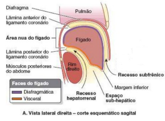 anatomia do fígado O fígado está situado principalmente no quadrante superior direito do abdome, onde é protegido pela caixa torácica e pelo diafragma. O fígado normal situa-se profundamente às costelas VII a XI no lado direito e cruza a linha mediana em direção à papila mamária esquerda. O fígado tem uma face diafragmática convexa (anterior, superior e algo posterior) e uma face visceral. Existem recessos subfrênicos, o recesso sub-hepático e o recesso hepatorrenal (bolsa de Morisson). Todos os recessos da cavidade peritoneal são apenas espaços virtuais, contendo apenas líquido peritoneal suficiente para lubrificar as membranas peritoneais adjacentes. A face diafragmática do fígado é coberta por peritônio visceral, exceto posteriormente na área nua do fígado, onde está em contato direto com o diafragma. A VCI atravessa um profundo sulco da veia cava na área nua do fígado. A face visceral do fígado também é coberta por peritônio, exceto na fossa da vesícula biliar e na porta do fígado — uma fissura transversal por onde entram e saem os vasos (veia porta, artéria hepática e vasos linfáticos), o plexo nervoso hepático e os ductos hepáticos que suprem e drenam o fígado. Ao contrário da face diafragmática lisa, a face visceral tem muitas fissuras e impressões resultantes do contato com outros órgãos. O ligamento redondo do fígado é o remanescente fibroso da veia umbilical. O ligamento venoso é o remanescente fibroso do ducto venoso fetal, que desviava sangue da veia umbilical para a VCI, passando ao largo do fígado. O omento menor, que encerra a tríade portal (ducto colédoco, artéria hepática e veia porta) segue do fígado até a curvatura menor do estômago e os primeiros 2 cm da parte superior do duodeno. · Lobos Anatômicos Externamente, o fígado é dividido em dois lobos anatômicos e dois lobos acessórios pelas reflexões do peritônio a partir de sua superfície, as fissuras formadas em relação a essas reflexões e os vasos que servem ao fígado e à vesícula biliar. O ligamento falciforme e a fissura sagital esquerda separa um lobo hepático direito grande de um lobo hepático esquerdo muito menor. · Subdivisão funcional hepática Além dos lobos normais, existe internamente, porém sem demarcações, uma subdivisão funcional entre a parte direita e esquerda do fígado. Cada parte recebe seu próprio ramo primário da artéria hepática e veia porta, e é drenada por seu próprio ducto hepático. Na verdade, o lobo caudado pode ser considerado um terceiro fígado; sua vascularização é independente da bifurcação da tríade portal (recebe vasos de ambos os feixes) e é drenado por uma ou duas pequenas veias hepáticas, que entram diretamente na VCI distalmente às veias hepáticas principais. O fígado pode ser ainda subdividido em quatro divisões e depois em oito segmentos hepáticos cirurgicamente ressecáveis, sendo cada um deles servido independentemente por um ramo secundário ou terciário da tríade portal. · Segmentos hepáticos cirúrgicos Exceto pelo lobo caudado (segmento posterior), o fígado é dividido em partes hepáticas direita e esquerda com base na divisão primária da tríade portal em ramos direito e esquerdo, sendo o plano entre as partes hepáticas direita e esquerda a fissura portal principal, na qual está a veia hepática média. Na face visceral, esse plano é demarcado pela fissura sagital direita. . As veias hepáticas direita, intermédia e esquerda seguem nos três planos ou fissuras [portal direita (D), portal principal (P) e umbilical (U)] que segmentam o fígado em quatro divisões verticais, sendo cada uma servida por um ramo secundário (2o ) da tríade portal. Três divisões são subdivididas no plano portal transverso (T) em segmentos hepáticos, sendo cada um suprido por ramos terciários da tríade. A divisão medial esquerda e o lobo caudado também são considerados segmentos hepáticos, totalizando oito segmentos hepáticos cirurgicamente ressecáveis. Cada segmento tem sua própria vascularização dentro e drenagem biliar. As veias hepáticas existem entre os segmentos, drenando as porções dos vários segmentos adjacentes a elas. · Vasos Sanguíneos O fígado tem irrigação dupla: uma venosa dominante e uma arterial menor. A veia porta traz 75 a 80% do sangue para o fígado. O sangue porta, que contém aproximadamente 40% mais oxigênio do que o sangue que retorna ao coração pelo circuito sistêmico, sustenta o parênquima hepático (células hepáticas ou hepatócitos). A veia porta conduz praticamente todos os nutrientes absorvidos pelo sistema digestório para os sinusoides hepáticos. A exceção são os lipídios, que são absorvidos pelo sistema linfático e passam ao largo do fígado. O sangue da artéria hepática, que representa apenas 20 a 25% do sangue recebido pelo fígado, é distribuído inicialmente para estruturas não parenquimatosas, especialmente os ductos biliares intra-hepáticos. A veia porta, curta e larga, é formada pela união das veias mesentérica superior e esplênica, posteriormente ao colo do pâncreas. Ascende anteriormente à VCI como parte da tríade portal no ligamento hepatoduodenal. A artéria hepática, um ramo do tronco celíaco, pode ser dividida em artéria hepática comum, do tronco celíaco até a origem da artéria gastroduodenal, e artéria hepática própria, da origem da artéria gastroduodenal até a bifurcação da artéria hepática. Na porta do fígado, ou perto dela, a artéria hepática e a veia porta terminam dividindo-se em ramos direito e esquerdo; esses ramos primários suprem as partes direita e esquerda do fígado, respectivamente. Nas partes direita e esquerda do fígado, as ramificações secundárias simultâneas da veia porta e da artéria hepática suprem as divisões medial e lateral das partes direita e esquerda do fígado, com três dos quatro ramos secundários sofrendo ramificações adicionais (te