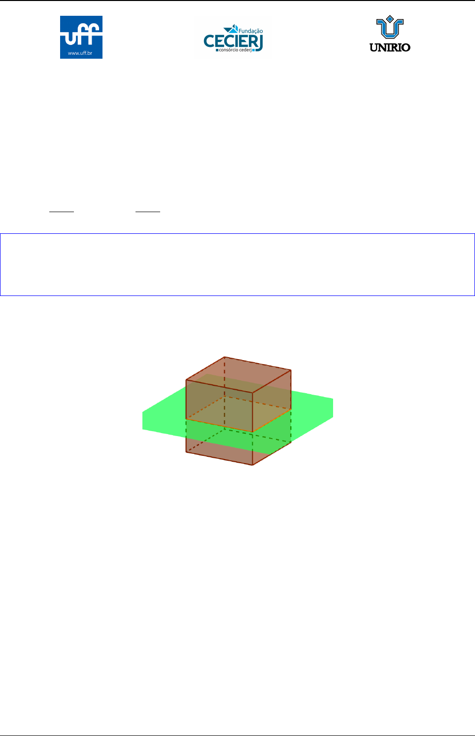 Geometria Espacial Solução da AP1 Página 1 de 22 Fundação Centro de Ciências e Educação Superior a Distância do Estado do Rio de Janeiro Centro de Educação Superior a Distância do Estado do Rio de Janeiro Solução da Primeira avaliação presencial de Geometria Espacial - questões de todos os tempos Visualização e representação espacial Questão 1. (2,5 pts) Como se sabe, um plano separa o espaço em duas regiões ou semiespaços. Dois planos distintos determinam três ou quatro regiões no espaço. Três planos, dois a dois distintos, determinam no espaço no mı́nimo e no máximo regiões. Solução: Todas as 8 posições relativas de 3 planos no espaço foram estudadas no Exerćıcio 3 do EP3. O número mı́nimo de regiões por eles determinadas nas condições do enunciado é 4, caso os três planos sejam paralelos. O número máximo é 8, caso os três planos se intersectem em um único ponto. Questão 2. (2,5 pts) Quais das figuras a seguir podem ser obtidas como interseção de um cubo com um plano? Se desejar, manipule o aplicativo antes de responder. Aplicativo: https://www.geogebra.org/m/zekuwntx □ triângulos não equiláteros. □ triângulos equiláteros. □ quadriláteros com quatro ângulos retos. □ quadriláteros com dois pares de lados paralelos, mas sem ângulos retos. □ quadriláteros com apenas um par de lados paralelos. □ quadriláteros sem par de lados opostos paralelos. □ pentágonos. □ hexágonos. □ heptágonos. □ octógonos. Fundação CECIERJ Realização acadêmica: UFF e UNIRIO Consórcio CEDERJ https://www.geogebra.org/m/zekuwntx Geometria Espacial Solução da AP1 Página 2 de 22 Solução: Todos os triângulos e quadriláteros listados são posśıveis, exceto quadriláteros sem par de lados opostos paralelos. Porque os lados desses quadriláteros são interseções do plano com faces do cubo e qualquer combinação de 4 das 6 faces do cubo precisa ter um par de faces opostas. Como as faces opostas são paralelas, o quadrilátero formado tem ao menos um par de lados paralelos. Pentágonos e hexágonos também são posśıveis, basta que o plano intersecte o interior de exatamente 5 ou das 6 faces do cubo. Heptágonos e octógonos não são posśıveis porque o cubo só tem seis faces para serem intersectadas pelo plano e formar lados do poĺıgono de interseção. Questão 3. (2,5 pts) Quais das figuras a seguir podem ser obtidas como interseção de um cilindro equilátero com um plano? □ trapézio □ hipérbole □ elipse □ ćırculo □ triângulo não equilátero □ triângulo equilátero □ retângulo losango □ parábola □ retângulo não losango □ paralelogramo não retângulo Solução: Podem ser obtidos como interseção de um cilindro equilátero com um plano: elipse, retângulo losango, ćırculo e retângulo não losango. As parábolas e hipérboles são seções cônicas, mas não ciĺındricas. Isso é esclarecido nesse v́ıdeo. https://youtu.be/g1NkORYvZuY Questão 4. (2,5 pts) Que poĺıgonos podem ser obtidos da interseção de um plano com um prisma de base triangular? Se desejar, use o aplicativo a seguir para investigar ou conferir a sua solução. https://www.geogebra.org/m/up3cqxua □ triângulos □ quadriláteros □ pentágonos □ hexágonos □ heptágono □ octógonos Solução: Como cada lado do poĺıgono é a interseção do plano de uma face do prisma com o plano e o prisma possui apenas 5 faces, não podem haver hexágonos, heptágonos ou octógonos. Os demais poĺıgonos podem ser obtidos por inspeção simples. Veja as imagens Questão 5. (2,5 pts) Escolha, dentre as imagens a seguir, todas as planificações que determinam um cubo e pinte cada par de faces opostas com uma cor diferente dos demais pares. Para pintar, basta arrastar as os quadrados indicados para a face que deseja colorir. Fundação CECIERJ Realização acadêmica: UFF e UNIRIO Consórcio CEDERJ https://youtu.be/g1NkORYvZuY https://www.geogebra.org/m/up3cqxua Geometria Espacial Solução da AP1 Página 3 de 22 Solução: Todas são planificações posśıveis de um cubo. A seguir apresento uma opção de solução. Em cada planificação há 6 maneiras de se colorir bastando permutar as cores. Questão 6. (2020/1) Um tetraedro regular é uma pirâmide triangular reta em que todas as faces são triângulos equiláteros (veja a figura). DB A C Considere um plano α paralelo às retas BD e AC que intersecta as arestas AB, BC, CD e DA nos pontos X, Y , Z e T , respectivamente. a) Reproduza a figura do tetraedro e acrescente o quadrilátero XY ZT . b) Desenhe uma planificação do tetraedro incluindo o quadrilátero XY ZT . Fundação CECIERJ Realização acadêmica: UFF e UNIRIO Consórcio CEDERJ Geometria Espacial Solução da AP1 Página 4 de 22 Solução: a) DB A C X Y Z T b) Observe que a planificação de um tetraedro regular é um triângulo equilátero de lado duas vezes a aresta do tetraedro. A representação do quadrilátero XY ZT na figura considera o quadrilátero de área máxima, aquele cujos vértices estã nos pontos médios das arestas do tetraedro. A A A B C D X T X Y Z T Questão 7. (2018/2) Zequinha tem três dados iguais, com letras O, P , Q, R, S e T em suas faces. Ele juntou esses dados como na figura, de modo que as faces em contato tivesse a mesma letra. Desenhe a planificação do dado e identifique a letra na face oposta à face com a letra T . Solução: Seguem algumas considerações: � Os três cubos na figura dada têm a face O voltada para cima. Assim as faces P , Q, T e S, viśıveis na figura, são adjacentes à face O. � Do item anterior conclui-se que a face R é oposta à face O pois é a única diferente de O que não é adjacente a O. � Do cubo do meio observa-se que as faces Q e S são ajacentes. � A face oposta à face S está em contato nos dados cujas faces P e Q aparecem na figura. Esta face não pode ser O, P , Q, S ou R pois estas já estão identificadas 