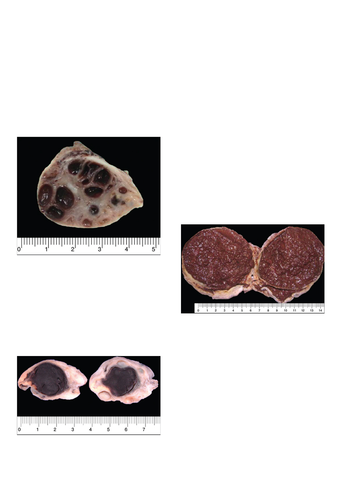Ovários Cistos Não Neoplásicos ● Prevalentes; ● Associados com hiperestrogenismo e hemorragia uterina disfuncional; ● Cistos foliculares: folículos ovarianos não rotos (muito comuns); ○ <2cm, únicos ou múltiplos, superfície interna lisa sem vegetações; ○ Conteúdo seroso, cristalino ou discretamente hemorrágico; ○ Regridem espontaneamente em 2 ou 3 meses. Cistos foliculares, alguns com conteúdo discretamente hemorrágico. ● Cistos do corpo lúteo: hemorragia excessiva no corpo lúteo + fechamento cicatricial precoce no ponto de ovulação; ○ >2,5cm, parede castanho-amarelada, superfície interna lisa e o conteúdo é hemorrágico no início e incolor quando ocorre reabsorção. Cisto de corpo lúteo. ● Cistos luteínicos da gravidez: únicos ou múltiplos, formados por ação prolongada de gonadotrofinas coriônicas resultando em luteinização da teca; ○ Volumosos com líquido citrino; ○ Involuem após parto ou remoção da causa; ○ Macroscopicamente simulam neoplasia. ● Cistos endometrióticos: formas císticas de endometriose; ○ + frequente 40-50 anos; ○ Uni ou bilaterais, quase sempre múltiplos; ○ Nódulos vermelho-azulados ou pardo-amarelados cobertos por aderências fibrosas → podem atingir 15cm; ○ Causam dor e até infertilidade; ○ Conteúdo vermelho-escuro (cistos achocolatados); ○ Podem se associar a CA de endométrio ou CA endometrioide do ovário. Cisto endometriótico. Cisto volumoso com conteúdo hemorrágico ocupando todo o ovário (cisto achocolatado). ● Cistos de inclusão do epitélio de superfície (celômicos), cistos de corpos albicans e cistos de Walthard (revestidos por epitélio urotelial metaplásico) são frequentes, porém pequenos e assintomáticos, sem atividade hormonal. Doença de Ovários Policísticos ● Afeta 6 a 10% das mulheres em idade reprodutiva; ● Caracterizada por: (1) ovários esclerocísticos, (2) oligoamenorreia e ciclos anovulatórios, levando a infertilidade, (3) manifestações androgênicas (hirsutismo, acne e alopecia); ● Obesidade, resistência à insulina e DM2 estão associados; ● Devido ao hiperestrogenismo prolongado, as pacientes apresentam risco aumentado de hiperplasia e adenocarcinoma endometriais e carcinoma da mama; ● A doença pode ser tratada com hormônios reguladores do ciclo menstrual, fármacos indutores de ovulação ou cirurgia com ressecção em cunha dos ovários; ● Macroscopicamente, os ovários estão geralmente aumentados de volume e têm superfície externa brancacenta, perolada e lisa (aparência de “ovos de galinha”). A superfície de corte mostra cistos subcapsulares de tamanhos variados, envoltos por estroma denso. Ovários policísticos (síndrome de Stein-Leventhal). Numerosos cistos na cortical ovariana e espessamento do estroma (setas). Hiperplasia. Hipertecose Estromal ● Hiperplasia das células tecoestromais e ninhos de luteinização; ● Após menopausa; ● Um ou ambos os ovários estão aumentados de volume e têm superfície de corte branco-amarelada e firme. Torção e Infarto ● Simula apendicite; ● Mais comuns em pacientes com tumores e cistos volumosos do ovário, seguidos de torção do seu pedículo → necrose e inundação hemorrágica (apoplexia) geralmente englobando a tuba uterina. Edema ● Aos 21 anos; ● Resultado de torção intermitente de mesovário; ● 90% é unilateral; ● Tratamento cirúrgico ou conservador (pexia do ovário). Edema acentuado do ovário. Ovário volumoso, com superfície gelatinosa e brilhante. Inflamações/Ooforites ● Raras e quase sempre secundárias a inflamações da tuba uterina; ● + comuns: gonococos, estafilococos e anaeróbias. Neoplasias ● A maioria é benigna (80%) e menos comuns do que tumores do colo e do endométrio; ● 5% das neoplasias do sistema genital feminino; ● Precisam ser diferenciados de: lesões expansivas não neoplásicas (cistos funcionais – folicular e do corpo lúteo), lesões císticas da tuba uterina (abscesso), leiomiomas uterinos subserosos; ● Diagnóstico é tardio → alta mortalidade; ● Células dos ovários: ○ Mesoteliais: na superfície → origem do epitélio celomático mulleriano; ○ Germinativas: multipotentes; ○ Do estroma gonadal diferenciado: células foliculares e da teca → produtoras de hormônios esteroides; ○ Do estroma não especializado: fibroblastos. ● Classificação: ○ Neoplasias epiteliais (70% dos casos); ■ Serosas → Benigna (cistadenoma); Borderline/malignidade limítrofe; Maligna (cistadenocarcinoma); ■ Mucinosas → Benigna (cistadenoma); Borderline/malignidade limítrofe; Maligna; ■ Neoplasia endometrioide; ■ Carcinoma de células claras; ■ Tumor de Brenner; ■ Carcinoma indiferenciado. ○ Neoplasia de células germinativas (20%); ■ Teratomas → Imaturo (geralmente sólido); Maduro (geralmente cístico); Monodérmico (struma ovarii, carcinoide); ■ Disgerminoma, Coriocarcinoma, Carcinoma embrionário, Tumor do seio endodérmico ou do saco vitelínico, Poliembrioma, Tumor misto de células germinativas. ○ Neoplasias do estroma ovariano funcionantes – cordões sexuais – e não funcionante – fibroblastos (5%); ■ Tumor de células da granulosa, Tecoma, Luteoma, Fibroma, Tumores de células de Sertoli-Leydig, Ginandroblastoma. ○ Metástases (5-10% dos tumores ovarianos). ● Fatores de risco incluem nuliparidade, menor uso de contraceptivos orais, disgenesia gonadal e história familiar de câncer de ovário e mama; ○ Teoria de que mais ovulações poderiam predispor a reparo tecidual exagerado… ● A maioria é esporádica, mas até 10% tem componente familiar associado a mutação germinativa em BRCA1 e BRCA2 ou síndromes hereditárias (Lynch). Manifestações Clínicas ● Desconforto abdominal vago, dor e pressão pélvica… ● Ca-125 está presente em 80% das neoplasias malignas (50% das iniciais); ○ No entanto, eleva-se em outras condições como endometriose 