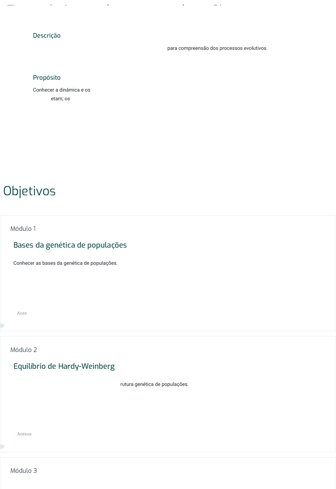 Objetivos Módulo 1 Bases da genética de populações Conhecer as bases da genética de populações. Acessar módulo Módulo 2 Equilíbrio de Hardy-Weinberg Descrever o equilíbrio de Hardy-Weinberg e a estrutura genética de populações. Acessar módulo Módulo 3 Genética de populações Prof. Daniel Motta da Silva Descrição Estudo da genética aplicada a populações como ferramenta para compreensão dos processos evolutivos. Propósito Conhecer a dinâmica e os conceitos associados à genética de populações; o equilíbrio de Hardy-Weinberg e os fatores que o afetam; os tipos de mutações e mecanismos de reparo do DNA – todos conhecimentos indispensáveis para o estudo dos processos evolutivos por que passam os seres vivos e com aplicação para as diversas áreas da saúde. Fatores que afetam o equilíbrio de Hardy-Weinberg Identificar os fatores que afetam o equilíbrio de Hardy-Weinberg: mutação, migração, deriva genética e seleção natural. Acessar módulo Módulo 4 Tipos de mutações e mecanismos de reparo do DNA Reconhecer os tipos de mutações e os mecanismos de reparo do DNA. Acessar módulo Introdução A genética de populações estuda o conjunto de genes ou pull gênico de indivíduos de uma espécie que formam populações. Analisa as variações dos alelos dentro da população e entre populações de uma espécie, ao longo das gerações, de modo a avaliar a evolução das populações e espécie ao longo do tempo. Além disso, a genética de populações avalia os fatores e processos que podem influenciar tais variações genéticas. Nesse conteúdo, aprenderemos a calcular as frequências alélicas e genotípicas em populações, além de analisar as variações fenotípicas. Veremos os princípios envolvidos no equilíbrio de Hardy-Weinberg e como sua aplicação auxilia o entendimento da dinâmica das populações. Conheceremos os fatores que influenciam esse equilíbrio, como a mutação, a migração, a deriva genética e a seleção natural. As mutações podem alterar o pull gênico das populações, as migrações têm grande impacto na composição, e a deriva genética e a seleção natural podem influenciar as frequências gênicas e genotípicas. Por fim, conheceremos as particularidades das mutações e dos agentes mutagênicos e os mecanismos envolvidos no reparo do DNA. 1 Conceitos e importância da genética de populações A Genética é a ciência que estuda os processos ligados à hereditariedade, estuda os genes e como as informações genéticas são passadas de uma geração para a outra. Hoje, sabemos que a molécula responsável por essa transferência de informação genética é o DNA. Mas como fazer para analisar a genética de grandes grupos de indivíduos de uma espécie em conjunto? É aqui que entra a genética de populações, a área da Genética que estuda a composição genética das populações e como esta varia ao longo do tempo. Os postulados de Gregor Mendel baseados nos seus estudos com ervilhas ganha uma nova visão à luz da genética de populações. Sabemos que mudanças ocorrem ao longo do tempo nas populações, e é preciso entender como isso acontece e como as afetam. Gregor Mendel. Um dos fatores mais importantes que explicam a diversidade de vida que habita a Terra é a variabilidade, um fenômeno bem fácil de perceber. Olhe ao seu redor e verá uma grande variação de tamanhos, cores, formatos e comportamentos nas mais diferentes formas de vida que conseguir observar. Boa parte dessas variações que observamos é hereditária. Constituem variações fenotípicas, ou seja, variações de características observáveis de um indivíduo, que resultam da interação dos genes e do ambiente. Na natureza, encontramos uma série de mecanismos que contribuem para a manutenção da variabilidade, como a reprodução sexuada. Esse tipo de reprodução é uma estratégia utilizada por muitas espécies que têm como princípio a recombinação das informações genéticas de dois indivíduos Bases da genética de populações Ao final deste módulo, você será capaz de conhecer as bases da genética de populações. (pai e mãe, os progenitores). A variabilidade é tão evidente que é pouco provável encontrarmos dois indivíduos exatamente iguais. Agora vamos compreender melhor o que é uma população. Segundo o dicionário Michaelis, população é “a totalidade de indivíduos que habitam uma localidade”. No entanto, sob a perspectiva biológica, uma população é formada por um grupo de indivíduos da mesma espécie que vive em uma mesma área e se reproduzem entre si, gerando descendentes férteis. Gregor Mendel descreveu, por meio de seus experimentos, como ocorre a transmissão genotípica e fenotípica na descendência de um cruzamento. A genética de populações nos permite fazer essa análise considerando a descendência de todos os cruzamentos possíveis na população. Essa ciência é de grande importância porque também estuda os fenômenos e fatores que podem alterar a estrutura genética de uma população, sendo possível aplicar os conceitos em populações reais. Um estudo de genética de populações é um estudo de evolução, ou seja, é um estudo da evolução dos indivíduos e populações que compõem uma espécie, ao longo do tempo. Variação fenotípica em populações naturais As populações de diferentes espécies são extremamente variáveis no que se refere aos fenótipos, ou seja, aos diferentes caracteres observáveis, como os de morfologia relativos ao tamanho e formato de estruturas, ou até os de fisiologia e comportamento. As populações humanas exibem grande variação de fenótipos. As variações fenotípicas relativas a morfologia externa dos indivíduos foram a base para a separação das espécies ao longo do desenvolvimento da ciência. Ou seja, indivíduos morfologicamente semelhantes foram classificados como sendo da mesma espécie, enquanto espécies 