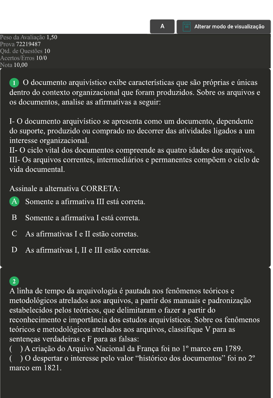 Avaliação I - Objetiva - Informatização e Recuperação da Informação para Arquivos