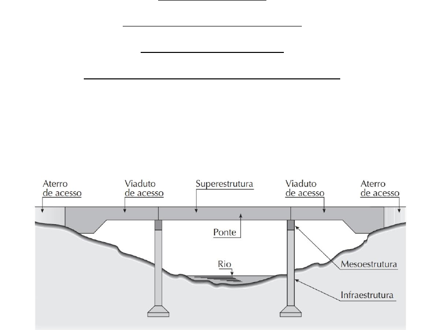 PONTES - INTRODUÇÃO Pontifícia Universidade Católica Curso de Engenharia Civil Professora Juliana Torres de Oliveira Bonaldo Estruturas de Pontes: Denomina-se Ponte a obra destinada a permitir a transposição de obstáculos à continuidade de uma via de comunicação qualquer. Os obstáculos podem ser: rios, braços de mar, vales profundos, outras vias, etc. Propriamente, denomina-se Ponte quando o obstáculo transposto é um rio. Denomina-se Viaduto quando o obstáculo transposto é um vale ou outra via. Quando temos um curso d’água de grandes dimensões, a ponte necessita de uma parte extensa antes de atravessar o curso d’água. Essa parte em seco é denominada de Viaduto de acesso. Infraestrutura é a parte da ponte constituída por elementos que se destinam a apoiar no terreno (rocha ou solo) os esforços transmitidos da Superestrutura para a Mesoestrutura. É constituída por blocos de estacas, sapatas, tubulões, etc. Mesoestrutura é a parte da ponte constituída pelos pilares. É o elemento que recebe os esforços da superestrutura e os transmite à infraestrutura. A superestrutura é constituída de vigas e lajes. É o elemento de suporte do estrado por onde se trafega, sendo assim, a parte útil da obra. MESOESTRUTURA: Conjunto de elementos estruturais, pilares, cintas de travamento e aparelhos de apoio. que recebe os esforços da superestrutura e os transmitem para a infraestrutura. Em geral é formada pelos aparelhos de apoio, apoios e encontros. Aparelhos de apoio: os aparelhos de apoio vinculam a superestrutura à mesoestrutura, localizando e conduzindo com precisão as reações de apoio e permitindo ou não determinados movimentos da superestrutura. Podem ser fixos, móveis ou elásticos. Aparelhos Fixos: permitem somente a rotação da estrutura em torno do eixo de apoio. Geralmente metálicos. Aparelhos Móveis: além da rotação, permitem também deslocamentos horizontais. Geralmente metálicos, assim como os fixos. Aparelhos Elásticos: tem comportamento vertical elástico e acomodam deslocamentos horizontais e rotações. Geralmente compostos por camadas de borracha e aço. Encontros: são elementos estruturais que possibilitam a transição entre a via de tráfego e a obra-de-arte especial (ponte/viaduto). São, simultaneamente, os apoios externos da obra e elementos de construção e estabilização dos aterros de acesso. situados nas extremidades da ponte, na transição de ponte com o aterro da via, e que tem a dupla função, de suporte, e de arrimo do solo; INFRAESTRUTURA: Constituída por elementos estruturais que são responsáveis por transmitir ao terreno os esforços recebidos da mesoestrutura e também aqueles oriundos dos carregamentos atuantes na obra. Os tipos de fundações mais comuns utilizadas em pontes são: - Fundação direta: sapatas isoladas. - Fundação profunda: estacas (concreto, aço ou madeira) e - Tubulões a céu aberto ou sob ar comprimido. Além disso, fazem parte da infraestrutura as peças de ligação de seus diversos elementos, como blocos de coroamento das estacas e vigas de ligação. Largura de uma Ponte As pontes rodoviárias podem ser divididas em Rurais e Urbanas. As Urbanas são constituídas de pistas de rolamento com a mesma largura da rua ou avenida que as delimitam e de passeios correspondentes às larguras das calçadas das ruas. As pontes Rurais tem objetivo escoar o tráfego das rodovias, formadas por pistas de rolamento e por acostamentos laterais. Com relação à seção transversal, podem aparecer os seguintes elementos: Pista de rolamento: largura disponível para tráfego normal dos veículos, que pode ser subdividida em faixas; Acostamento: largura adicional à pista de rolamento destinada à utilização em casos de emergência, pelos veículos; Defensa: elemento de proteção aos veículos, colocado lateralmente ao acostamento; Passeio: largura adicional destinada exclusivamente ao tráfego de pedestres; Guarda roda: elemento destinado a impedir a invasão dos passeios pelos veículos; Guarda corpo: elemento de proteção aos pedestres Abaixo segue alguns desenhos esquemáticos: Em relação à seção Longitudinal tem-se: Comprimento da ponte: também denominado de vão total – distância, medida horizontalmente segundo o eixo longitudinal, entre as seções extremas da ponte; Vão: também denominado de vão teórico e de tramo – distância, medida horizontalmente, entre os eixos de dois suportes consecutivos; Vão livre: distância entre as faces de dois suportes consecutivos; Altura de construção: distância entre o ponto mais baixo e o mais alto da superestrutura; Altura livre: distância entre o ponto mais baixo da superestrutura e o ponto mais alto do obstáculo. CLASSIFICAÇÃO DAS PONTES Pontes Retas Ortogonais, Pontes Retas Esconsas e Pontes Curvas c) Ponte curva Ponte Reta - Esconsa em Canudos RS Ponte Curva 6) Segundo o sistema estrutural da superestrutura a) Ponte em Laje b) Ponte em Viga Reta de Alma Cheia Vigamento Simples em Duas os mais Vigas Ponte em viga única em caixão unicelular ou multicelular c) Ponte em Viga Reta de Treliça Mais empregadas para estruturas metálicas, inclusive na posição invertida (treliça acima do nível da pista). (treliça abaixo do nível da pista). d) Ponte em Pórtico e) Ponte em Arco Usadas para grandes vãos. Dependem que o terreno resista, junto às fundações, a esforços horizontais grandes. Sua execução é difícil ficando, hoje em dia, restritas a uma solução econômica em situações especiais. (a) Ponte em abóbada também conhecida como Ponte em arco com tabuleiro Superior (b) Ponte em Arco com Tabuleiro Intermediário (c )Ponte em Arco Superior ou em Arco com Tabuleiro Inferior f) Ponte Pensil Só usada para vãos extremamente grandes (acima de 1000 m). g) Ponte Suspensa Estaiada Usadas para vãos grandes, só se fazem necessário quando há necessidade do uso de vãos livres da ordem de 200 m ou acima. A diferença entre 