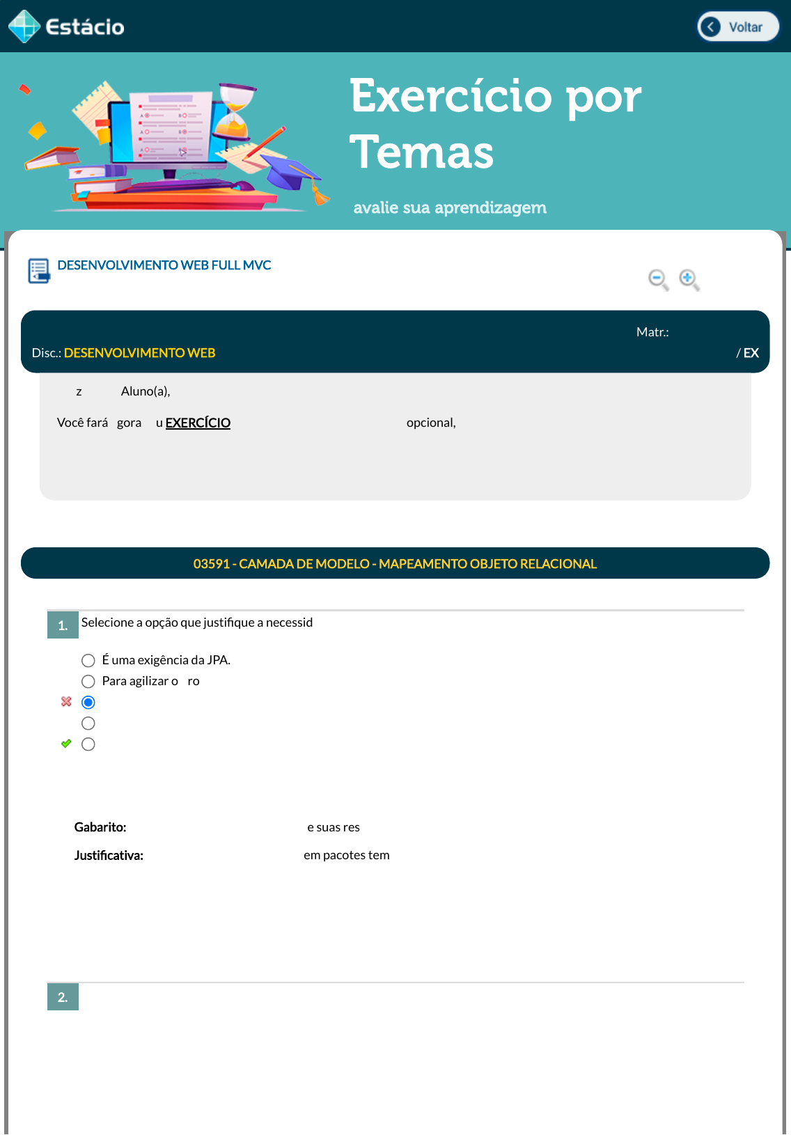 Justi�cativa: A JPA é uma API para persistência de dados do Java. Ela tem foco nas operações de persistência e está