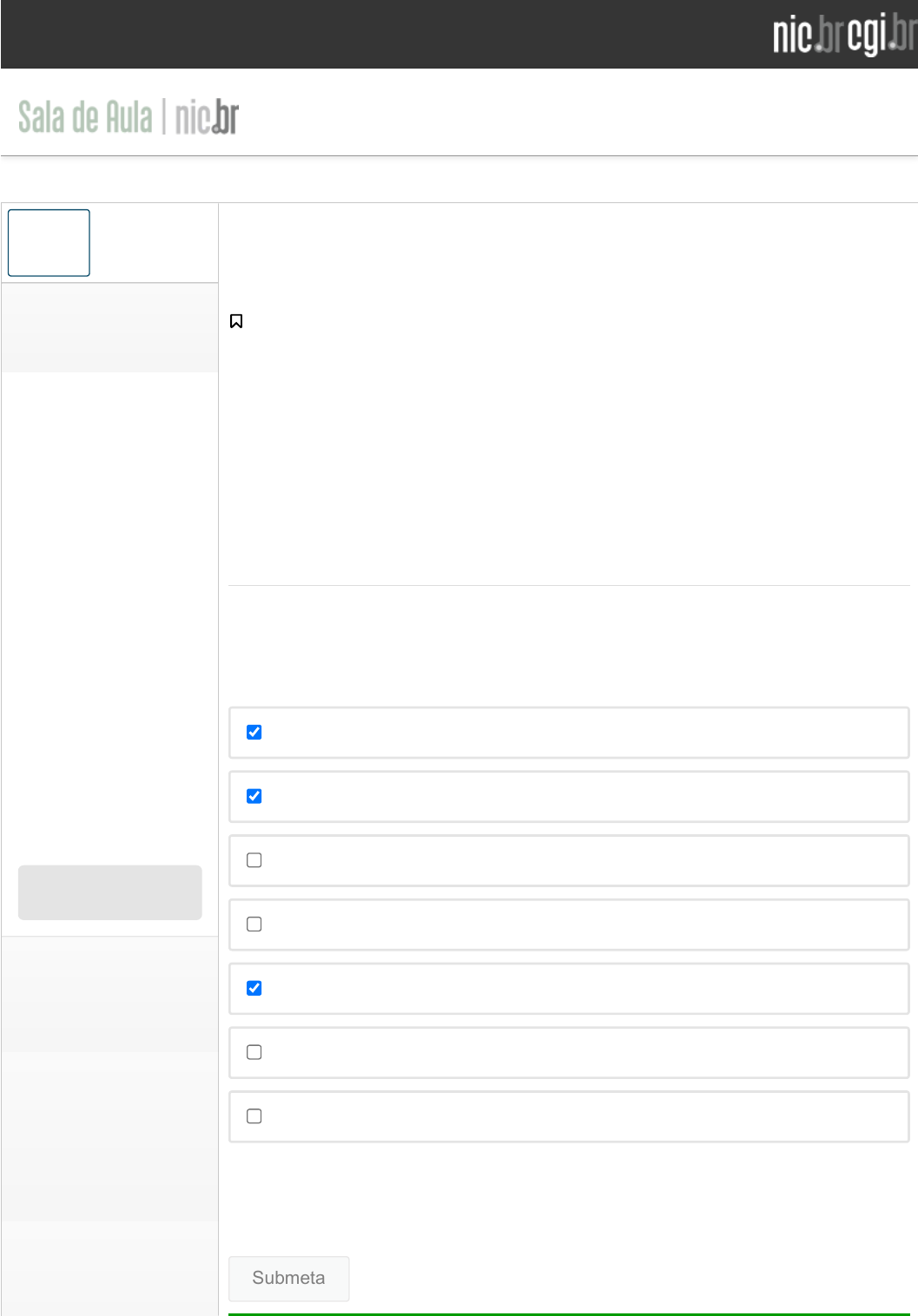 Favoritos Módulo 1: Como duas máquinas se comunicam em IPv6? > Questionário 2 > Módulo 1 - Questionário 2 Módulo 1 - Questionário 2 Bookmark this page Frase Motivacional: "Não importa o quão devagar você vá, desde que você não pare!" Dica: Não tente responder sem fazer as experiências do livro e dar uma olhada nos pacotes via Wireshark! Esse não é um questionário fácil :) Boa Sorte! Pergunta 2/2 pontos (válidos para aprovação no curso) Quais são os casos que fazem o roteador se anunciar na rede? Você utilizou 1 de 1 tentativa Introdução ao curso Módulo 1: Como duas máquinas se comunicam em IPv6? Introdução Problema 1 Solução Material Complementar 1 Questionário 1 Questionário Problema 2 Material Complementar 2 Questionário 2 Questionário Módulo 2: Como trabalhar com endereços IPv6? Módulo 3: Como os equipamentos obtém endereços IPv6? Módulo 4: Como roteadores trocam rotas Quando um roteador é ligado na rede. Periodicamente o roteador se anuncia. Quando um roteador solicita. Quando um roteador é desligado. Quando um dispositivo dentro do enlace solicita. Quando algum dispositivo de fora do enlace solicita. Toda vez que um dispositivo quiser mandar uma mensagem. Submeta NIC.br: IPV6-001 Curso de IPv6 Básico a Distância http://nic.br/ http://cgi.br/ https://saladeaula.nic.br/courses/course-v1:NIC.br+IPV6-001+T001/courseware/7eaa546e8d1340f78ea35eebe3c44479/12eb386e663d4bf09806236ea0382837/ https://saladeaula.nic.br/courses/course-v1:NIC.br+IPV6-001+T001/courseware/7eaa546e8d1340f78ea35eebe3c44479/86e96c7f467d4eb68361e0bd62f0f571/ https://saladeaula.nic.br/courses/course-v1:NIC.br+IPV6-001+T001/courseware/7eaa546e8d1340f78ea35eebe3c44479/0d5de414ca334c7a95b97572148a6a7e/ https://saladeaula.nic.br/courses/course-v1:NIC.br+IPV6-001+T001/courseware/7eaa546e8d1340f78ea35eebe3c44479/9d478af6f30743819b32a80dc9caa7ca/ https://saladeaula.nic.br/courses/course-v1:NIC.br+IPV6-001+T001/courseware/7eaa546e8d1340f78ea35eebe3c44479/f9ffc7c64ade48f7af43d795fd3115a4/ https://saladeaula.nic.br/courses/course-v1:NIC.br+IPV6-001+T001/courseware/7eaa546e8d1340f78ea35eebe3c44479/bfef2d93cb12458ab5114efe1c66d7ec/ https://saladeaula.nic.br/courses/course-v1:NIC.br+IPV6-001+T001/courseware/7eaa546e8d1340f78ea35eebe3c44479/5207814641404bc4aad861d193781c98/ https://saladeaula.nic.br/courses/course-v1:NIC.br+IPV6-001+T001/courseware/7eaa546e8d1340f78ea35eebe3c44479/8cd30b2d317c42af86fbd76d8ee4cff6/ https://saladeaula.nic.br/edx/ Correta (2/2 pontos) Problema 2/2 pontos (válidos para aprovação no curso) Qual mensagem o computador manda na rede para procurar um roteador? Você utilizou 1 de 1 tentativa Correta (2/2 pontos) Pergunta 2/2 pontos (válidos para aprovação no curso) O processo de descoberta de roteadores é feito no IPv6 por qual (ou quais) protocolo(s): IPv6? Módulo 5: Como e porque planejar sua rede com IPv6 Fim do Curso Neighbor Solicitation. ARP Request. Router Solicitation. Router Request. Router Discovery. Submeta Router Solicitation e Router advertisement. ICMPv6 DPv6 ARP e RARP SNMP Você utilizou 1 de 1 tentativa Correta (2/2 pontos) Pergunta 0/2 pontos (válidos para aprovação no curso) Qual é o nome do software utilizado no linux com função de transformá-lo num roteador? Você utilizou 1 de 1 tentativa Incorreta (0/2 pontos) Pergunta 2/2 pontos (válidos para aprovação no curso) A mensagem que procura um roteador na rede é direcionada para qual tipo de endereço IPv6? Submeta Router Advertise. Nspire. Bind. Quagga. OpenRouter. Submeta Multicast solicited-node. Unicast global. Multicast all-routers. Multicast solicited-router. Multicast all-nodes. Você utilizou 1 de 1 tentativa Correta (2/2 pontos) Submeta